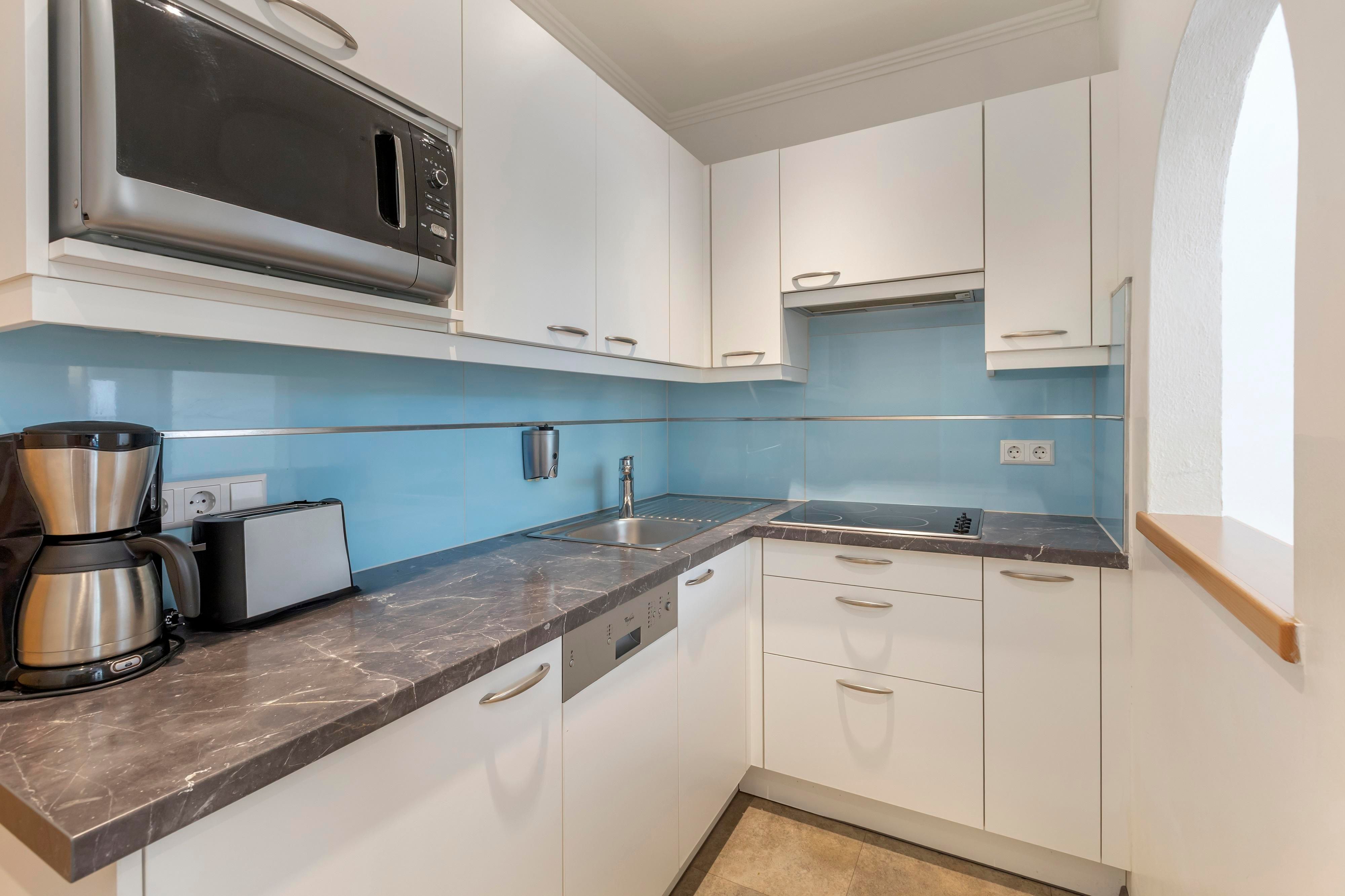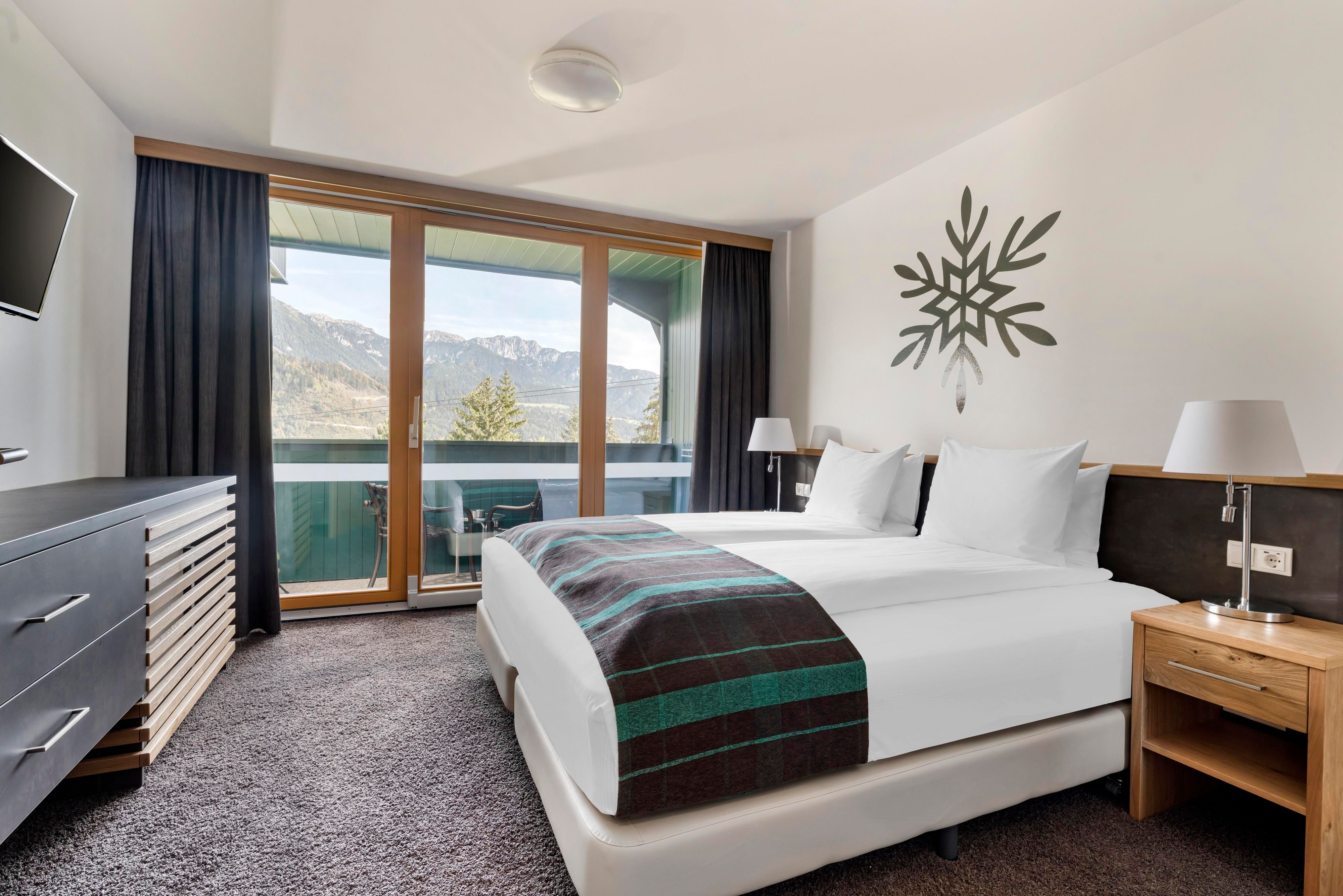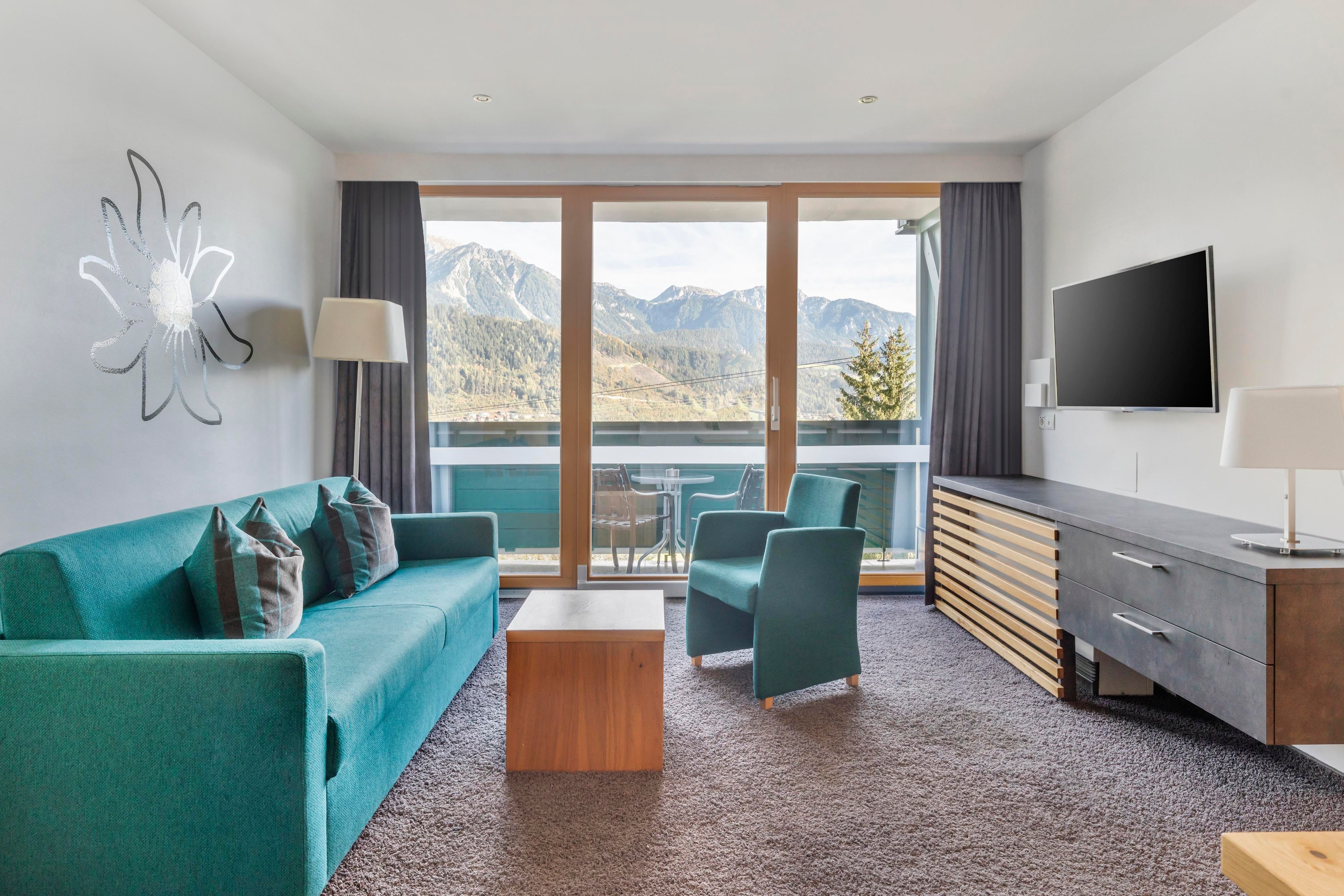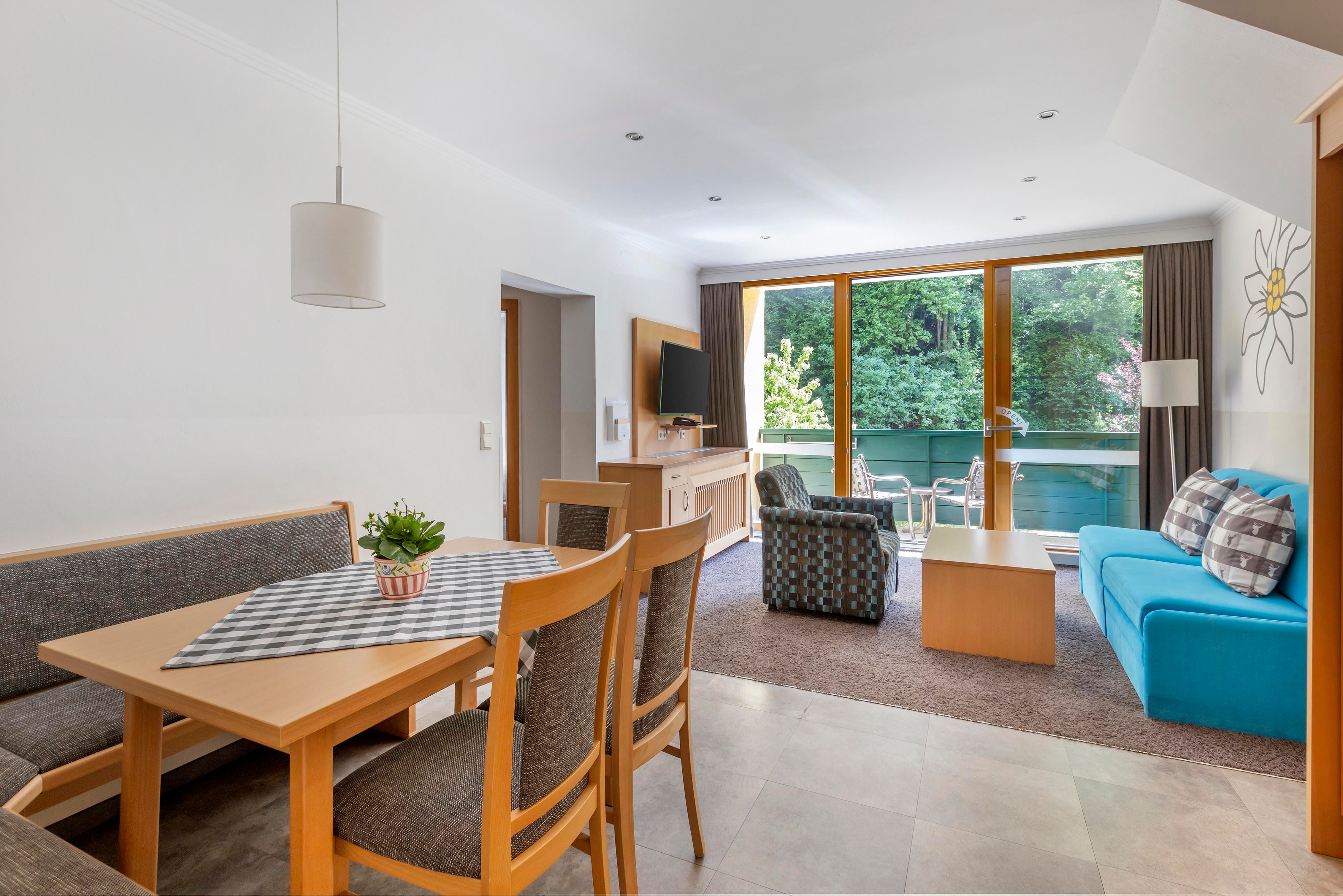 Jedes One bedroom Apartment verfügt über ein Schlafzimmer mit Doppelbett, das mit einer Topmatratze, luxuriöser Bettwäsche und Smart-TV ausgestattet ist, sowie einen offenen Wohnbereich mit Schlafsofa und Smart-TV. In der gut ausgestatteten Küche befinden sich ein Kochfeld, eine Mikrowelle, ein Toaster, Geschirrspüler, Wasserkoche, Kühlschrank, umfangreiche Kochutensilien und Reinigungsmittel. Jedes Appartement hat ein Badezimmer mit Badewanne oder Dusche, einen eigenen Balkon oder eine Terrasse und bietet einen herrlichen Blick auf die Berge oder den Wald.