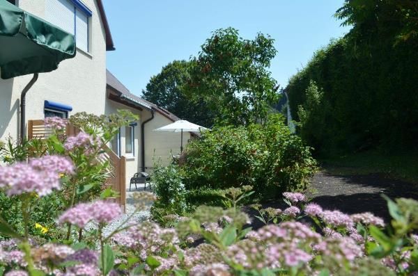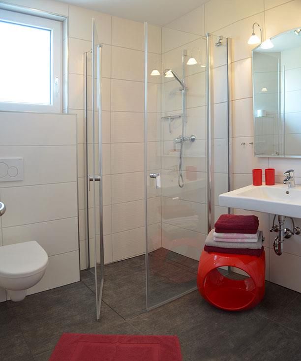 4 Ferienwohnungen haben eine eingerichtete Südterrasse oder Südwest-Terrasse und begehbare Duschen.