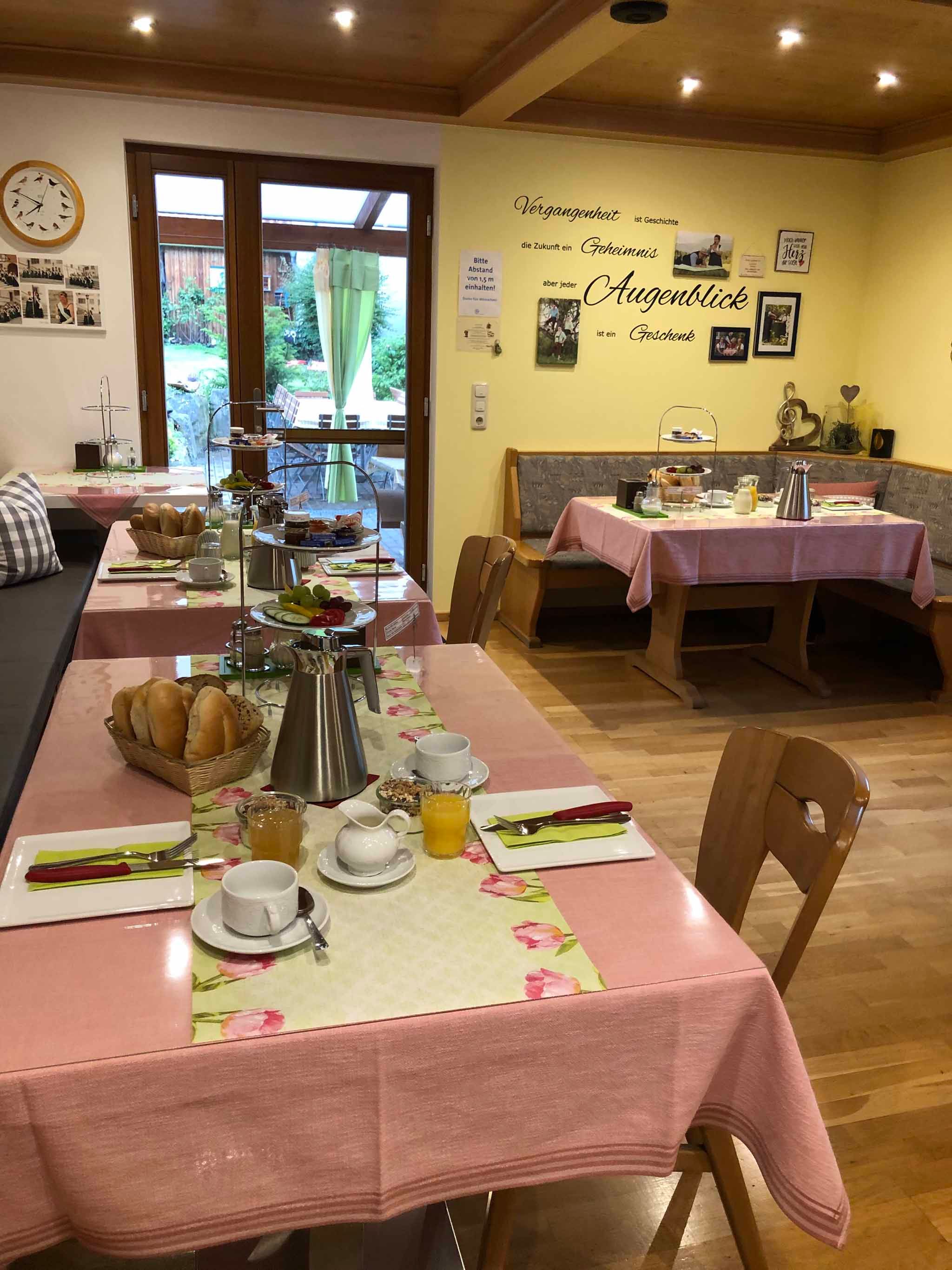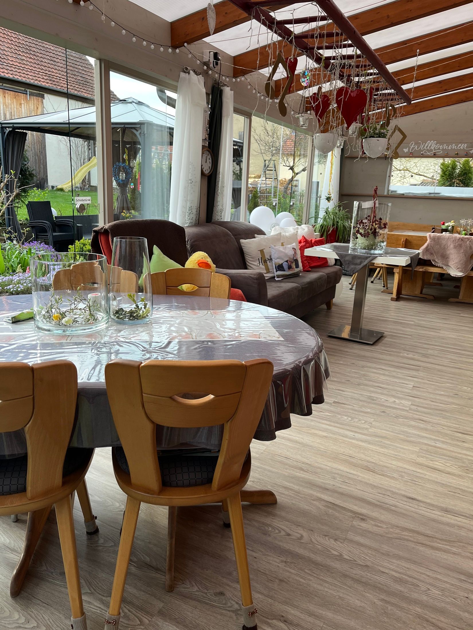 Mitten im Herzen Deutschlands liegt Fladungen, die nördlichste Stadt Bayerns. Hier finden Sie in ruhiger Ortsrandlage unser Haus. In dieser zauberhaften Umgebung warten eine Ferienwohnung und mehrere Zimmer auf Sie, alle sind behaglich groß und mit viel Liebe eingerichtet. Lassen Sie den Alltag hinter sich und tauchen ein in die vielfältigen Möglichkeiten in der bayerischen Rhön. Von unserer Pension erreichen Sie in wenigen Gehminuten den Stadtkern von Fladungen. Mit Komfort und Ambiente sorgen wir dafür, dass Ihr Aufenthalt bei uns ab der ersten Minute erholsam und zu einer bleibenden schönen Erinnerung wird. In der Nachbarschaft finden Sie ein Freibad und eine Tennisanlage. Unser Haus hat das ganze Jahr für Sie geöffnet! Sie werden eine einmalige, ursprüngliche, herbe Kulturlandschaft kennen lernen, die Sie nirgendwo in Deutschland finden! Hier gibt es tolle Ausflugsziele rund um das Gästehaus Jutta, z. B. das Freilandmuseum mit Rhön-Zügle, in kürze das Rhönmuseum, die Wasserkuppe, den Kreuzberg, Hochmoore, bunte Blumenwiesen, tiefgrüne Matten, im Winter mit Eis und Schnee bedeckt zum Rodeln und Skilaufen und viel gesunde Luft, einfach zum Durchatmen. Unser gemütlicher Frühstücks- und Aufenthaltsraum. Ihr Tag beginnt mit einem abwechslungsreichen Frühstücksangebot mit Hofeigenen Produkten (hausgemachten Wurstspezialitäten, selbstgebackenem Brot und Kuchen, sowie selbst hergestellte Fruchtaufstrichen und vieles mehr). Frühstücks- und Aufenthaltsraum mit Speisemöglichkeit. Die Sauna bleibt bis auf weiteres geschlossen