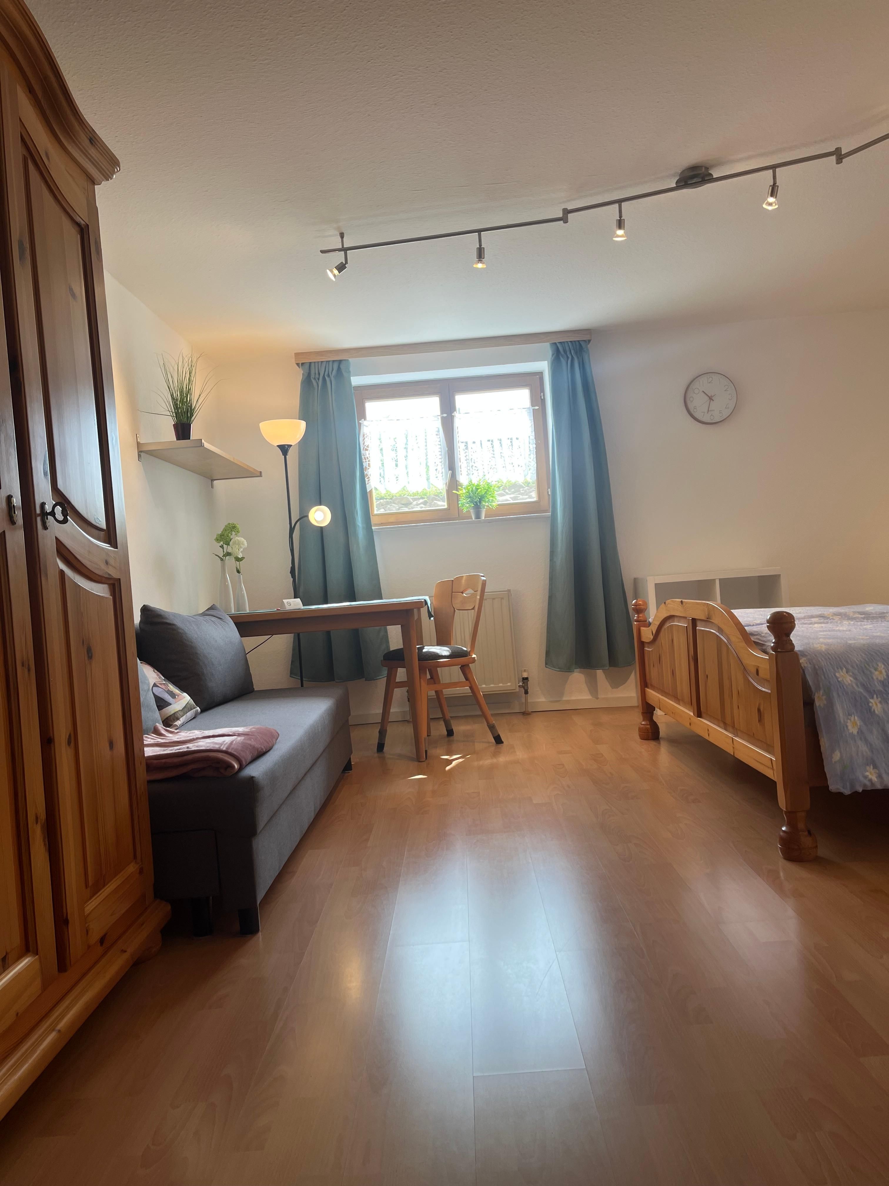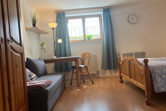 Entschleunigungszimmer: Das Zimmer hat (KEIN TV) befindet sich im Souterrain, Lichtdurchflutet, kein Teppich, kein TV im Zimmer. (Ausschließlich Nichtraucherzimmer). Unsere Zimmer beinhalten kostenfrei TV, W-Lan, Schreibtisch. DU/WC im Zimmer.