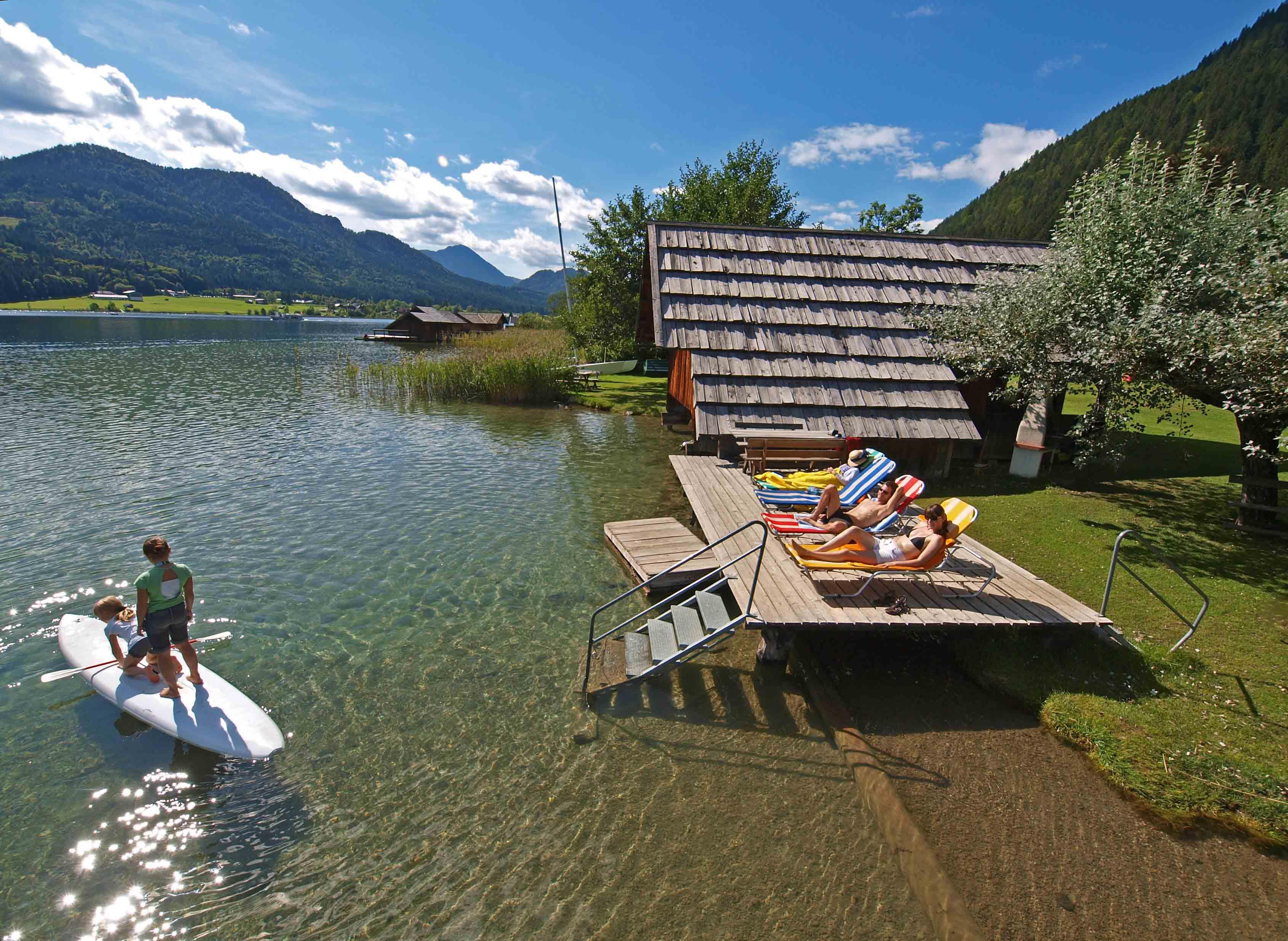 Unsere 2 neuen Bungalows See- und Wiesenbungalow sind am See gelegen und mit allen Annehmlichkeiten ausgestattet, sowie unsere 2 gemütlichen Ferienhäuser Wiesenhäusl und Fischerhäusl