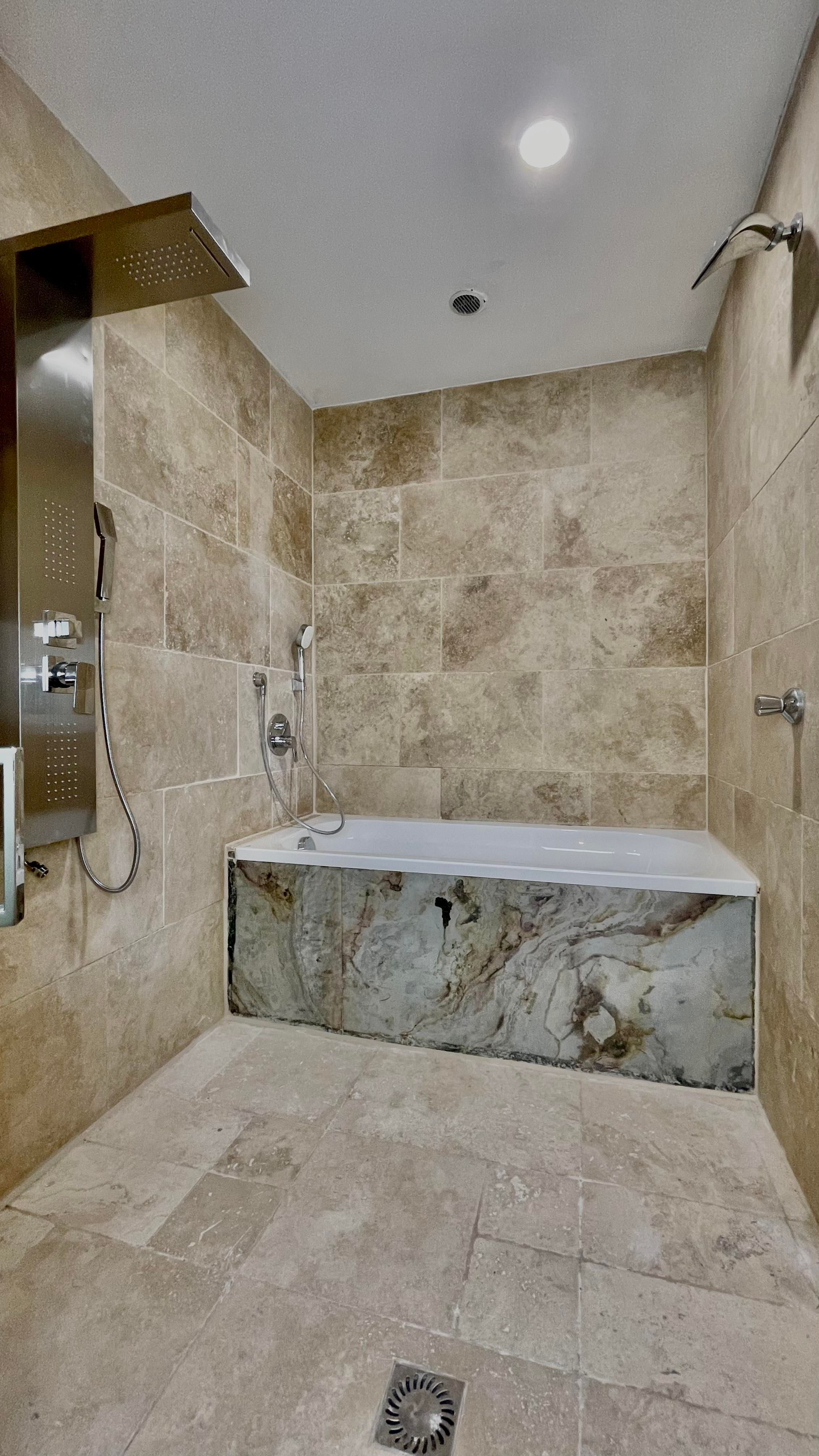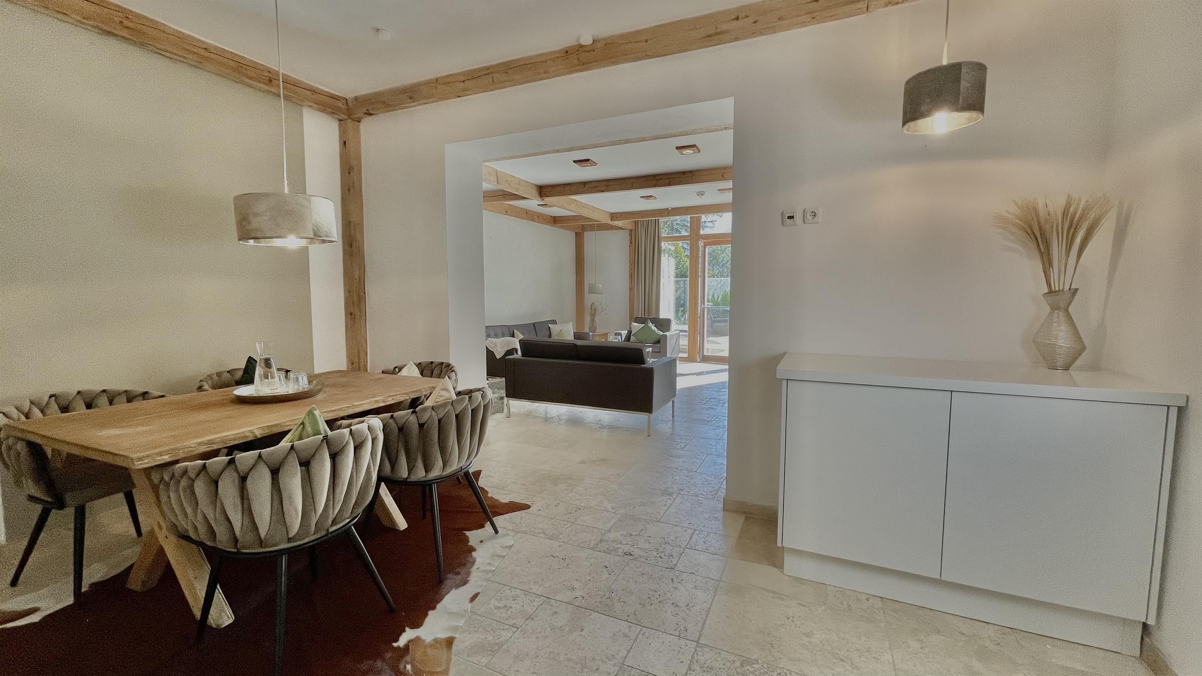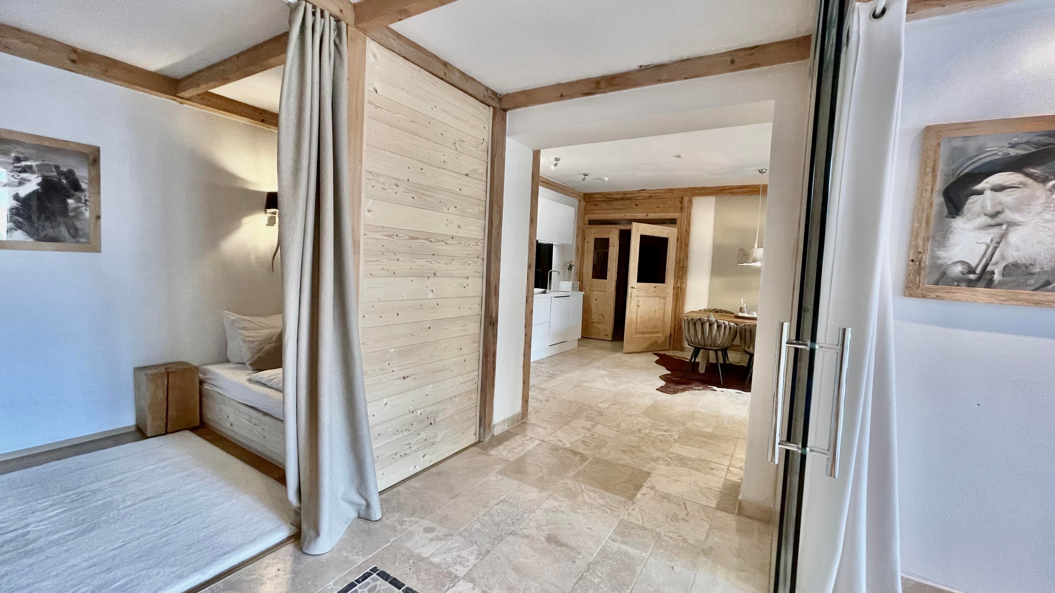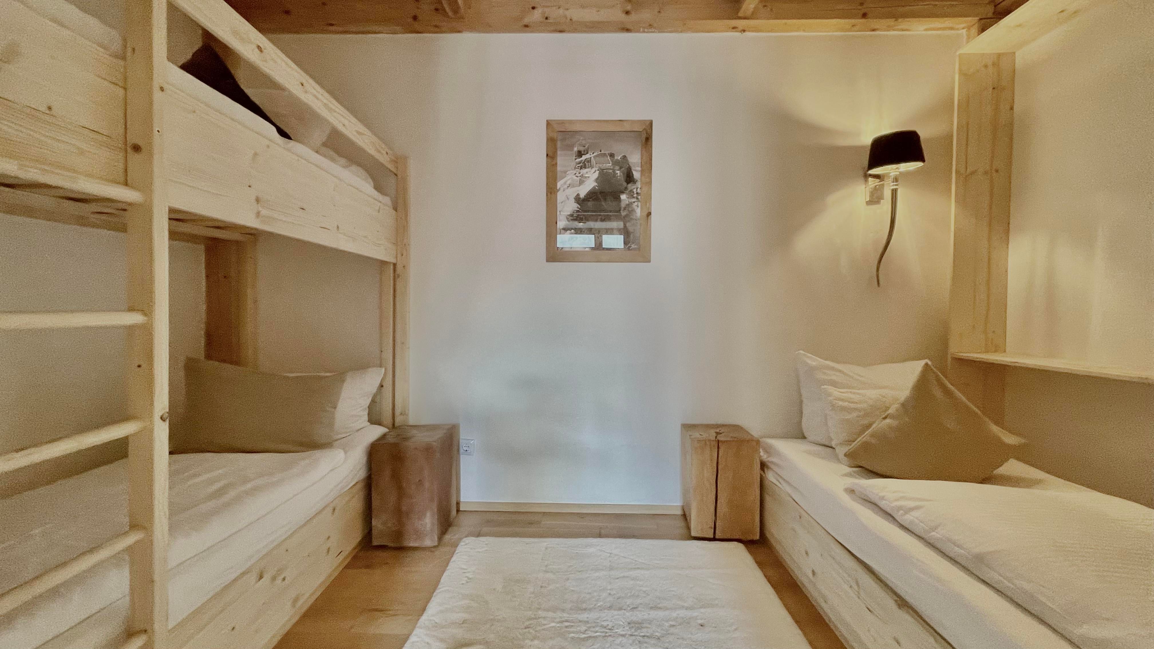 Dieses stilvolle 124 m²-Apartment für bis zu 4 Personen vereint Komfort und Luxus. Es bietet einen offenen Wohn- und Essbereich mit voll ausgestatteter Küche, ein Schlafzimmer mit Zugang zur Terrasse, ein abgetrenntes Kinderzimmer, sowie ein luxuriöses Bad mit Dusche, Badewanne, Sauna, Dampfbad und separatem WC – ideal für entspannte Urlaubstage mit traumhaftem Bergblick.