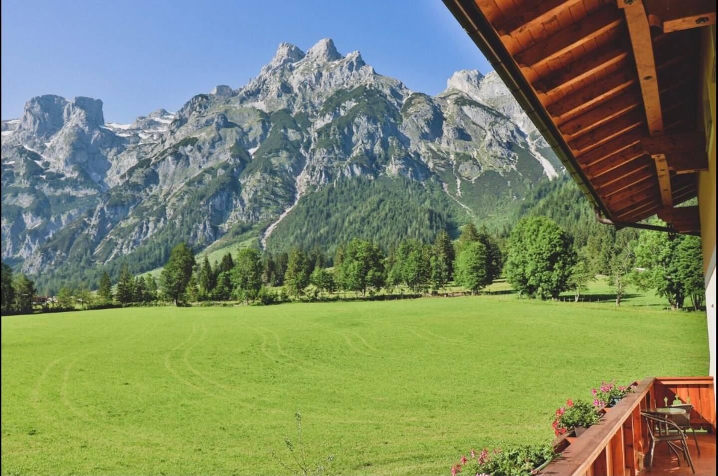 Genießen Sie die Ruhe am Fuße des Tennengebirges mit traumhaftem Bergblick.