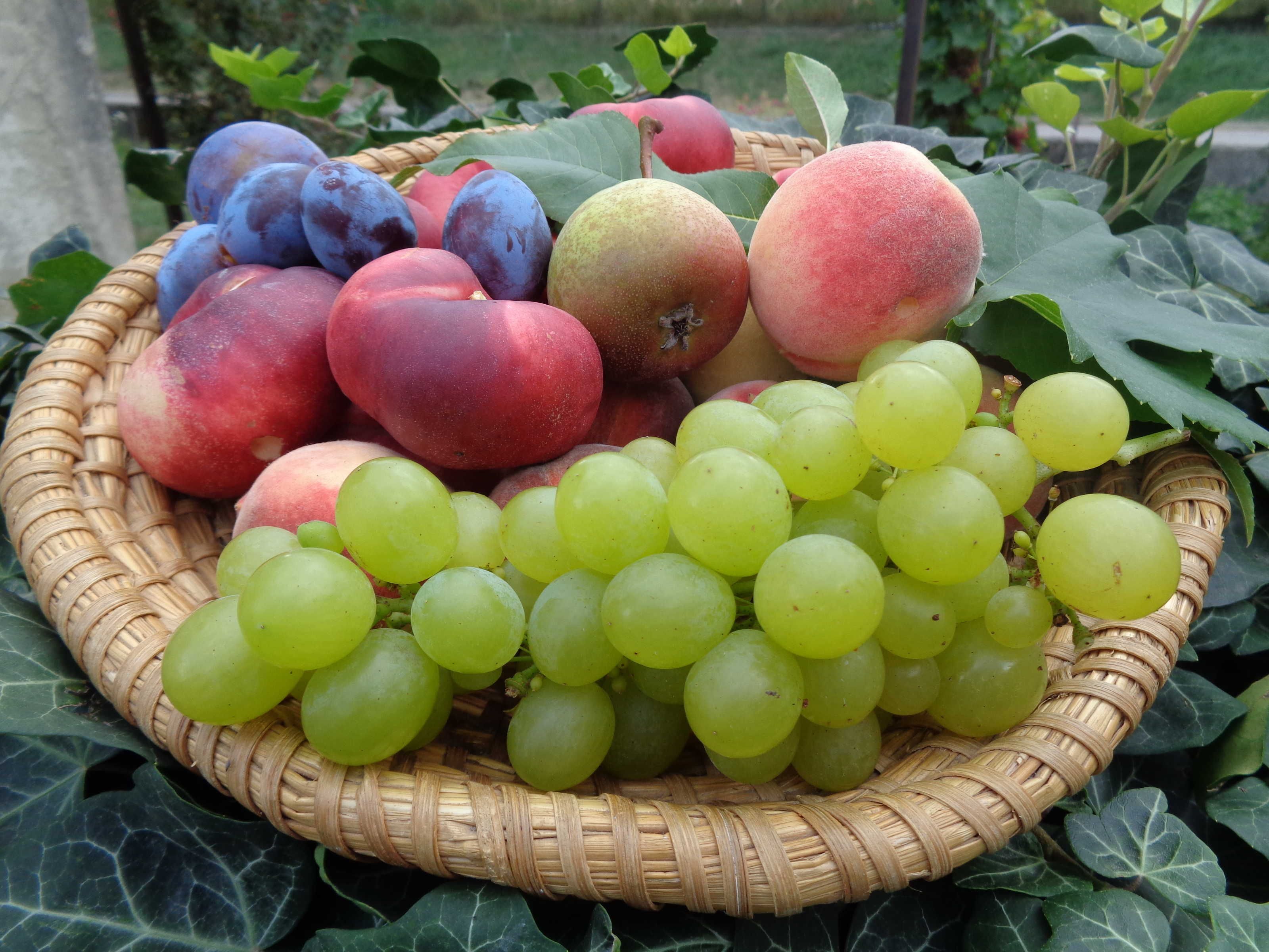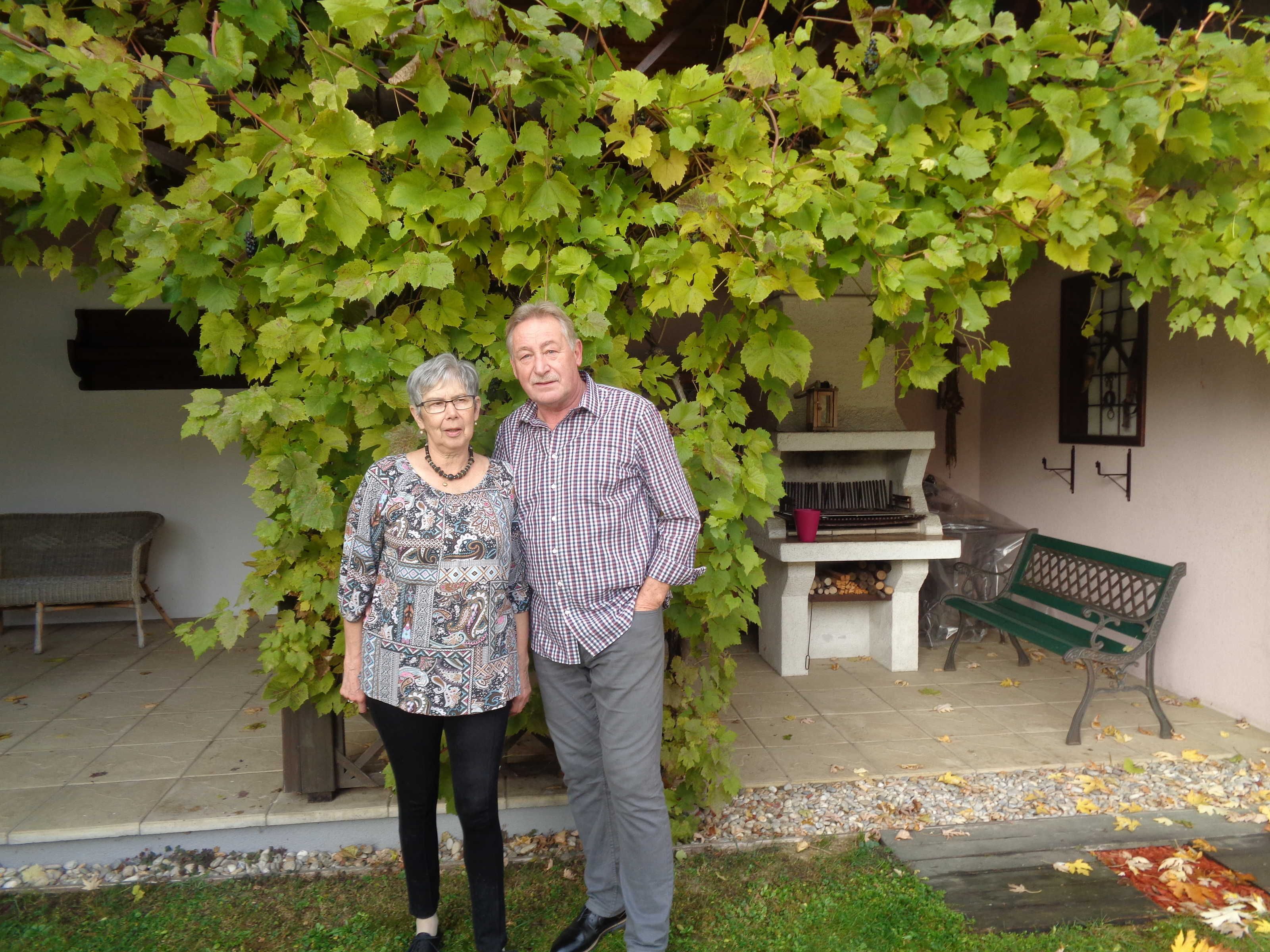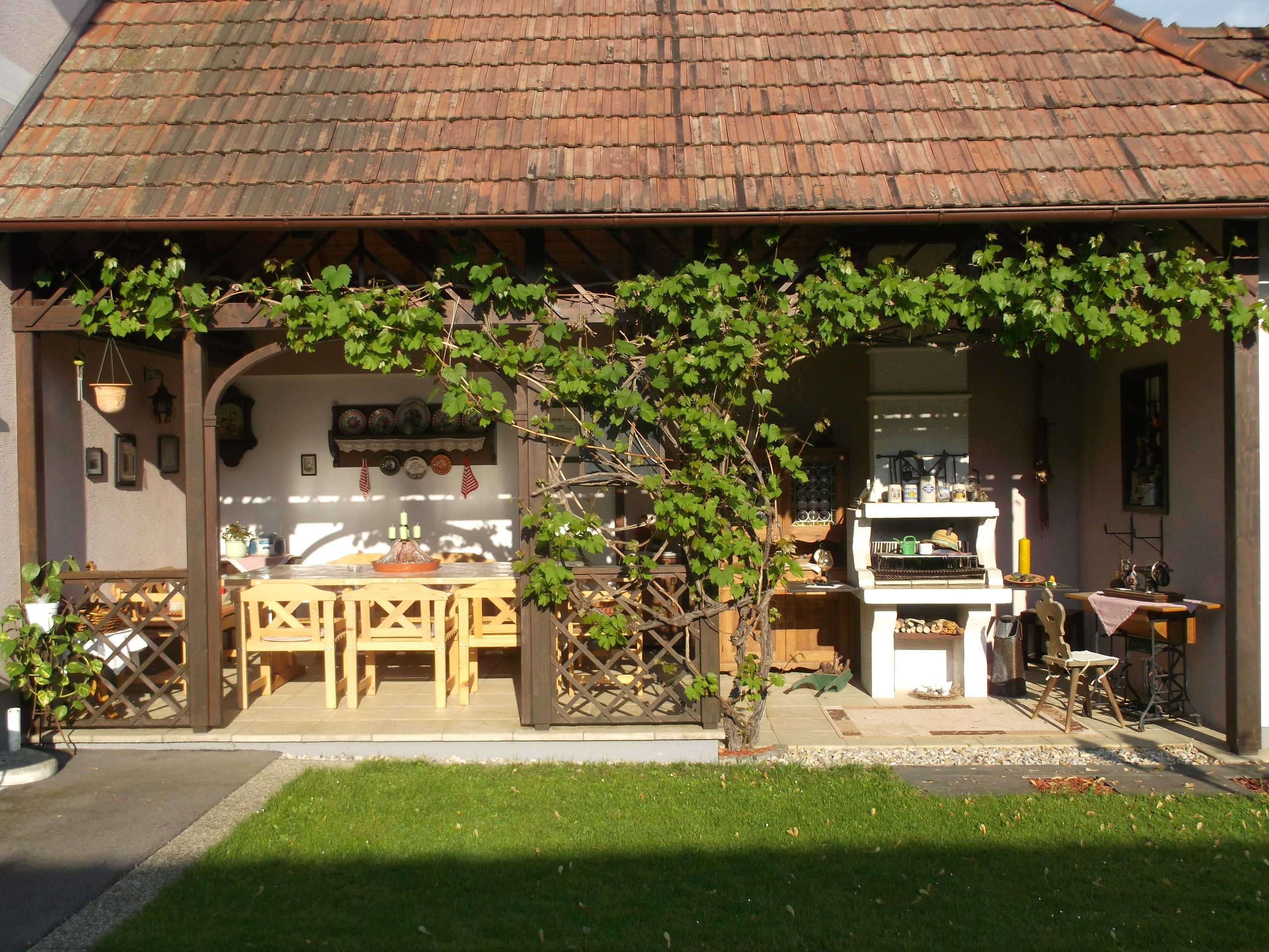 Weinstöcken, sowie einem Grillplatz mit Weinlaube.