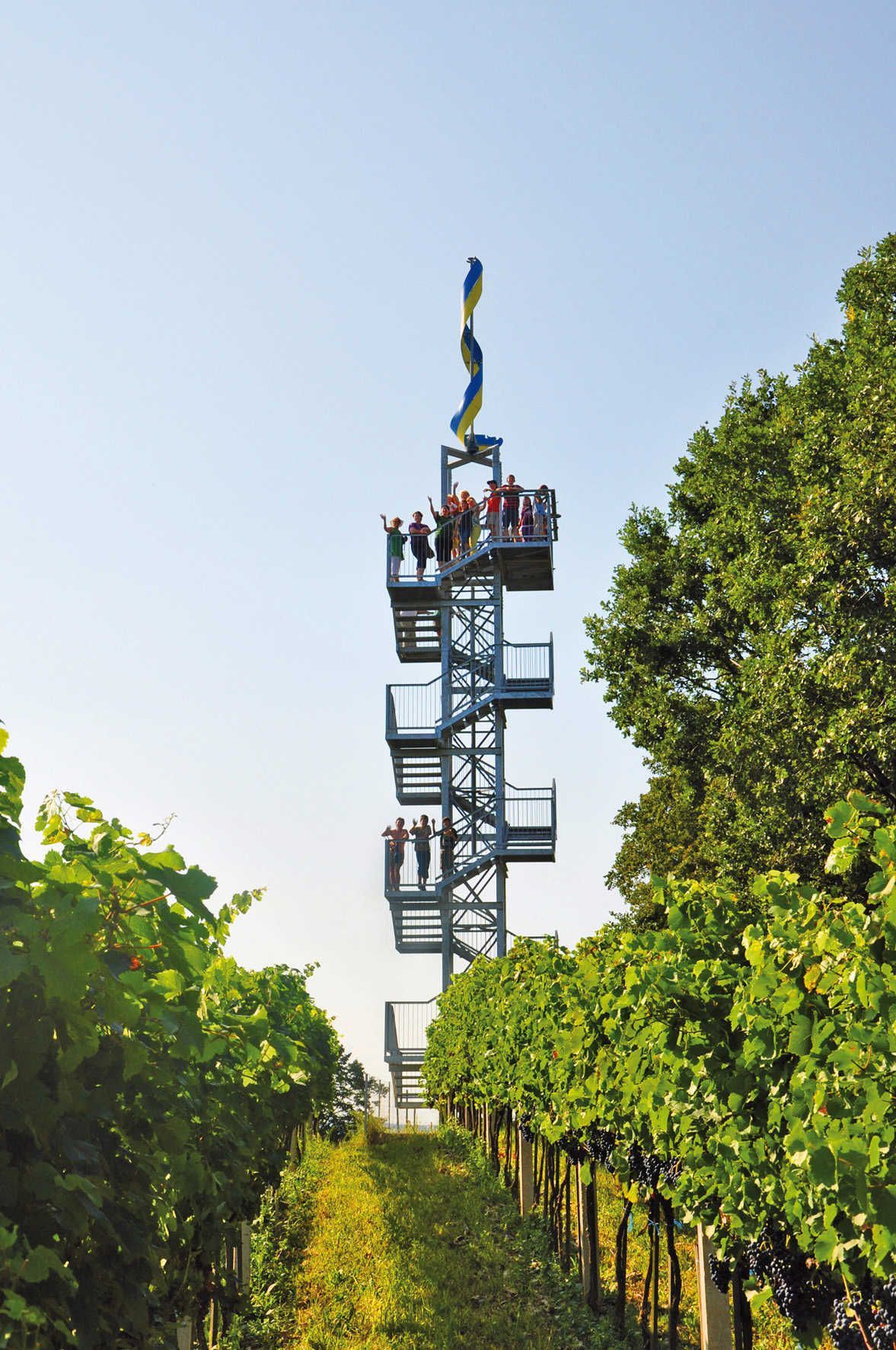Besuchen Sie den neu errichteten Aussichtsturm Korkenzieher in der Ahrenberger/Eichberger Kellergasse mit Weit- & (W)Einblick für die ganze Familie.