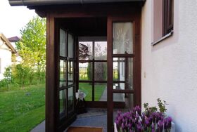 Doppelzimmer im Gästehaus mit eigenem Eingang mit Glasverbau.