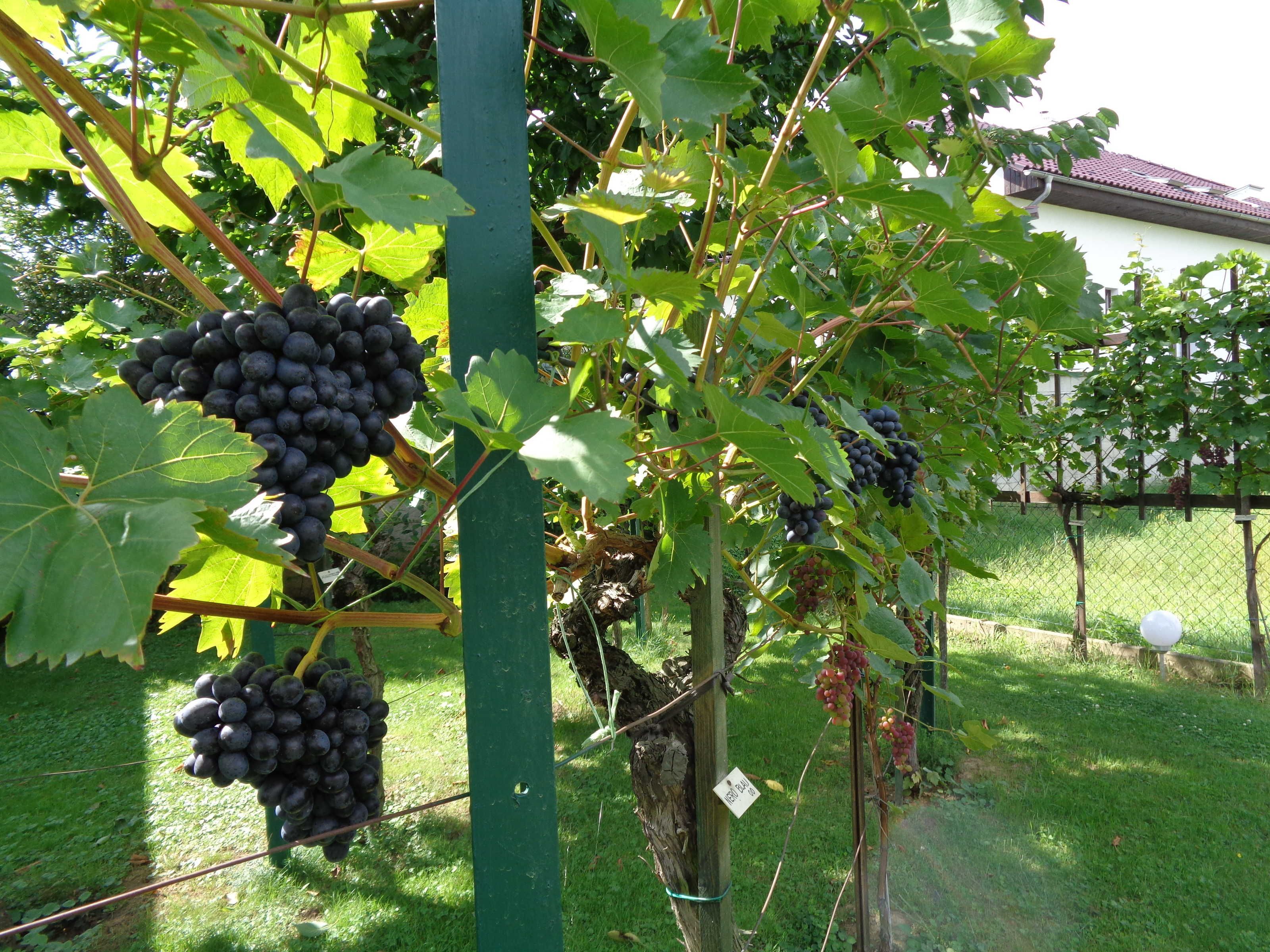 Weinstöcken, sowie einem Grillplatz mit Weinlaube.