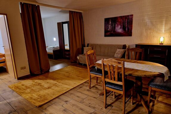 Unsere circa 50 m2 große Ferienwohnung ist ideal geeignet für Paare und Familien, aber auch Wandergruppen, Vereine und Montagearbeiter. Sie ist grundsätzlich für die Selbstversorgung von 1-4 Personen eingerichtet. Das erlaubt Ihnen größtmögliche Flexibilität bei der Gestaltung Ihres Tagesablaufes. Der sportlich aktive Urlaubsgast findet zudem ausreichenden Stauraum für seine Sportgeräte und die Ausrüstung.