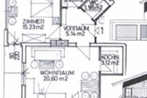 ca. 50 m² groß: Vorraum, 1 Schlafraum, Wohnraum mit ausziehbarer Doppelcouch, Kochnische, Dusche/WC separat.