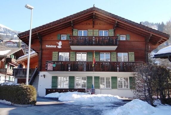 2-Zimmer-Wohnung im EG in einem Mehrfamilienchalet. Sonnige Lage, am Dorfrand, 5 Gehminuten vom Bahnhof entfernt, gute Zufahrt im Sommer und Winter. Schöne Terrasse mit Cheminée und Grill.