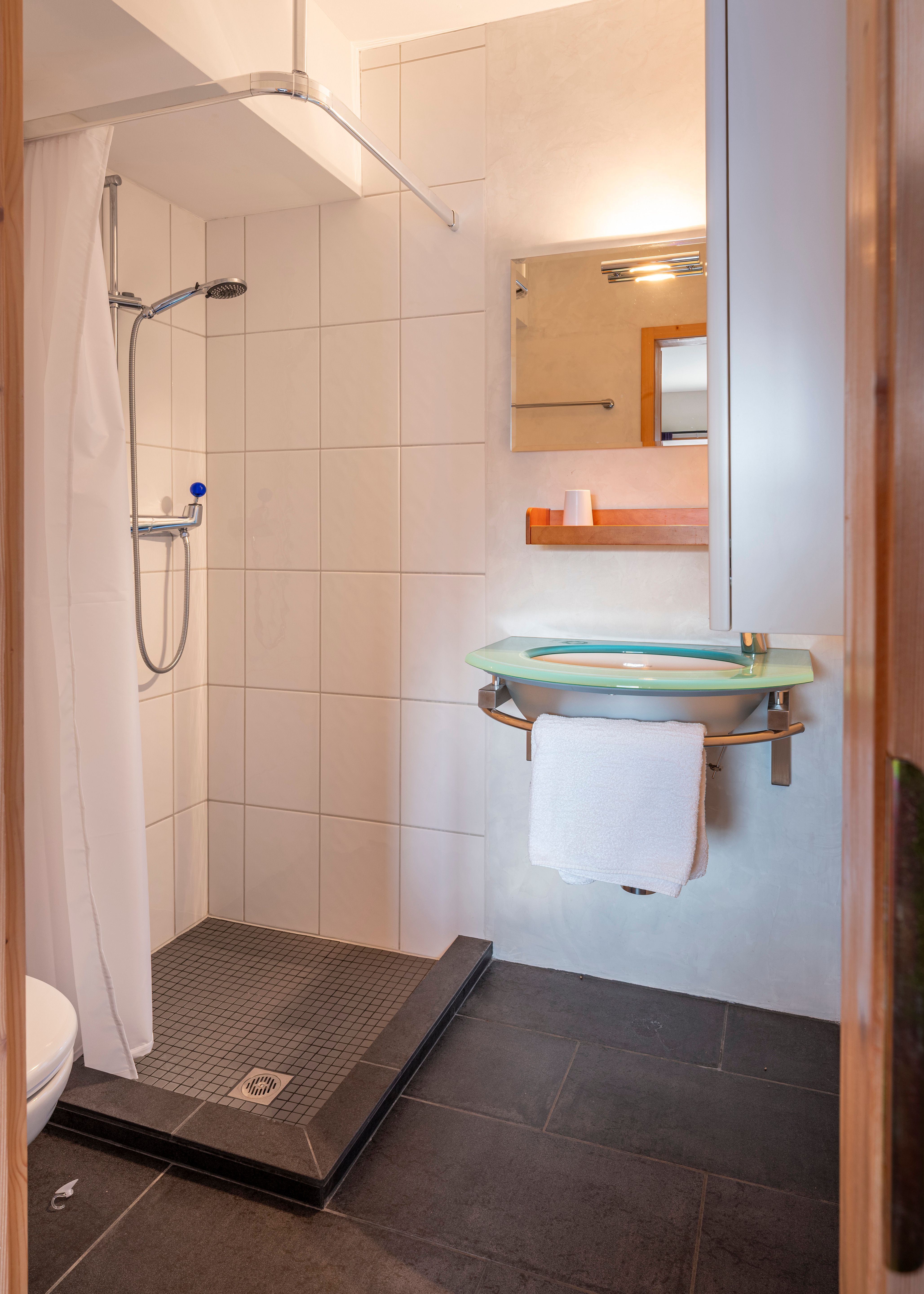 Die 4.5 Zimmer Wohnung im Haus Tashi-Deleg zieht sich über 2 Stockwerke.