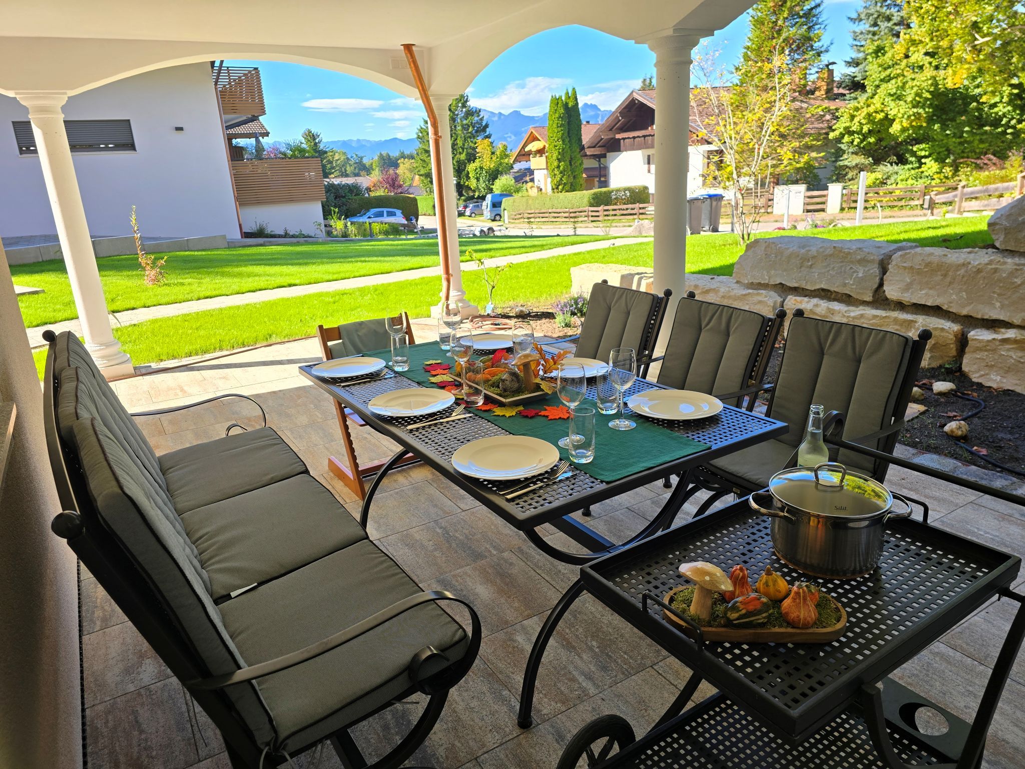 Nach einem Tag draußen – sei es eine Wanderung auf die Kampenwand oder eine Radtour rund um den Chiemsee – kehrt man zurück an einen Ort, der einfach gut tut. Die großzügige Ferienwohnung am Eichberg bietet nicht nur viel Platz im Inneren, sondern auch draußen: eine über 60 m² große, überdachte Terrasse mit Alpenpanorama. Hier lässt sich der Tag entspannt starten oder ausklingen – beim Kaffee, Grillen, Sonnen oder einfach nur mit einem guten Buch in der Hand.