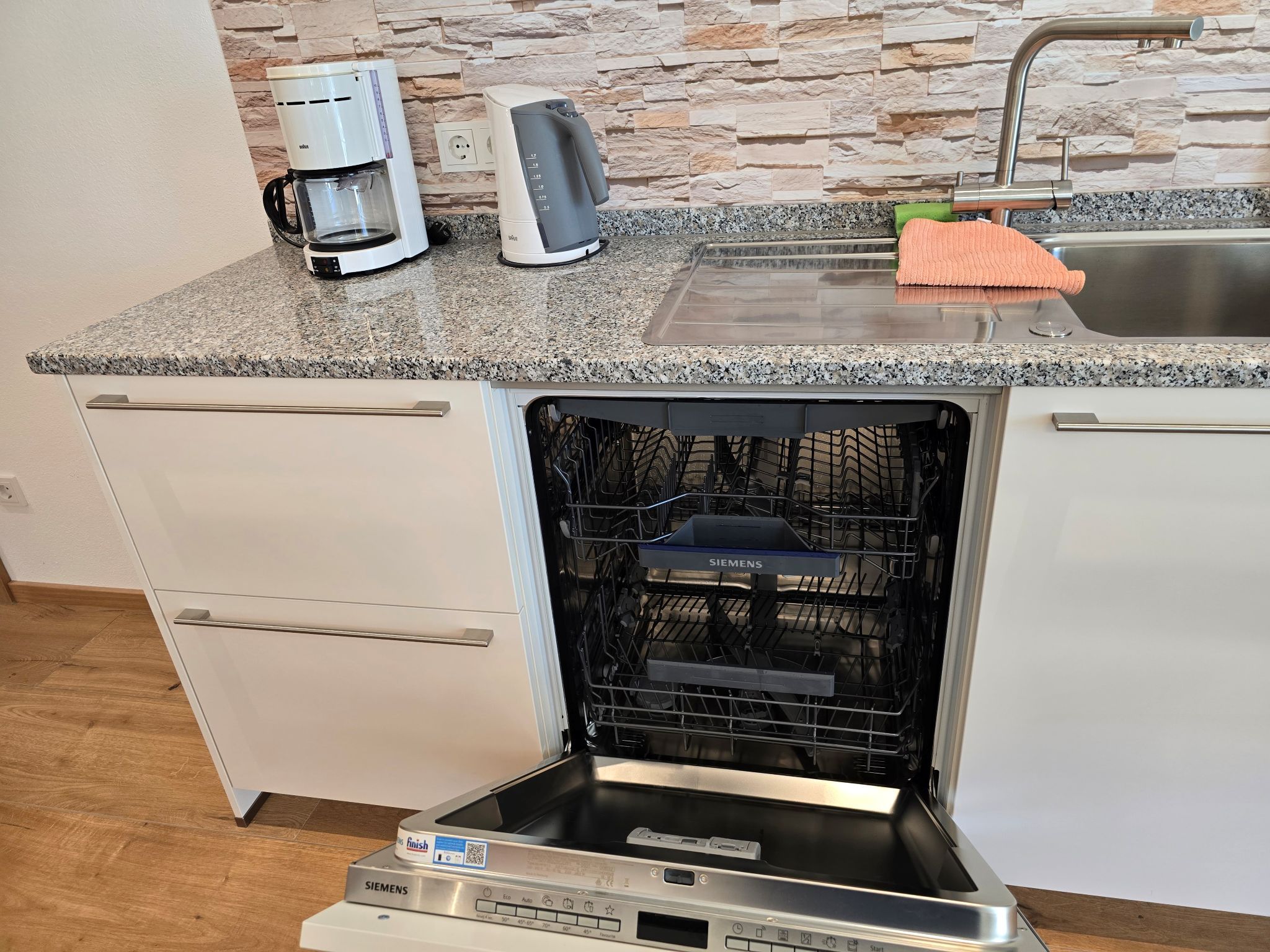 Die Couch im Wohnzimmer lässt sich als Schlafcouch ausziehen (Liegefläche 1,90m x 1,20m, mit Topper). Somit bietet die Wohnung Platz für 6 Personen. Ein Kinderbett kann kostenlos dazugestellt werden.