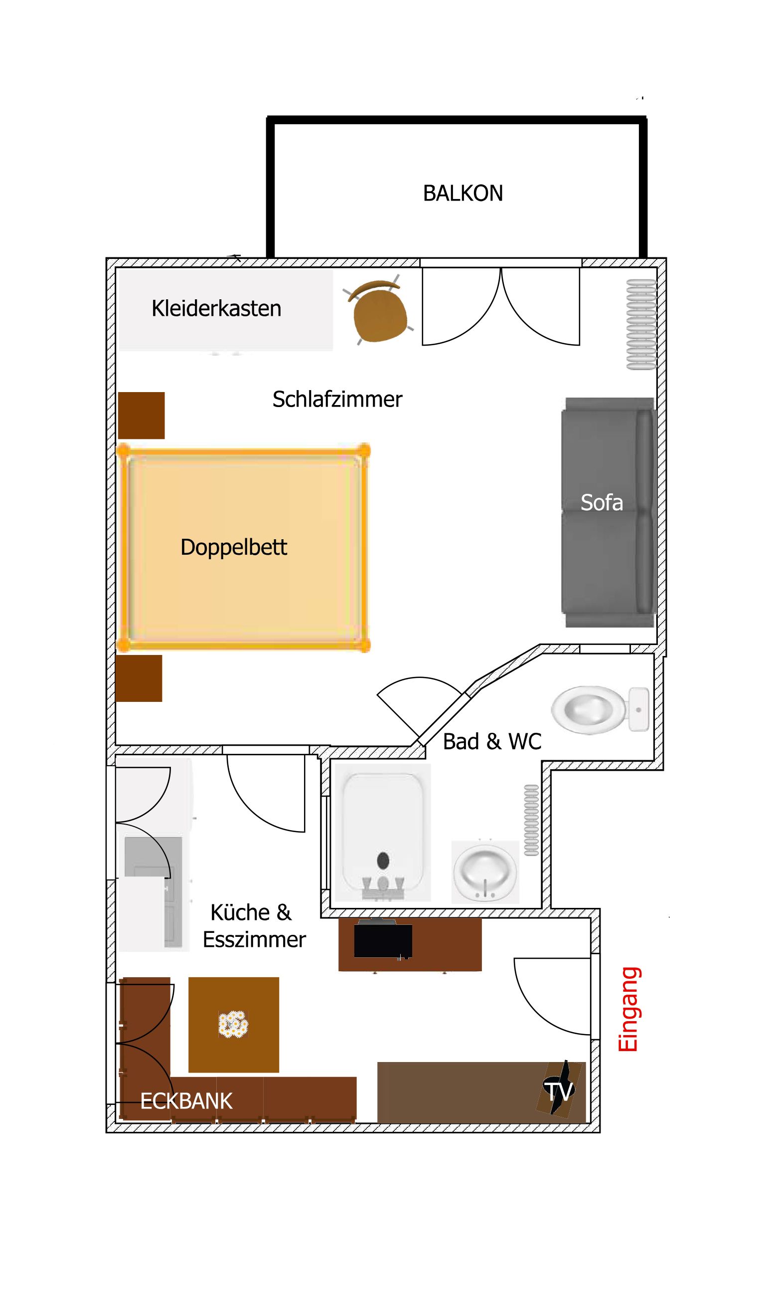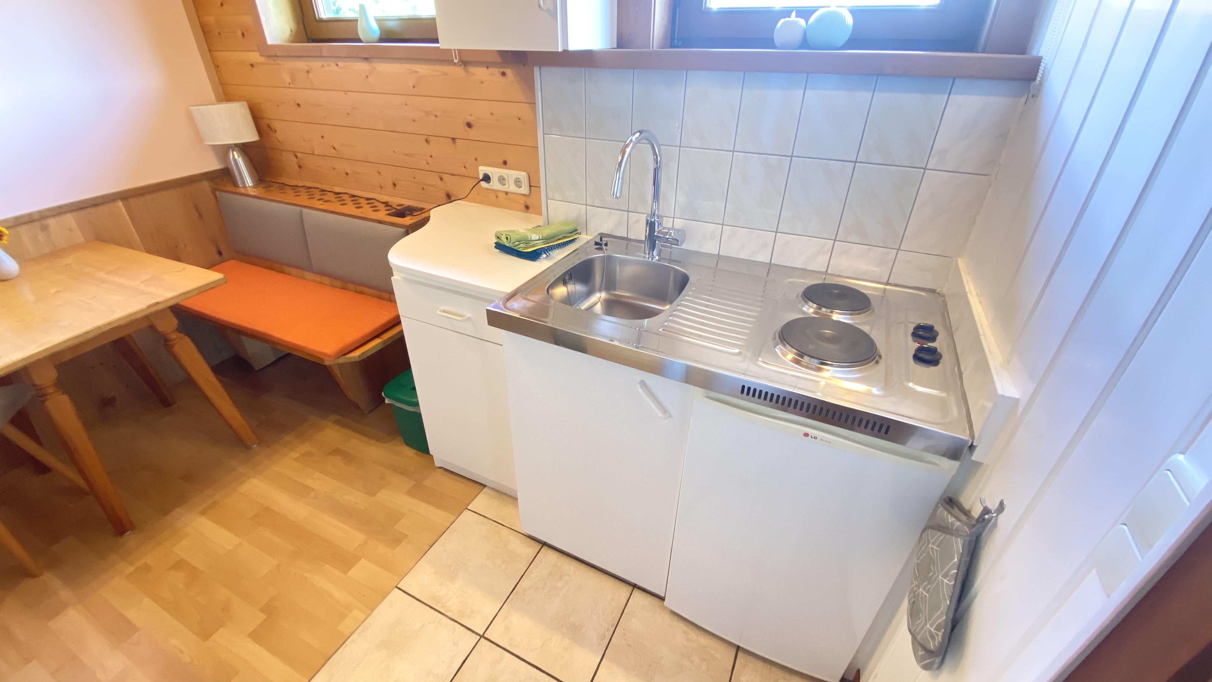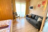 Schöne gemütliche Wohnung mit ca. 28m². Kochnische mit 2 Herdplatten, Mikrowelle, Toaster, Minibackofen, Kühlschrank mit kleinem Gefrierfach, Filterkaffeemaschine und Senseo-Padmaschine, Wasserkocher, Koch- und Essgeschirr, Bettwäsche, Handtücher & Geschirrtücher einmalig vorhanden, Fön, Sat-TV, Badezimmer mit Dusche, Waschbecken und WC, kleiner Balkon. Ein Schlafzimmer mit Ehebett.