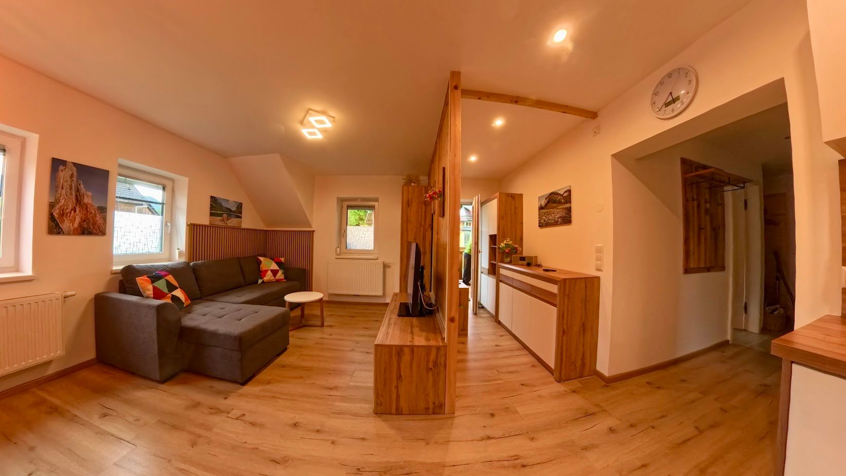 Der Bahnhof ist in wenigen Gehminuten erreichbar. Die Bushaltestelle nach Hallstatt, Skiregion Dachstein West und Freesports Arena Krippenstein befindet sich direkt neben unserem Haus. Wir befinden uns direkt an der beliebten Dachsteinrunde – die 3-Tages Mountainbike-Tour rund um die Bergpersönlichkeit des Dachsteins. Unser Haus war bis 2016 ein Lebensmittelgeschäft (Greislerei) und wurde 2 Jahre lang umgebaut, alle 3 Ferienwohnungen sind soeben fertiggestellt worden.