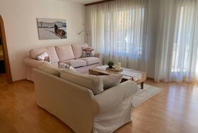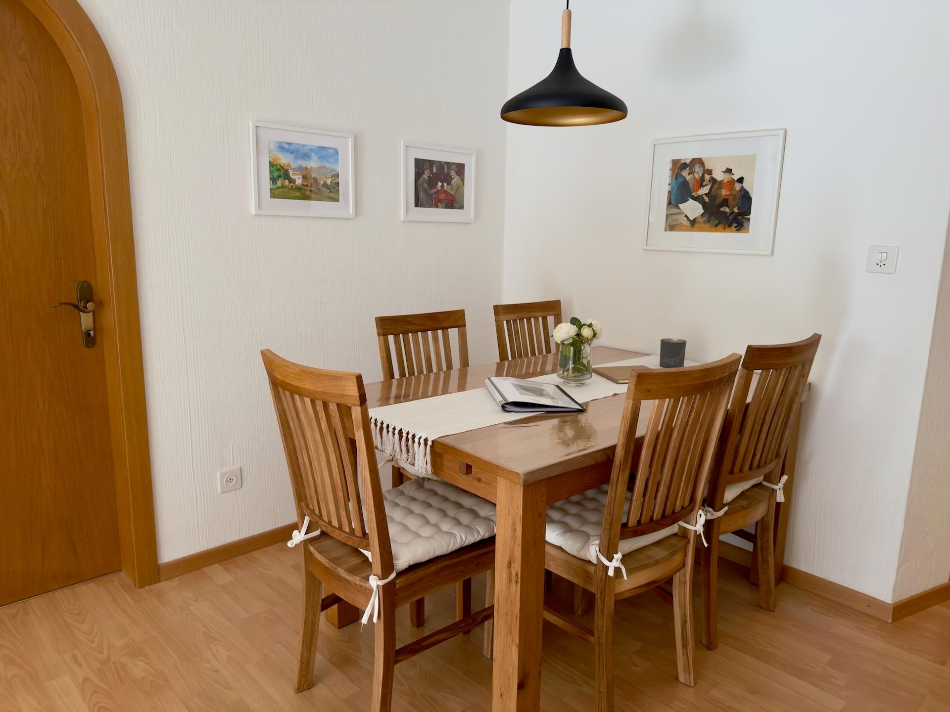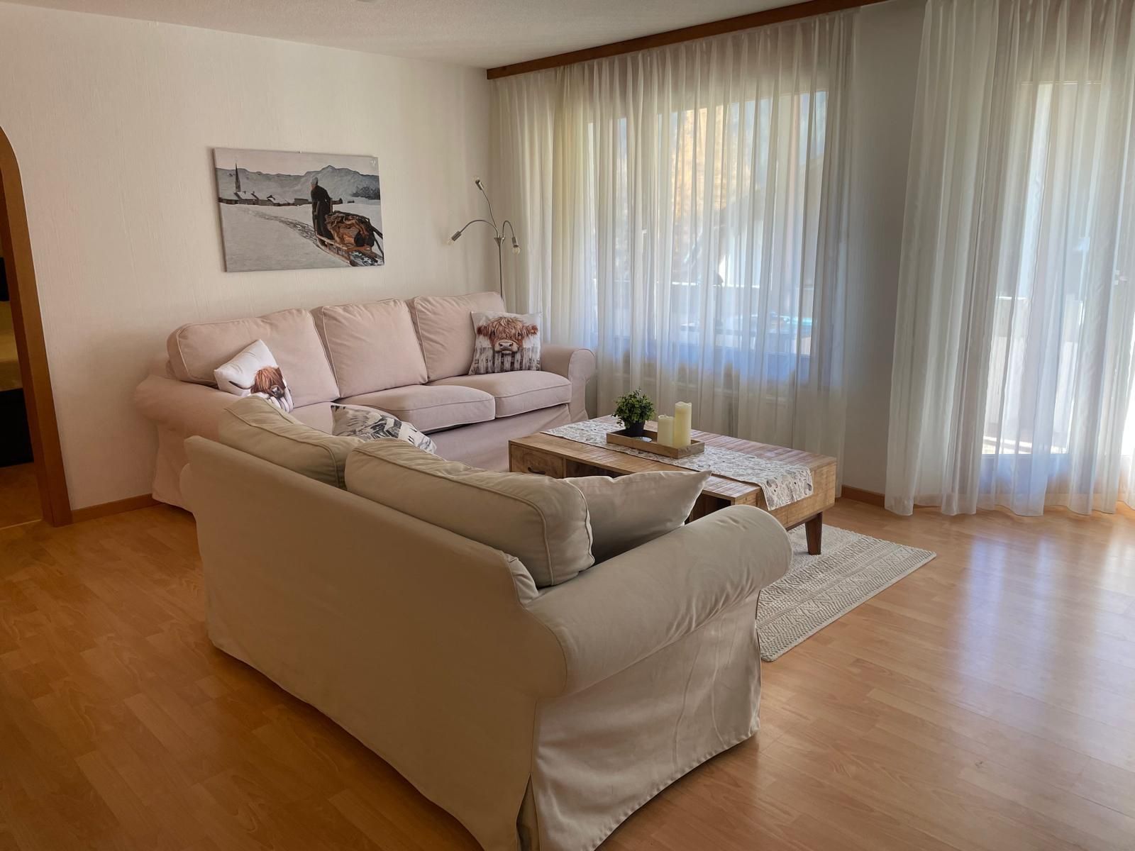 Die Ferienwohnung Cadras 14 ist eine 80m2 grosse 3.5-Zimmerwohnung im 1. Obergeschoss eines Mehrfamilienhauses. 1 Schlafzimmer mit einem Doppel-Boxspringbett (180cmx200cm) und 1 Baby/Kleinkinderbett (100cmx140cm), 1 Schlafzimmer mit einem Doppel-Boxspringbett (180cmx200cm), 1 Schlafcouch (Breite 140-160cm) im Wohnzimmer. Belegung für 5 Erwachsene und ein Kleinkind. Offene Küche mit Backofen, Kühlschrank, Induktionskochfeld, Geschirrspülmaschine, Mikrowelle und Kaffeemaschine (Nespresso). Wasserkocher, Toaster, Pürierstab, Sodastream-Sprudler. Racletteofen und Fondue Caquelon. Badewanne mit Duscharmatur und WC. Smart-TV, Blu-Ray/DVD Player, WLAN, Radio und Cheminée. Haustiere nicht erlaubt. Nichtraucherwohnung. Bettwäsche, Frottéewäsche und Küchentücher vorhanden. Balkon. Waschmaschine und Wäschetrockner, sowie Skiraum zur Mitbenutzung im Haus. Garagenstellplatz Nr.14, abstellen von Fahrrädern ebenfalls möglich, Garageneinfahrt Höhe 180cm.