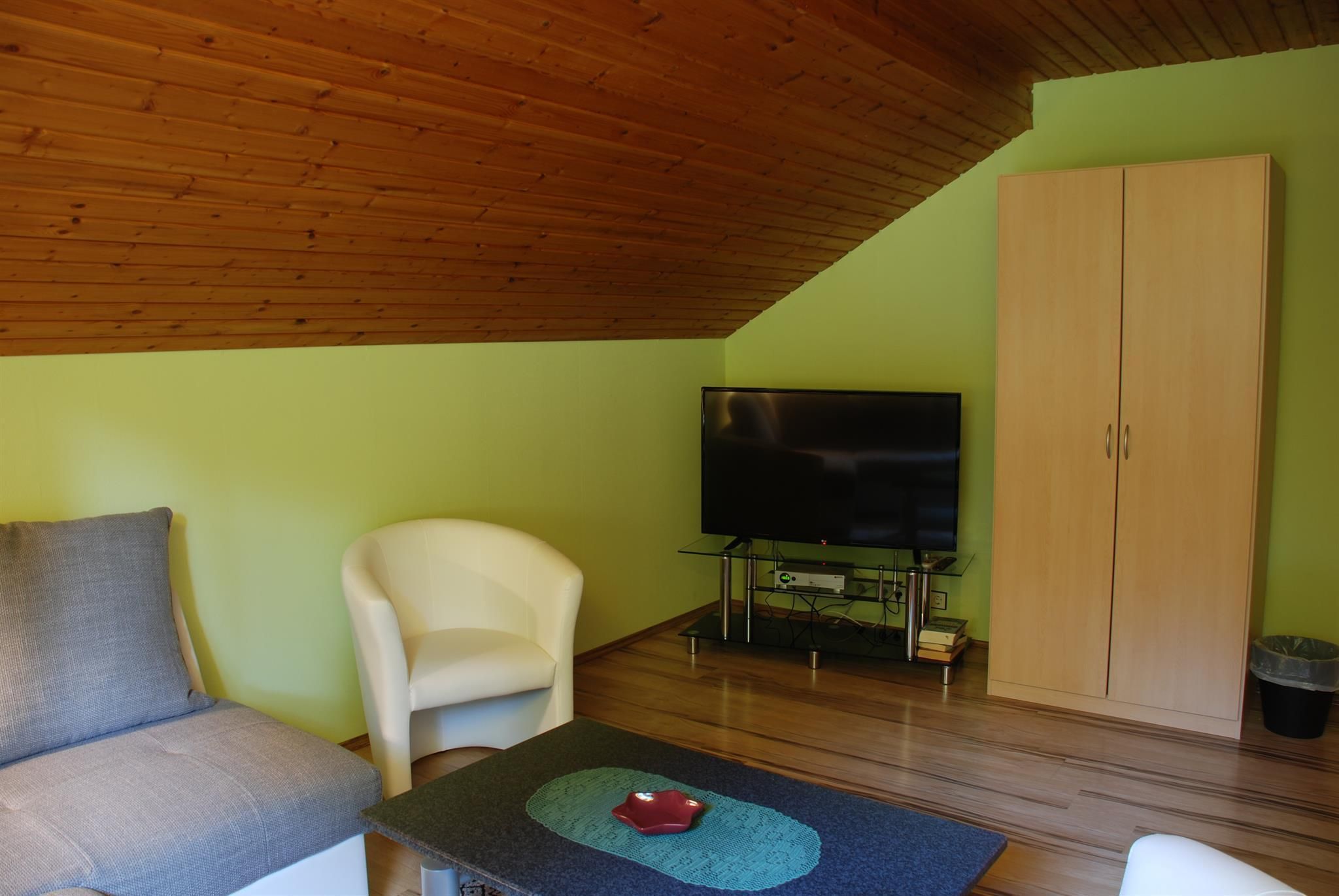 In zwei Zimmern befinden sich jeweils ein Doppelbett sowie ein Einzelbett. In beiden Zimmern sind ebenso Fernseher mit Satellitenanschluss zu finden. Im dritten Zimmer steht ein weiteres Doppelbett. In unserer Ferienwohnung gibt es auch einen schönen Vorraum mit Garderobe. Das Badezimmer verfügt über eine Dusche, ein WC und einen schönen Waschbereich. In der Küche findet man genügend Platz für bis zu 8 Personen. Mit einem großen Esstisch und einem Fernseher mit Satellitenanschluss steht auch gemütlichen Fernsehabenden nichts im Wege. Direkt von der Küche aus kommt man auf die Terasse wo sich auch der direkte Anschluss an den Garten mit Kamingrill befindet. Dort kann man gemütliche Grillabende genießen.