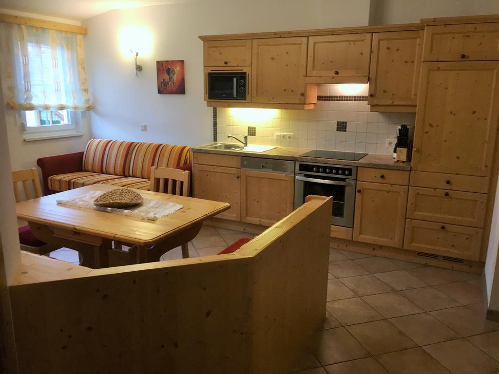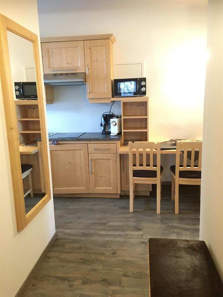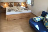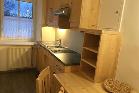 Die Ferienwohnung 4 kann sowohl als Erweiterung zur Ferienwohnung Nr 1 gebucht werden, als auch separat. Sie hat auf rund 40 m²  Platz für ein bis zwei - auf Anfrage bis vier Personen. Ein Schlafzimmer für zwei Personen mit einer ausziehbaren Couch für zusätzliche 2 Personen sorgen für einen guten Schlaf. Auch hier gibt es eine Wohnküche voll ausgestatteter Küche. Das Badezimmer verfügt über Dusche und WC.