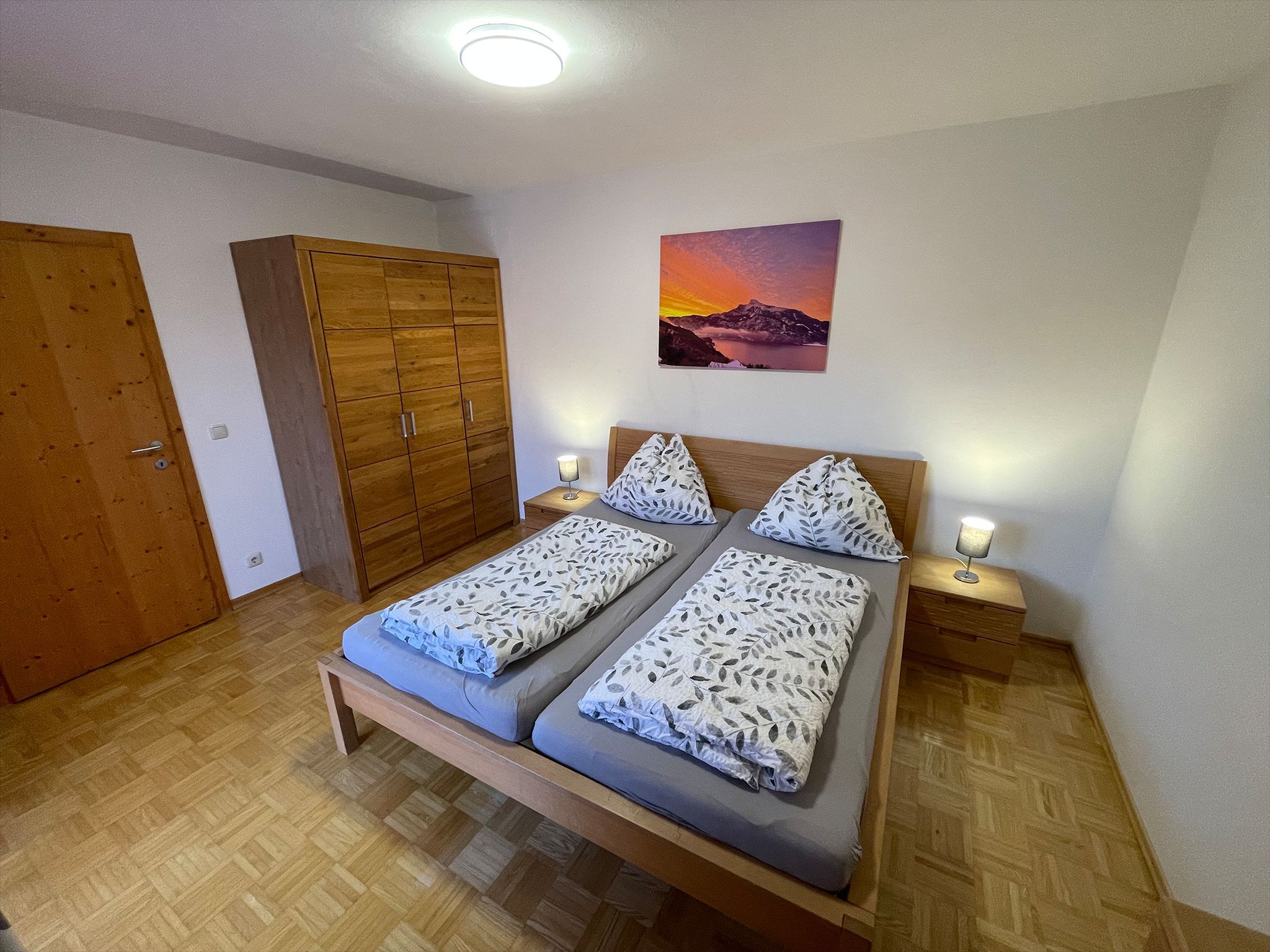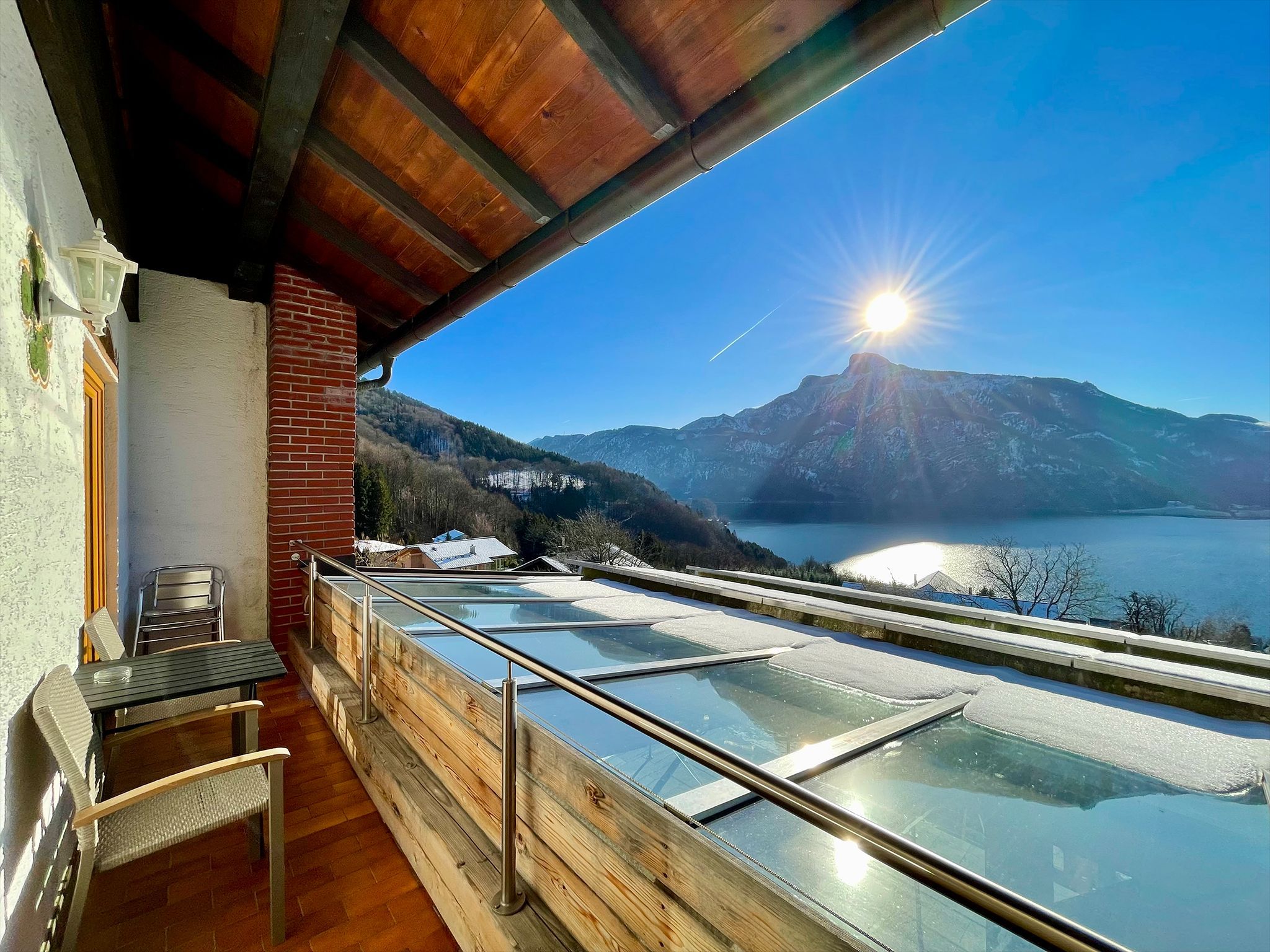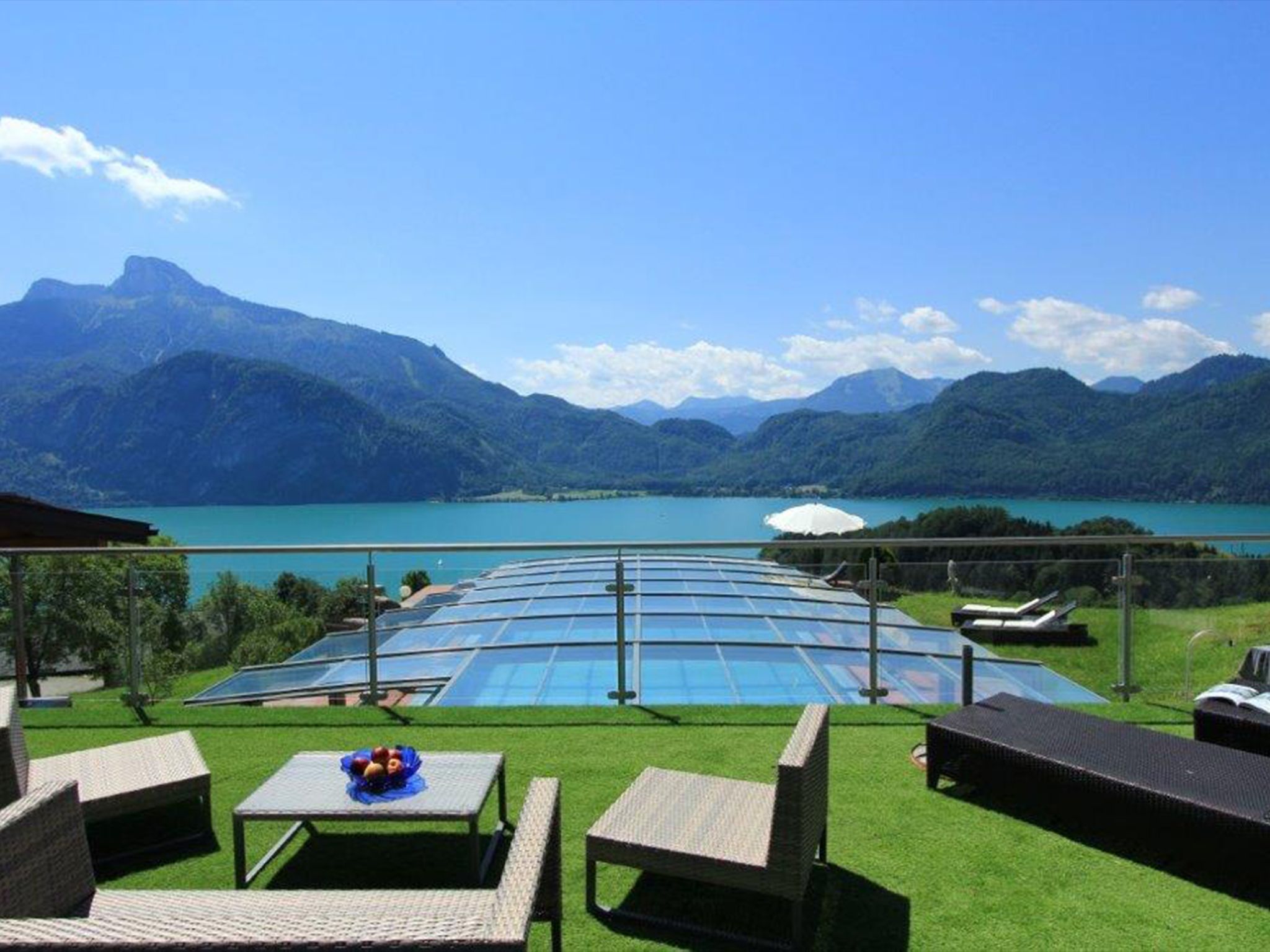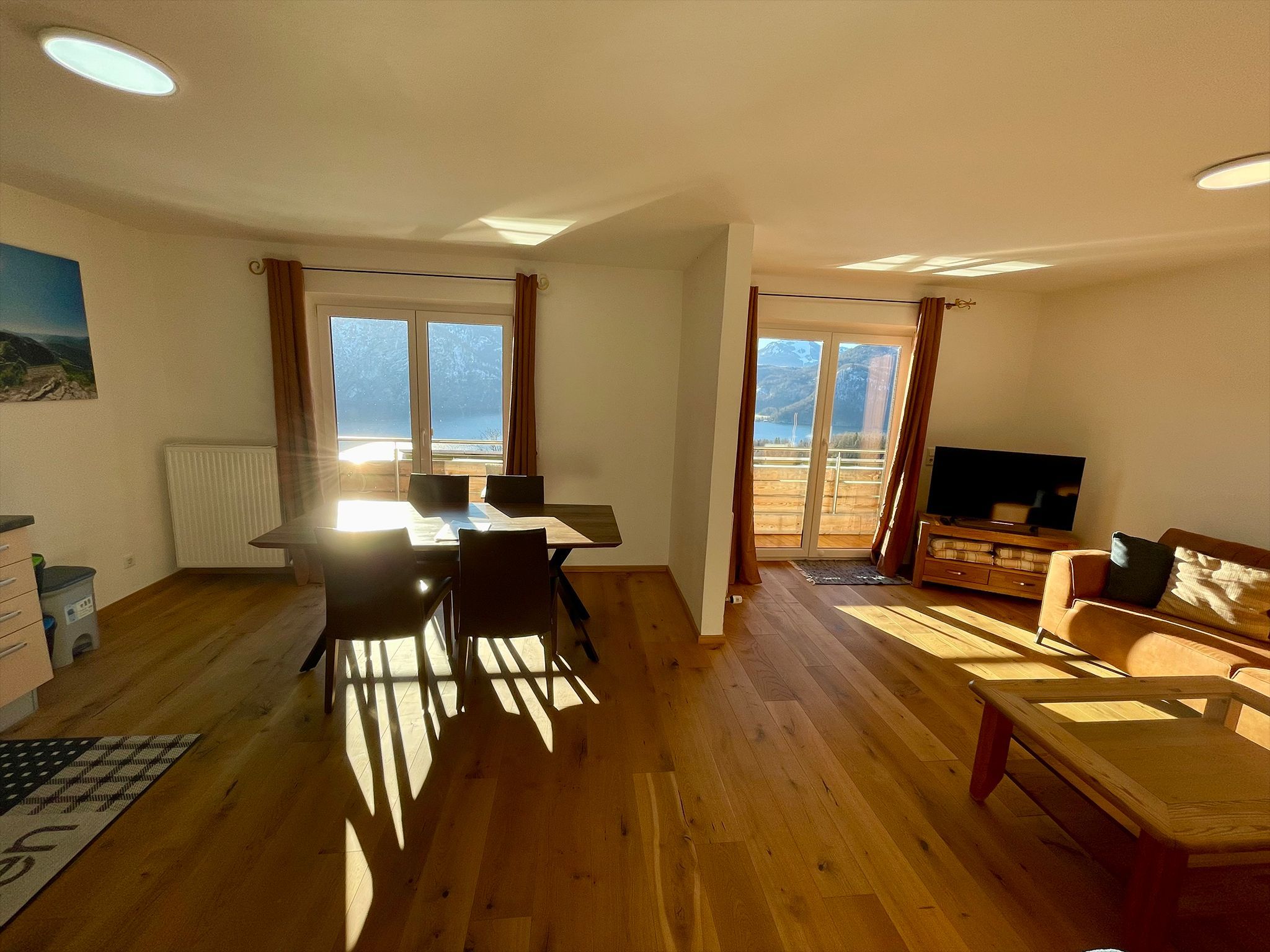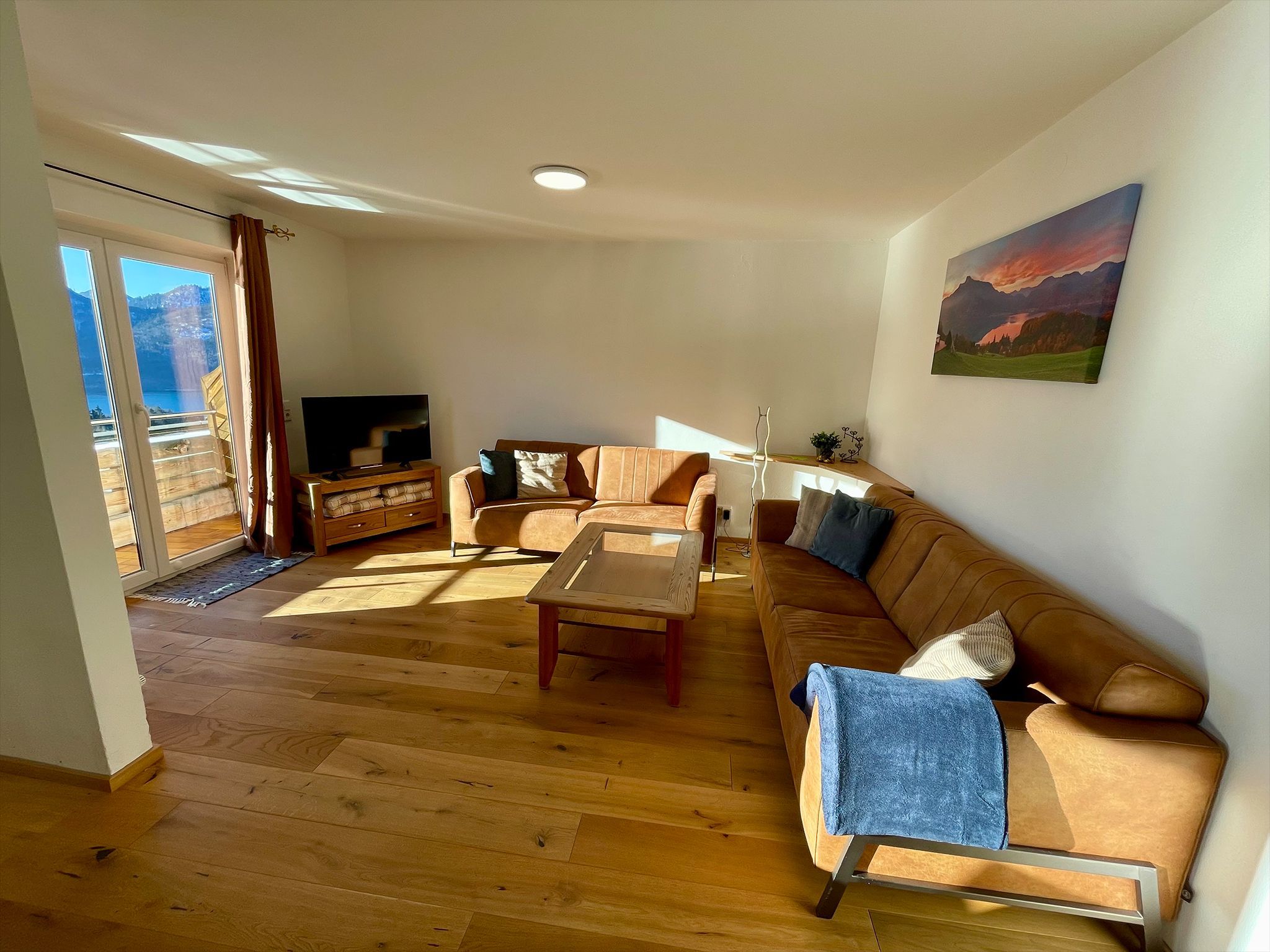 Die gemütliche Wohnung liegt auf einem idyllischen Bauernhof im Salzkammergut, mitten in der Natur, in sonniger Südhnaglage ideal für Familien und Ruhesuchende. Die traumhafte Umgebung begeistert mit einem herrlichen Panorama über Mondsee und Schafberg, ebenso wie der beheizte Pool, die Sauna und Infrarotkabine. Wanderungen oder Mountainbike-Touren starten direkt ab der Haustüre.Auf dem wettergeschützen Balkon mit Seeblick können Sie den Abend entspannt ausklingen lassen. Die geräumige Wohnung ist zeitlos modern eingerichtet und bietet einen großzügigen Wohn-Essbereich. Mit dem Flat-Screen-Kabel-TV und WLAN bleiben Sie immer bestens verbunden.
