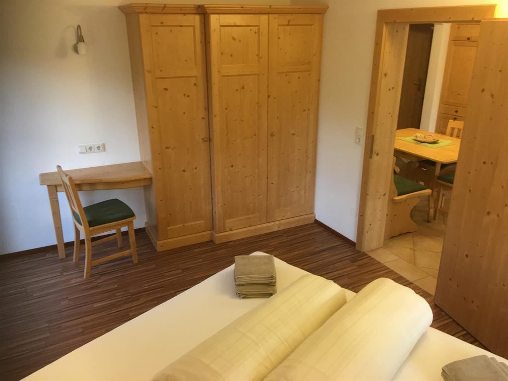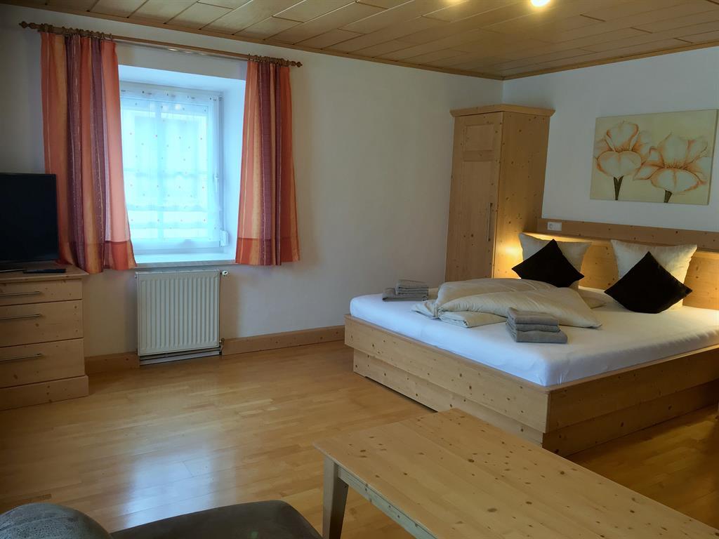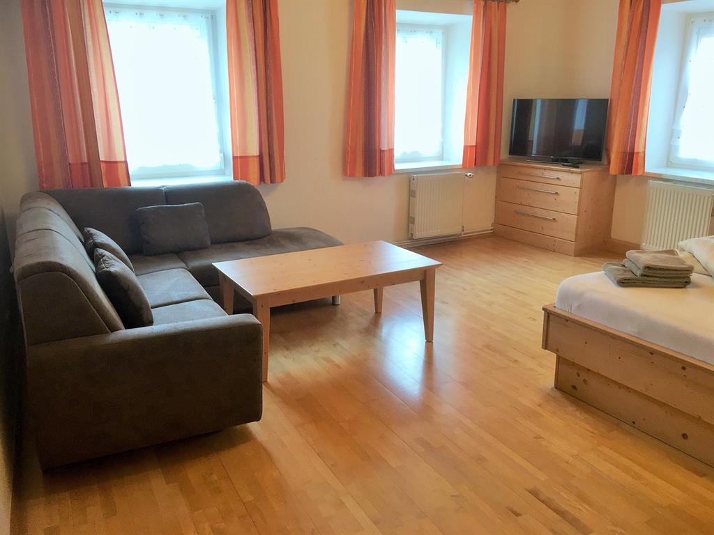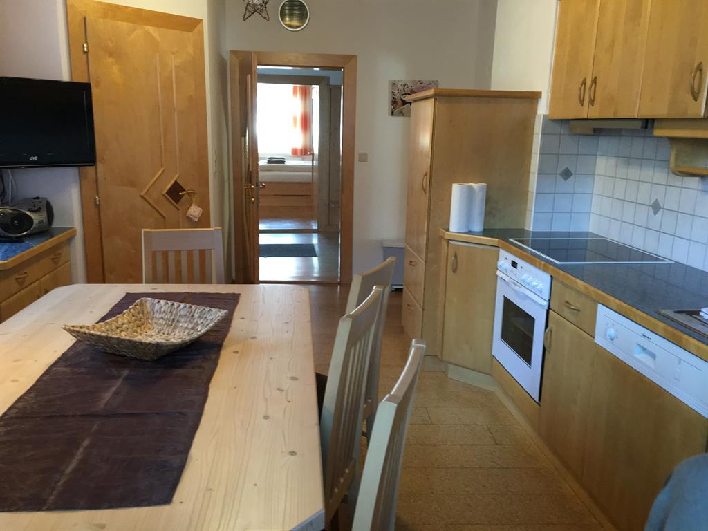 Drei getrennte Schlafzimmer für den erholsamen Schlaf, eines mit einer zusätzlichen Schlafcouch für zwei Personen. Ein wirklich große, einladende und gemütliche Wohnküche mit Balkon, zum gemeinsamen Essen und Kochen in der voll ausgestatteten Küche. Alles mit Vollholzmöbeln ausgestattet.