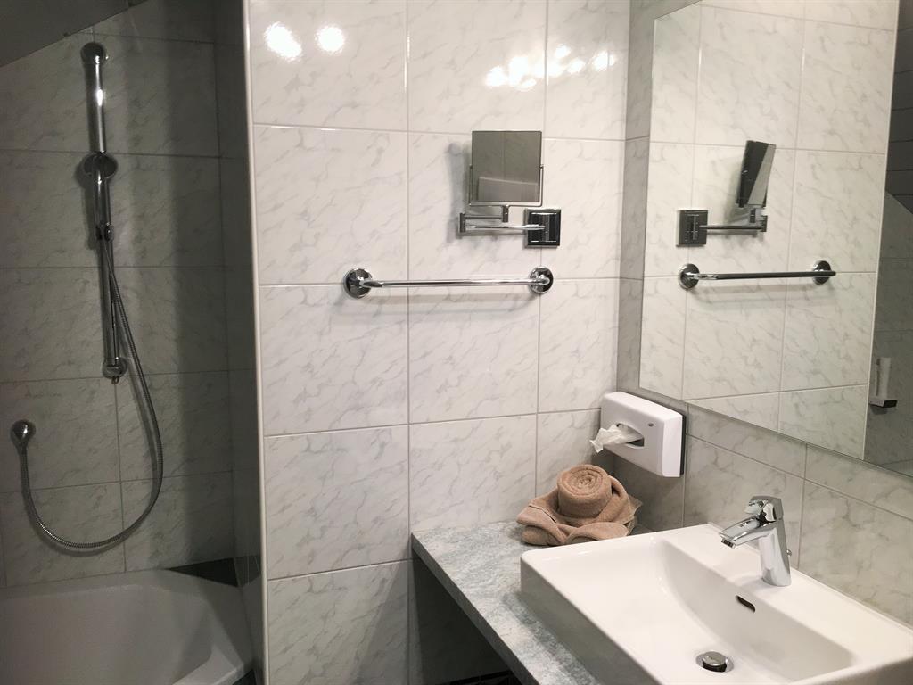Außerdem zwei Bäder, einmal mit Badewanne und WC und einmal mit Dusche und WC.