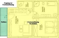Ferienwohnung ist für 1-3 Personen, eigene Haustür, ausgestattet mit Küche, Schlafzimmer, Bad, Fußbodenheizung, Wohnraumlüftung, Klimaanlage und Balkon.