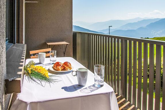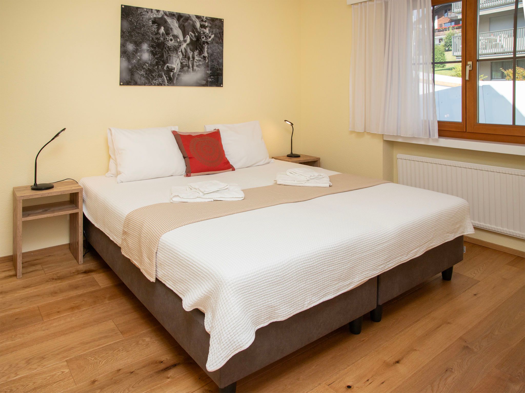 La Siala Apt.63, 3-Zimmer-Wohnung 62 m2 im 1. Stock. Komfortabel und gemütlich eingerichtet: Wohn-/Esszimmer mit Kabel-TV (Flachbildschirm). Ausgang zum Balkon. 1 Doppelzimmer. 1 Zimmer mit 2 Betten und 2 Ausziehbetten. Offene Küche (Backofen, Geschirrspüler, 4 Glaskeramikplatten, Toaster, Wasserkocher, Tiefkühler, elektrische Kaffeemaschine, Kapseln für die Kaffeemaschine (Nespresso) extra, Dampfgarer, Racletteofen, Fondue Set (Käse)). 2 Duschen/WC. Parkettboden. Balkon 8 m2, Südlage. Balkonmöbel. Schöne Sicht auf die Berge, das Tal und die Landschaft. Zur Verfügung: Haartrockner. Internet (WLAN, gratis). Parkplatz Nr. 12, Garage beim Haus. Bitte beachten: Nichtraucher-Unterkunft.