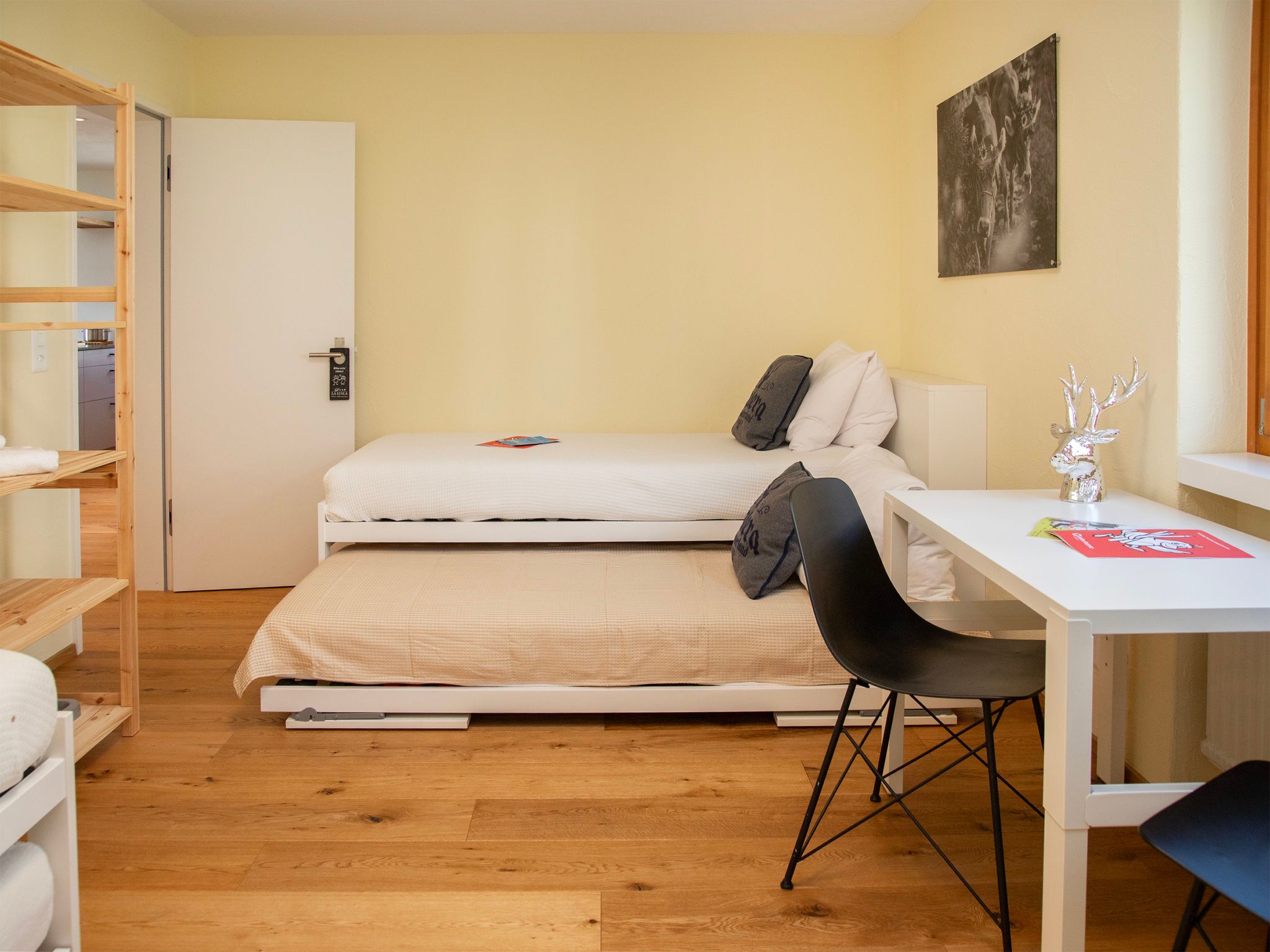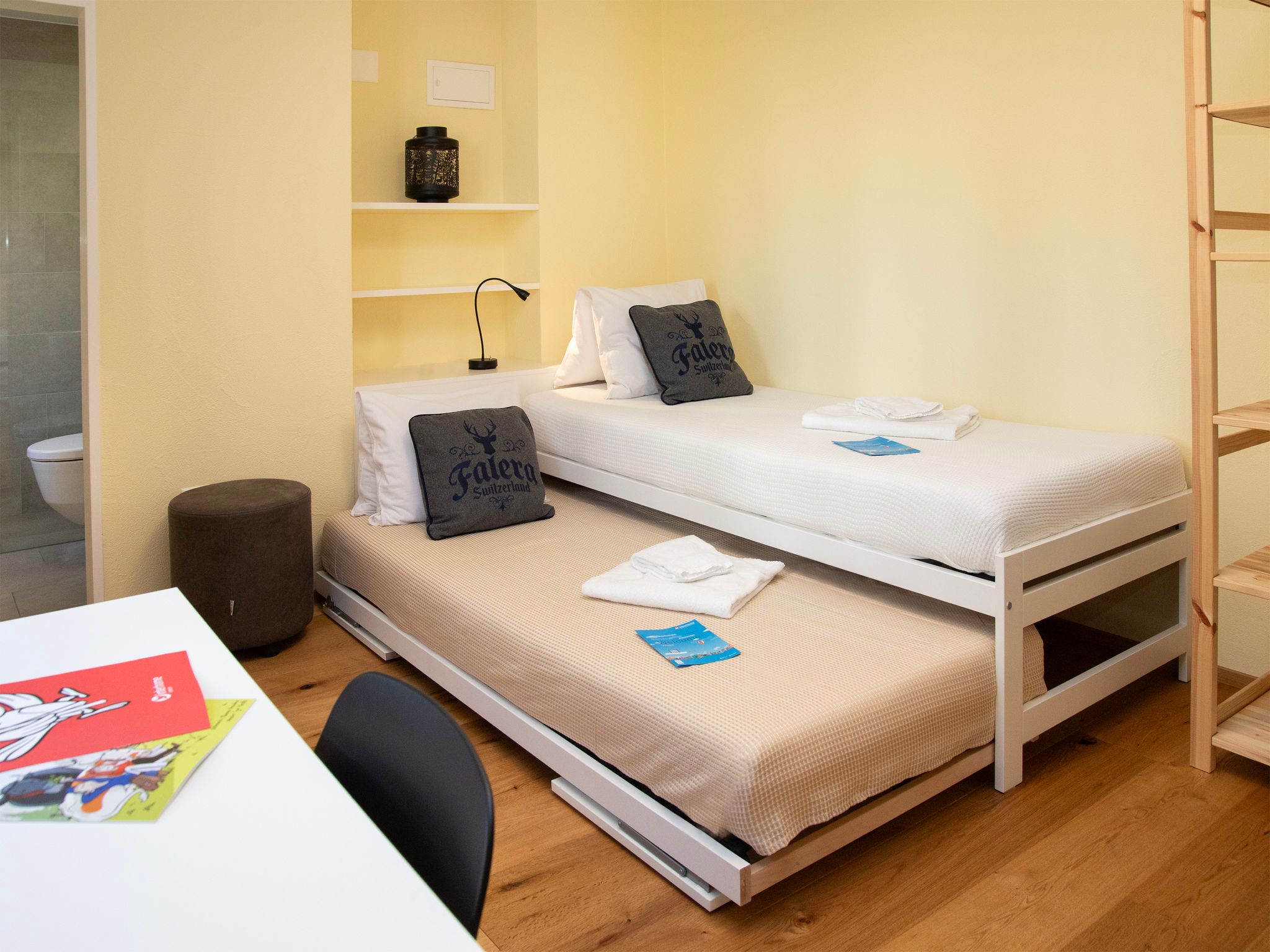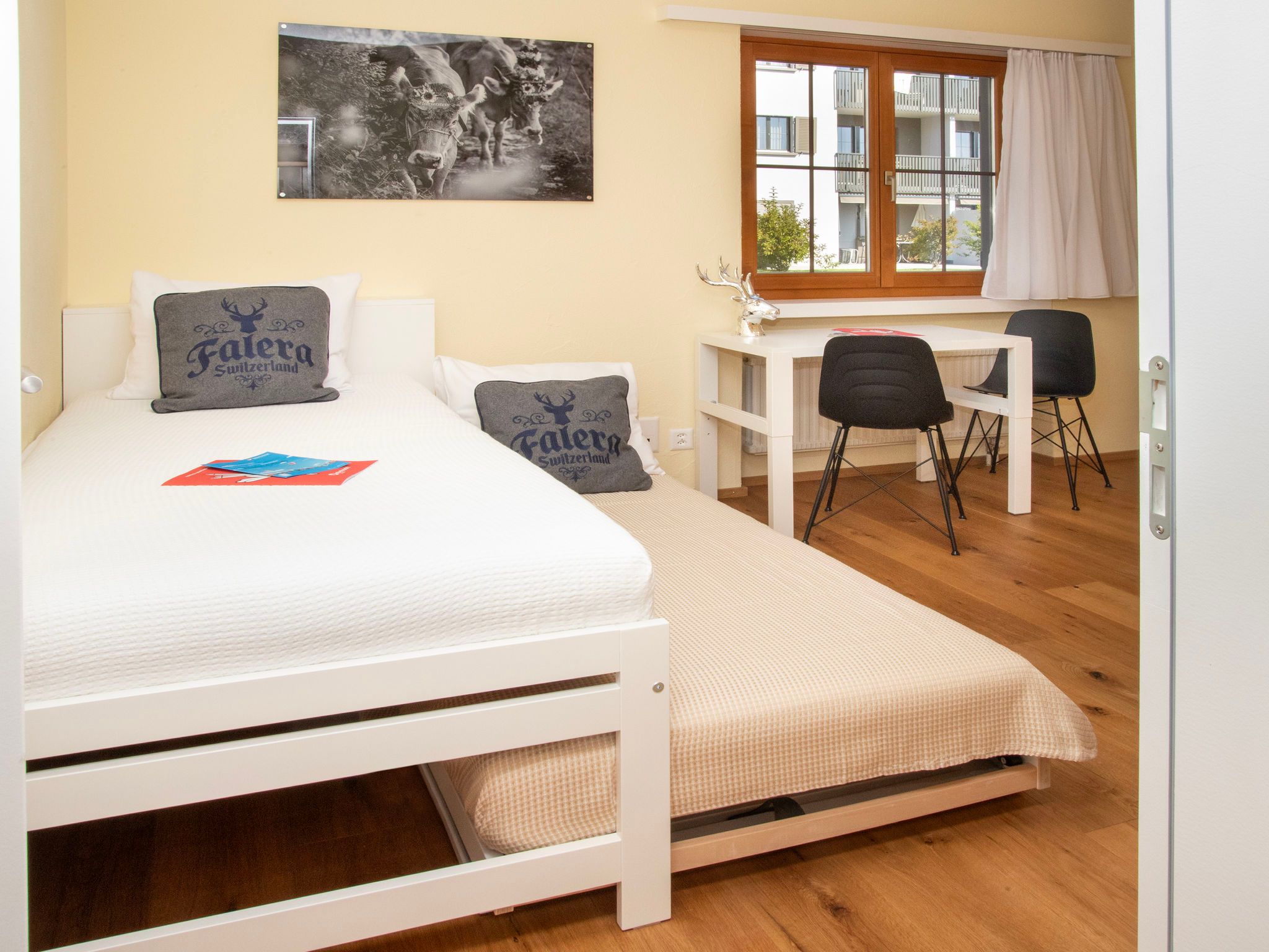 Falera 2 km von Laax: Kinderfreundliche, komfortable Residenz La Siala, 1'200 m.ü.M., renoviert im Jahre 2024. Am Ortsrand, ruhige, sonnige Lage, 900 m vom Skigebiet, Richtung Süden. Zur Mitbenutzung: Grundstück, Liegewiese, Hallenbad (saisonale Verfügbarkeit: 01.Jul. - 15.Okt. und z. - 31.Mar.). Im Hause: Empfang, Sauna im Winter inklusive, Tischtennis, Spielzimmer, Tischfussball, Fahrstuhl, Einstellraum für Fahrräder, Skiraum, Zentralheizung, Waschmaschine, Wäschetrockner (zur Mitbenutzung, extra), Trockenraum. Zufahrt bis zum Haus (Bergstrasse). Im Winter bitte Schneeketten mitbringen, im Winter 4x4 empfohlen. Öffentliche Parkplätze 50 m extra. E-Ladestation. Lebensmittelgeschäft, Restaurant 500 m, Bushaltestelle Falera, Parcadi 50 m, Hallenbad 2 km, Badesee Laaxer See 2 km. Golfplatz (18 Loch) 6 km, Skilift, Sessellift, Skisportanlagen, Skipisten 900 m, Skibushaltestelle 50 m, Schlittelbahn 900 m, Langlaufloipe 6 km, Eisfeld, Kinderspielplatz 500 m. Nahe gelegene Sehenswürdigkeiten: Ruinalta/Rheinschlucht 6 km, Baumwipfelpfad Laax 2 km. Bekannte Skigebiete sind gut erreichbar: Weisse Arena Flims/Laax 900 m. Bekannte Seen in der Umgebung sind gut erreichbar: Caumasee 6 km. Wandergebiete: Unesco Welterbe Sardona, Ruinalta/Rheinschlucht, Planetenlehrpfad Falera-Laax-Falera.
