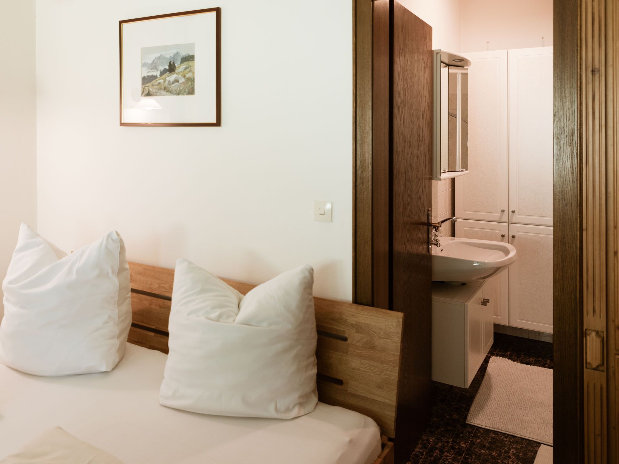 Studio Esche 3, 1-Zimmer-Wohnung 25 m2 im 1. Stock. Schön und gemütlich eingerichtet: Wohn-/Schlafzimmer mit 1 Doppelbett (180 cm, Länge 200 cm), Bad/WC und Sat-TV (Flachbildschirm). Offene Küche (2 Kochplatten, Toaster, Wasserkocher, Mikrowelle, elektrische Kaffeemaschine). Balkon. Balkonmöbel. Schöne Panoramasicht auf die Berge. Zur Verfügung: Internet (WLAN, gratis). Bitte beachten: Nichtraucher-Unterkunft. Maximal 1 Haustier/Hund erlaubt. Rauchmelder.