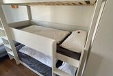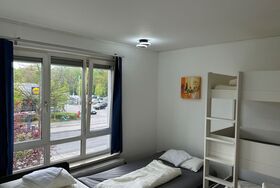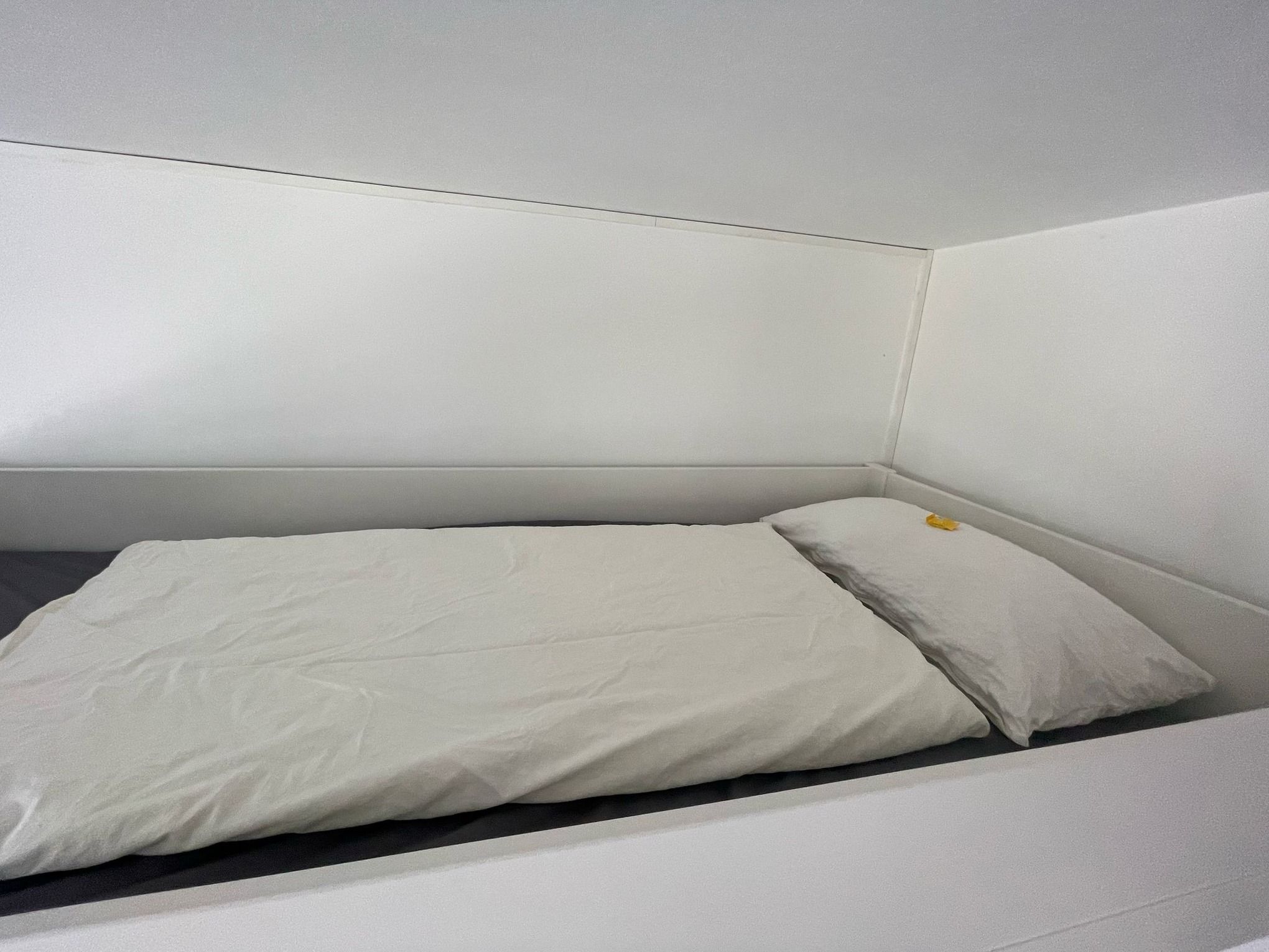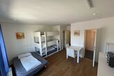 Als Schlafplätze stehen ein 3-er Etagenbett , 1 Einzelzustellbett und eine bequeme Federkern-Schlaf-Couch zur Verfügung