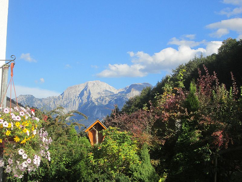 Ruhige Ferienwohnung mit Blick ins Tal auf die Ramsauer Kirche und die Bergwelt. Langer Balkon, komfortable Ausstattung. Park ähnlicher Garten mit Liegen, uneinsehbar und idyllisch. Mediterrane Stilelemente. Parkplatz. Freies W-LAN.