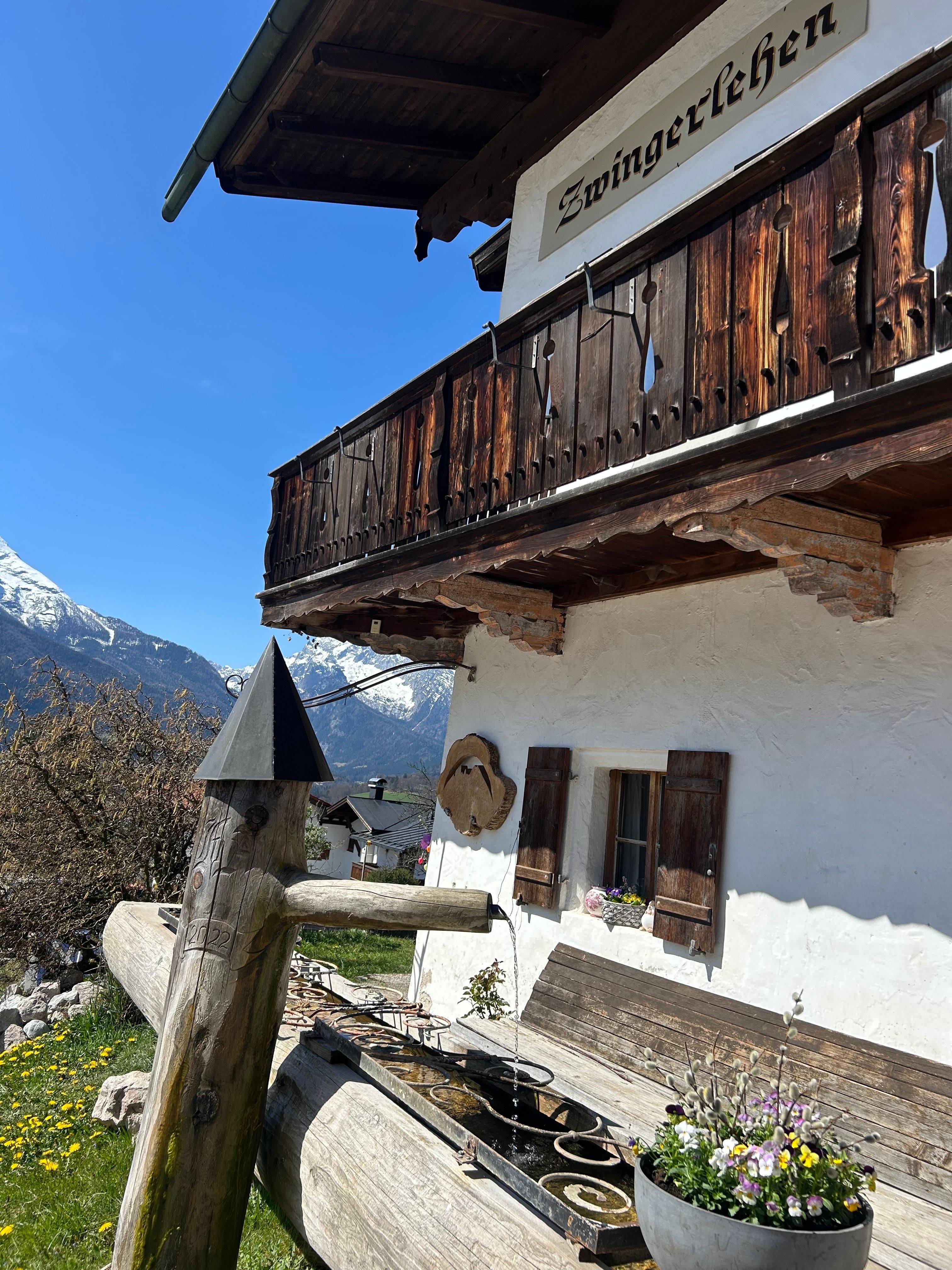Diese gemütliche, ebenerdige Wohnung bietet einen unvergleichlichen Ausblick – vom Kehlstein bis zum Hochkalter. Sie verfügt über ein separates Schlafzimmer, eine helle Wohn-Essküche sowie ein modernes Badezimmer mit Dusche und WC. Eine kleine Sitzgelegenheit im Freien lädt dazu ein, nach der Bergtour zu entspannen und den Blick auf die umliegende Bergwelt zu genießen. Ideal für alle, die Komfort, Natur und Ruhe schätzen.