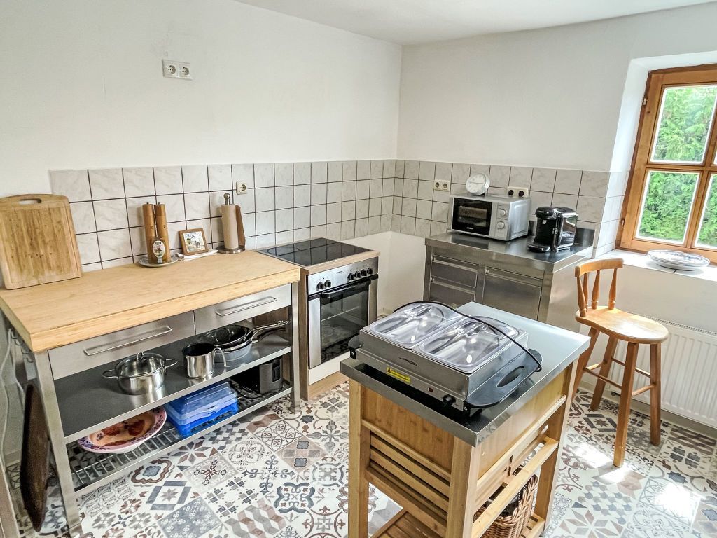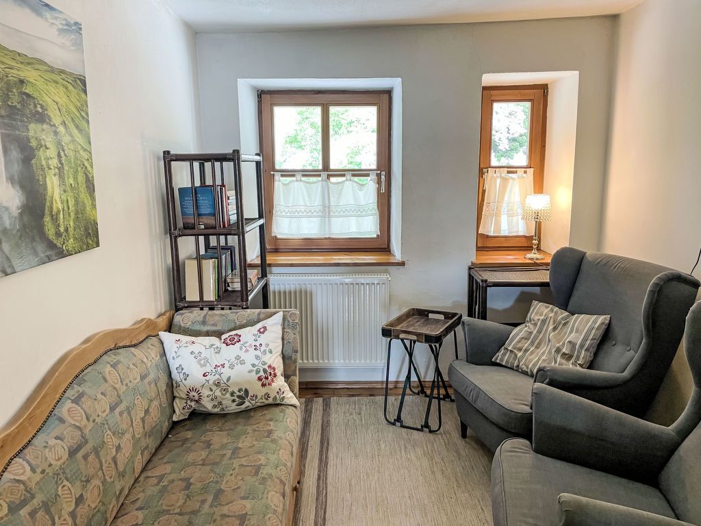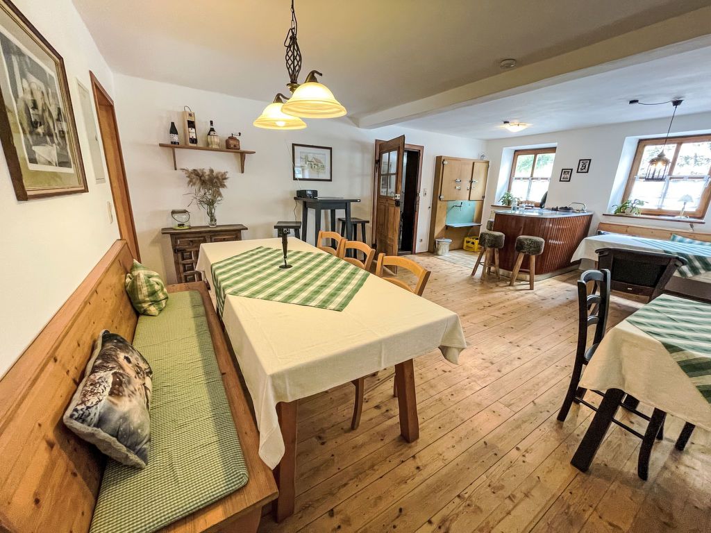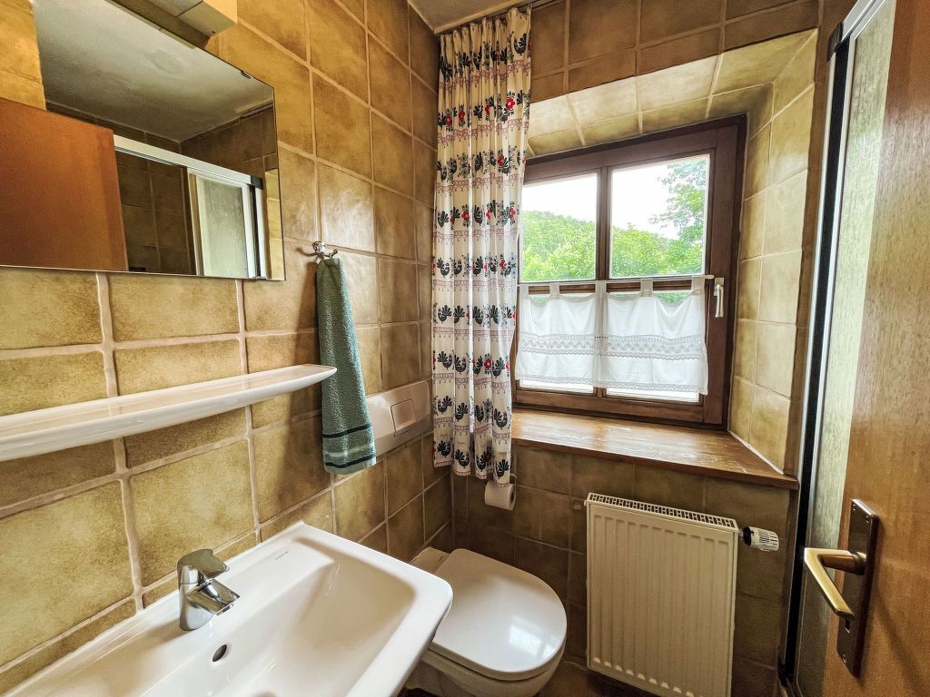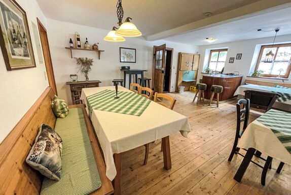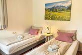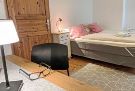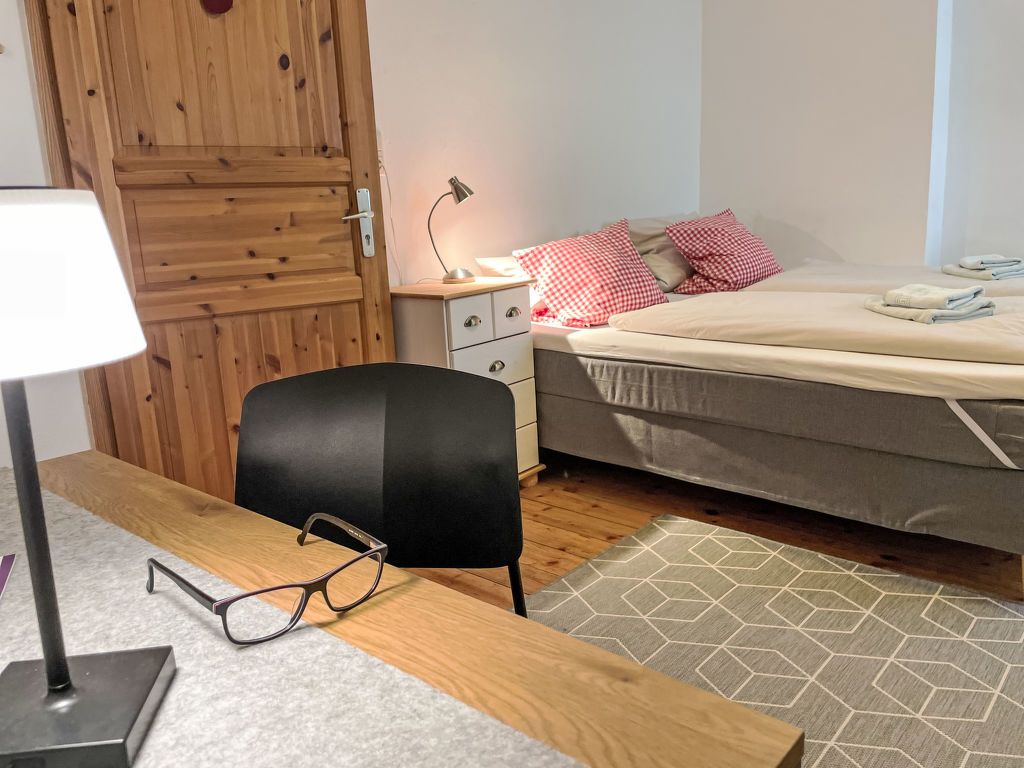 12-Zimmer-Haus 400 m2 auf 2 Stockwerken. Gemütlich eingerichtet: grosses Wohn-/Esszimmer mit Schwedenofen und Sat-TV (Flachbildschirm). 1 Zimmer mit 1 Doppelbett (180 cm, Länge 200 cm), Dusche/WC und Sat-TV (Flachbildschirm). 1 Zimmer mit 2 Betten (90 cm, Länge 200 cm), Dusche/WC und Sat-TV (Flachbildschirm). Küche (Backofen, Geschirrspüler, 4 Glaskeramikplatten, Toaster, Wasserkocher, Mikrowelle, elektrische Kaffeemaschine). 2 sep. WC's. Obergeschoss: (steile Treppe) Wohnzimmer mit Sat-TV (Flachbildschirm). 2 Zimmer, jedes Zimmer mit 1 Doppelbett (180 cm, Länge 200 cm), Dusche/WC und Sat-TV (Flachbildschirm). 1 Zimmer mit 2 Betten (90 cm, Länge 200 cm), Dusche/WC und Sat-TV (Flachbildschirm). 5 Zimmer, jedes Zimmer mit 1 Bett (90 cm, Länge 200 cm), Dusche/WC und Sat-TV (Flachbildschirm). Heizung. Holzdielenboden. Terrasse. Terrassenmöbel, Gartengrill (mobil). Zur Verfügung: Waschmaschine (extra). Wäschetrockner (extra). Internet (WLAN, gratis). Parkplatz (7 Autos) beim Haus. Bitte beachten: Nichtraucher-Haus. Maximal 3 Haustiere/Hunde erlaubt. Rauchmelder, Feuerlöscher.