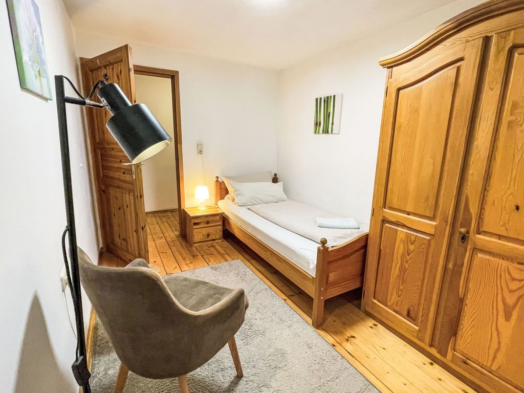 Frichlkofen 3 km von Dingolfing: Freistehendes Einfamilienhaus Nachtigall. Im Ortsteil Frichlkofen, 3 km vom Zentrum von Dingolfing, am Ortsrand, 17 km vom Zentrum von Landau an der Isar. Zur Alleinbenutzung: Grundstück 700 m2, Wiese. Kinderspielplatz (Rutschbahn, Schaukel, Sandkasten). Im Hause: Zentralheizung. Parkplatz beim Haus. Einkaufsgeschäft 3 km, Supermarkt 3 km, Bushaltestelle Frichlkofen 100 m, Bahnstation Dingolfing 4.5 km, Freibad 3 km. Nahe gelegene Sehenswürdigkeiten: Erlebnisbad Caprima 3 km, München 100 km, Therme Erding 80 km, Passau 76 km.