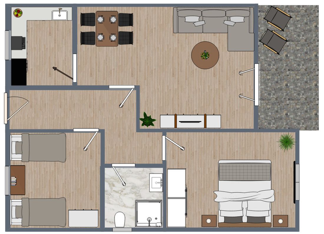 Haustyp: Kategorie Komfort, für max. 4 Pers., ca. 64 qm Wfl.