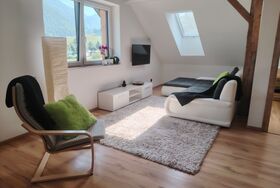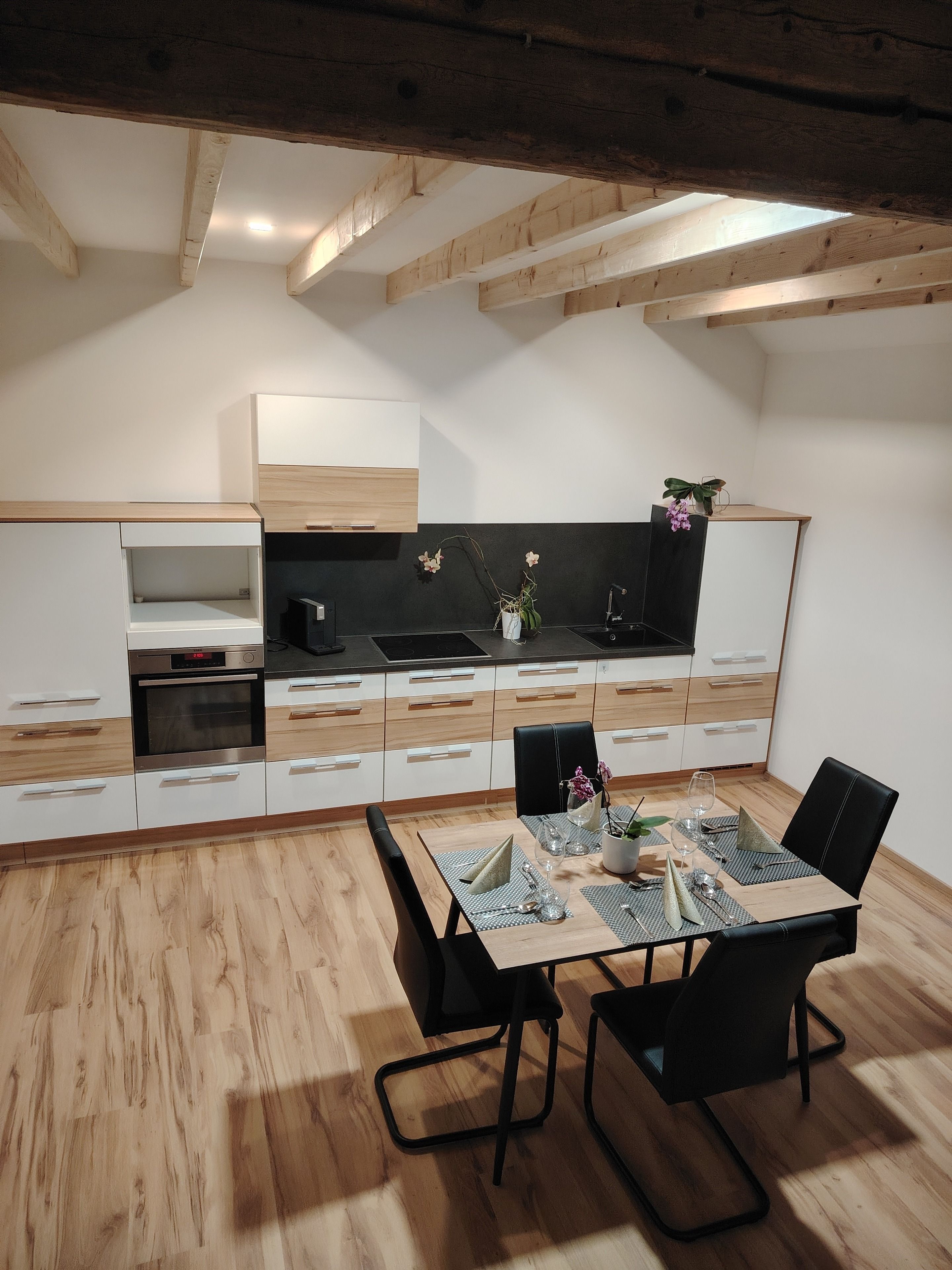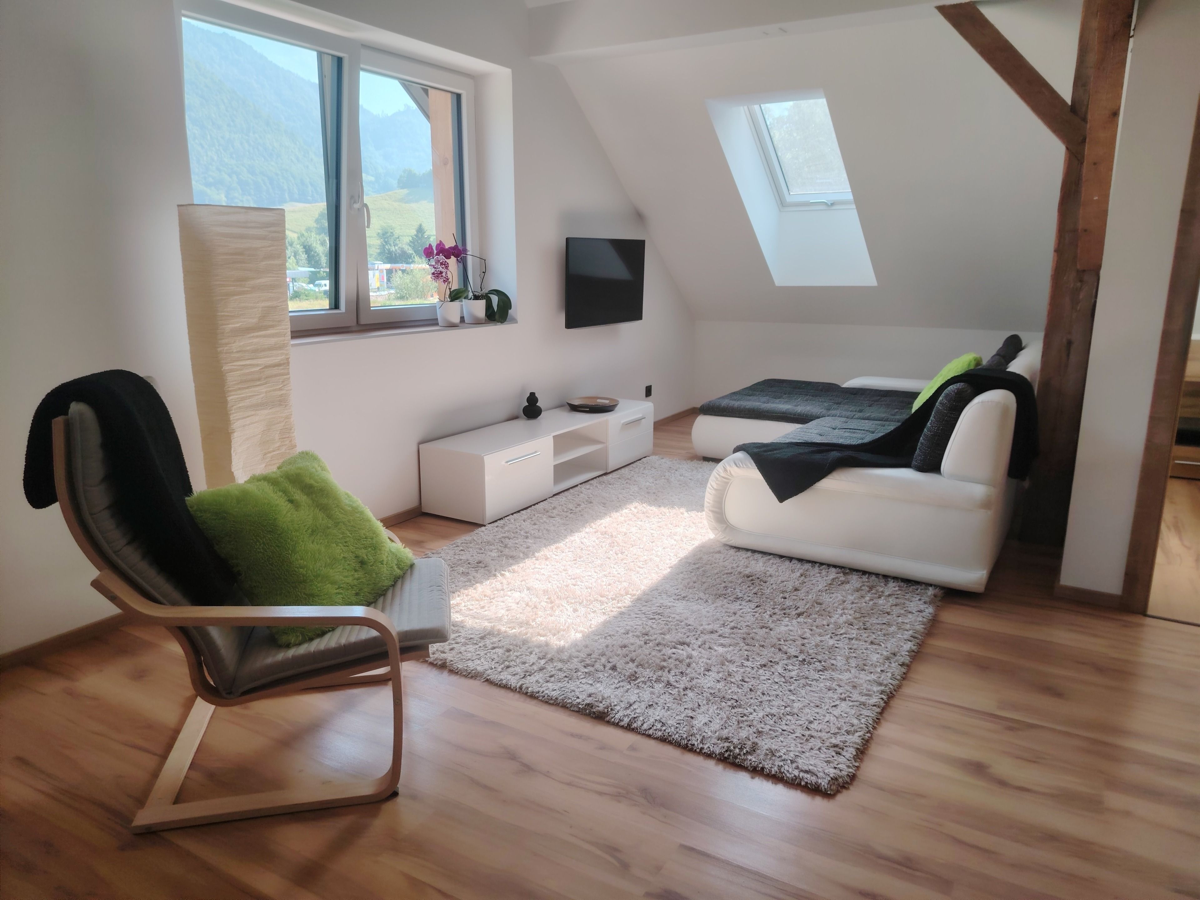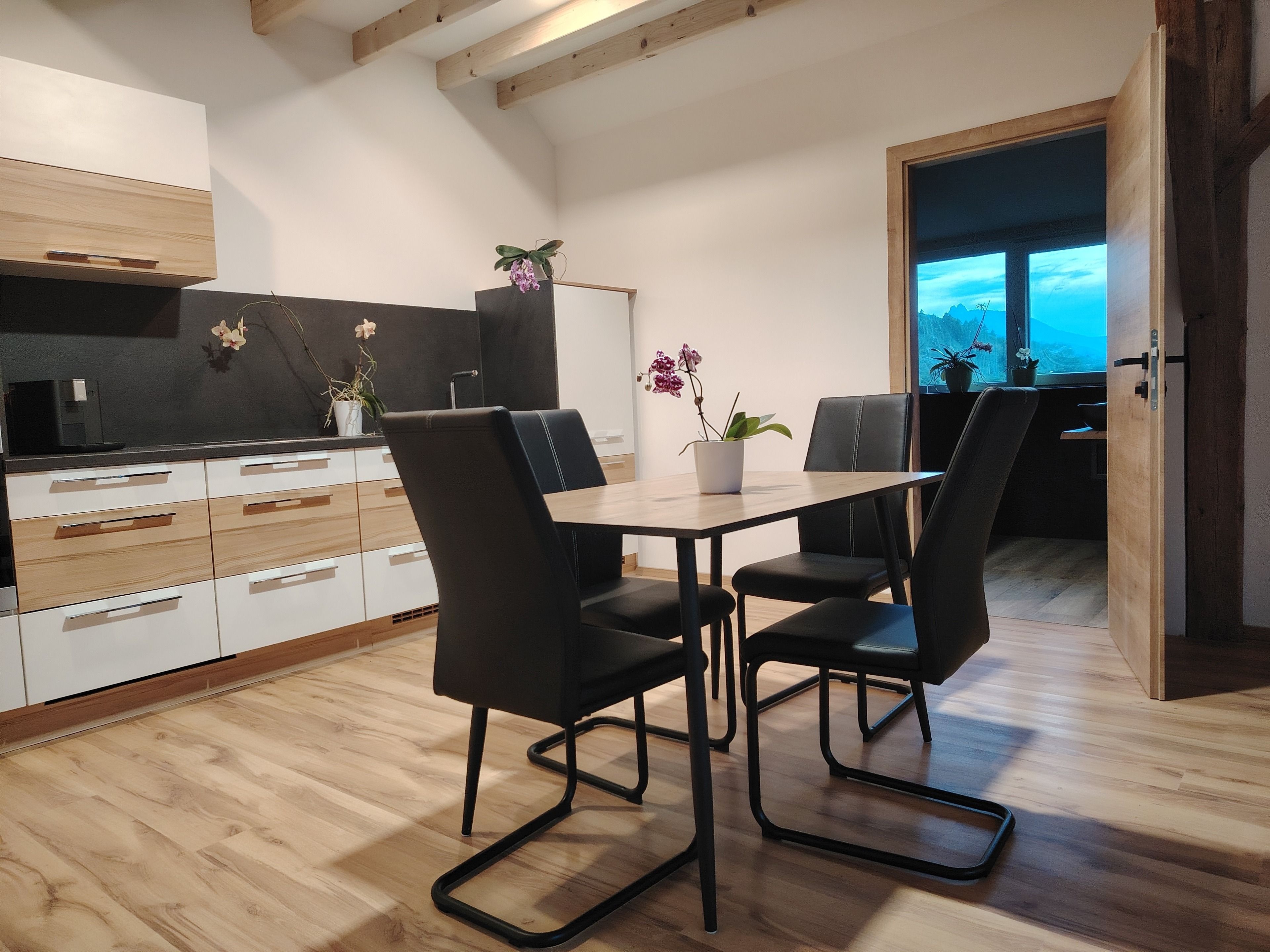 Neu renovierte Wohnung in einem alten Bauernhaus, loftartig, modern eingerichtet, mit wunderschönem Ausblick zur Berg Zimnitz und Jainzen.