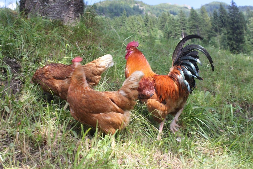 Im Stall wohnen neben unseren Milchkühen und Kälbern auch Schweine, Katzen, Hasen, Hühner ,unser Hahn und unsere Hündin Chiara. Wenn in den Sommermonaten (Mitte Juni bis Anfang September) die Kühe auf unserer Alm sind, laden wir Sie gerne ein dorthin ein (Fußmarsch ca. 2 Stunden).