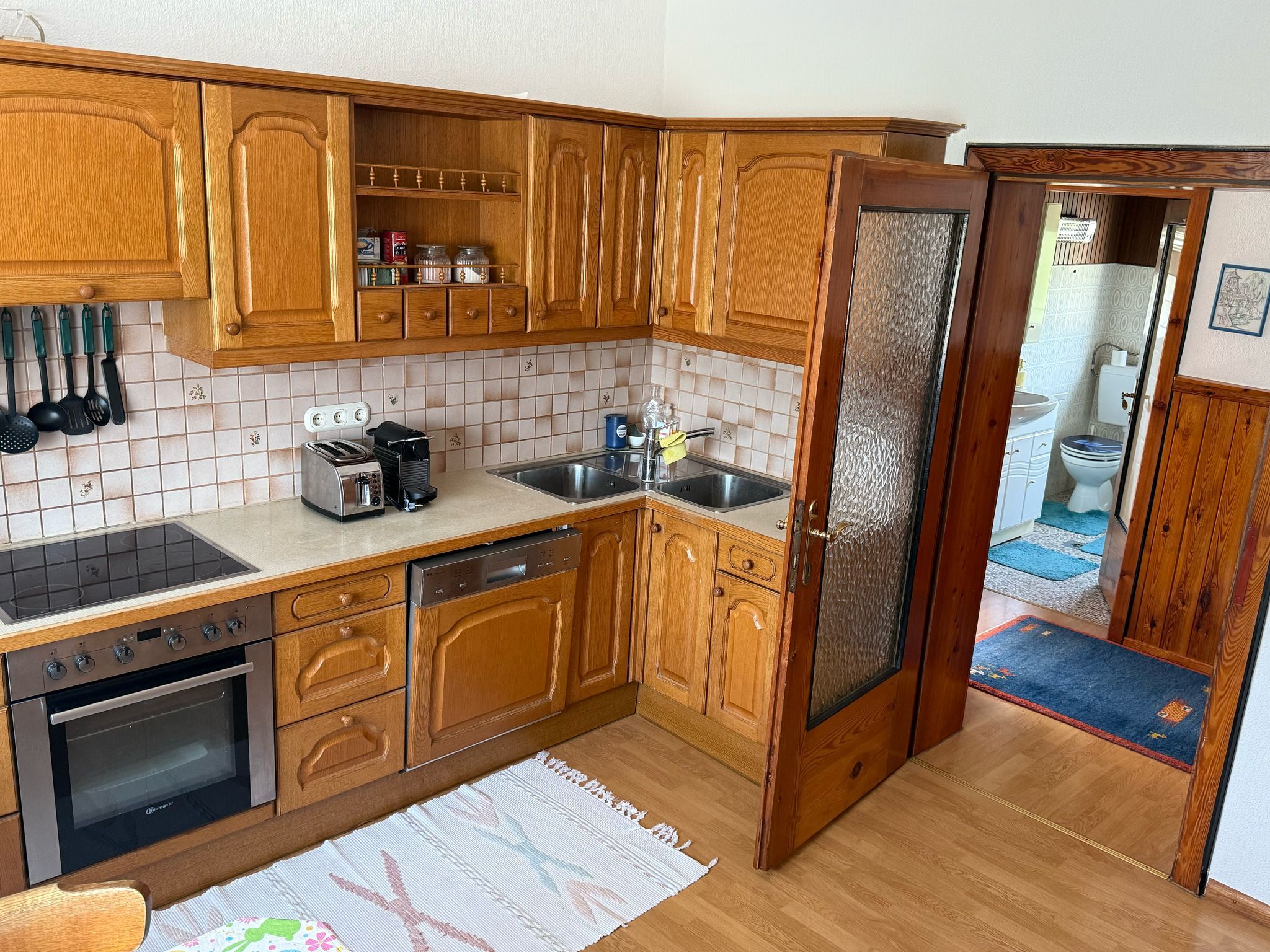 Die voll ausgestattete Küche lädt zum gemeinsamen Kochen ein, und auf der sonnigen Terrasse können Sie den Tag entspannt ausklingen lassen.