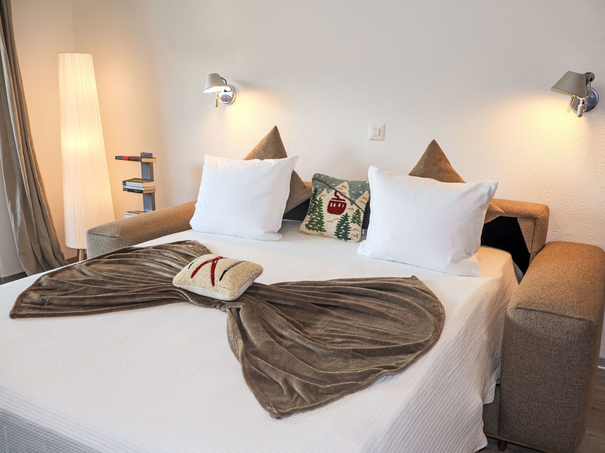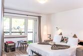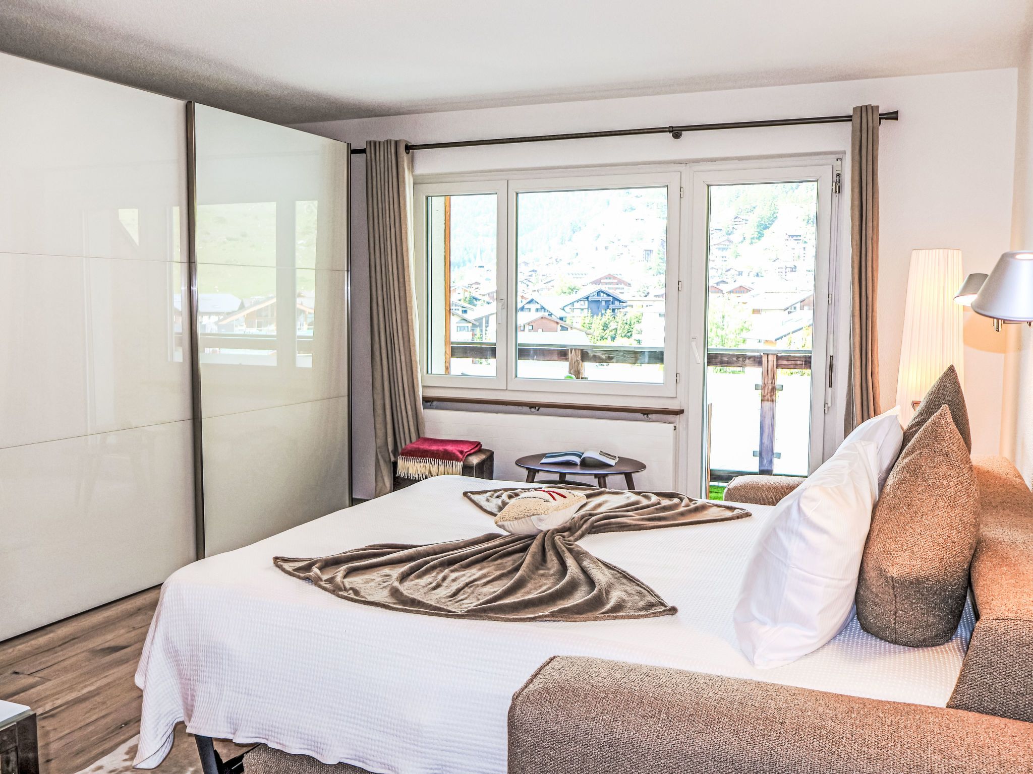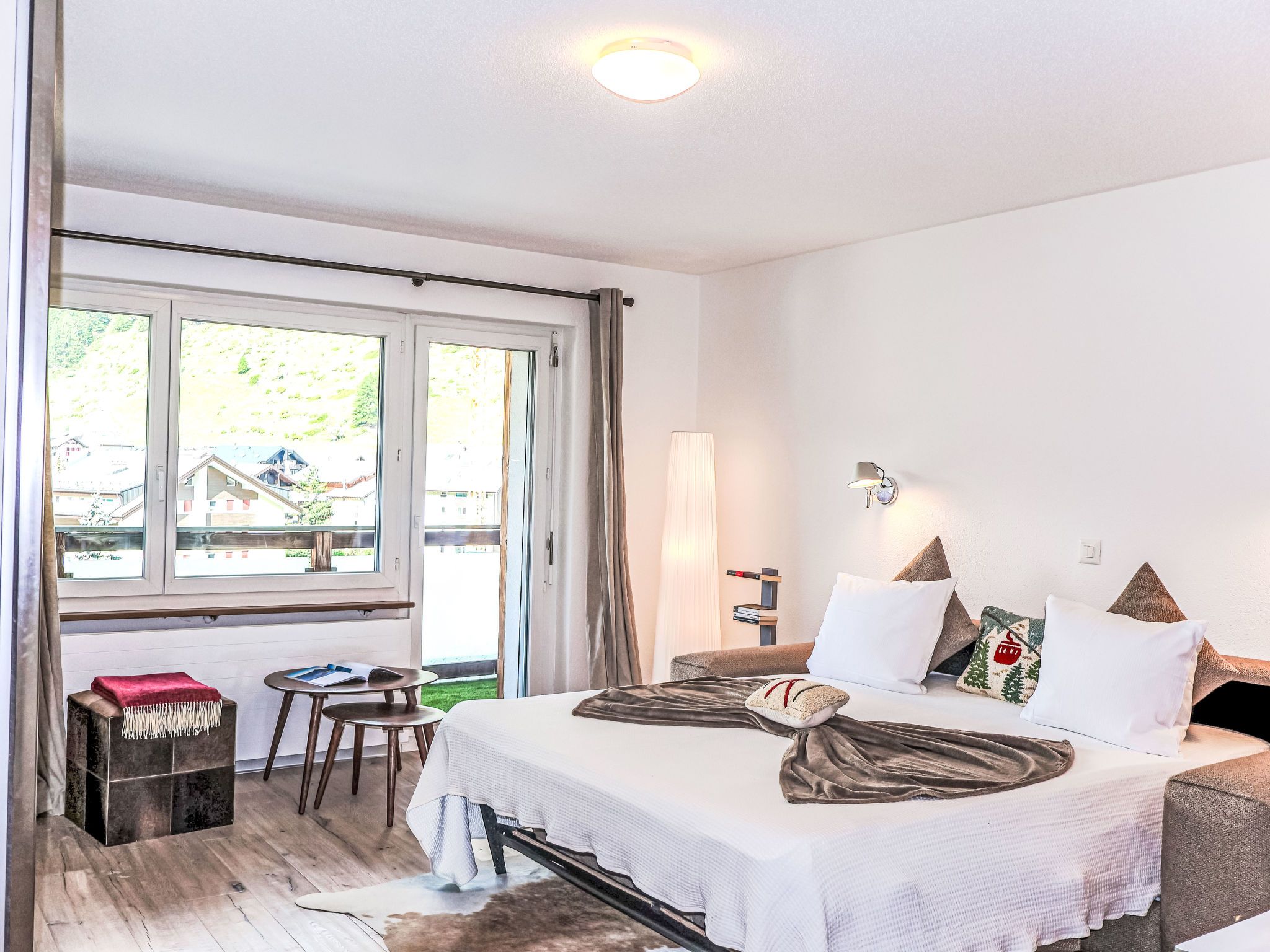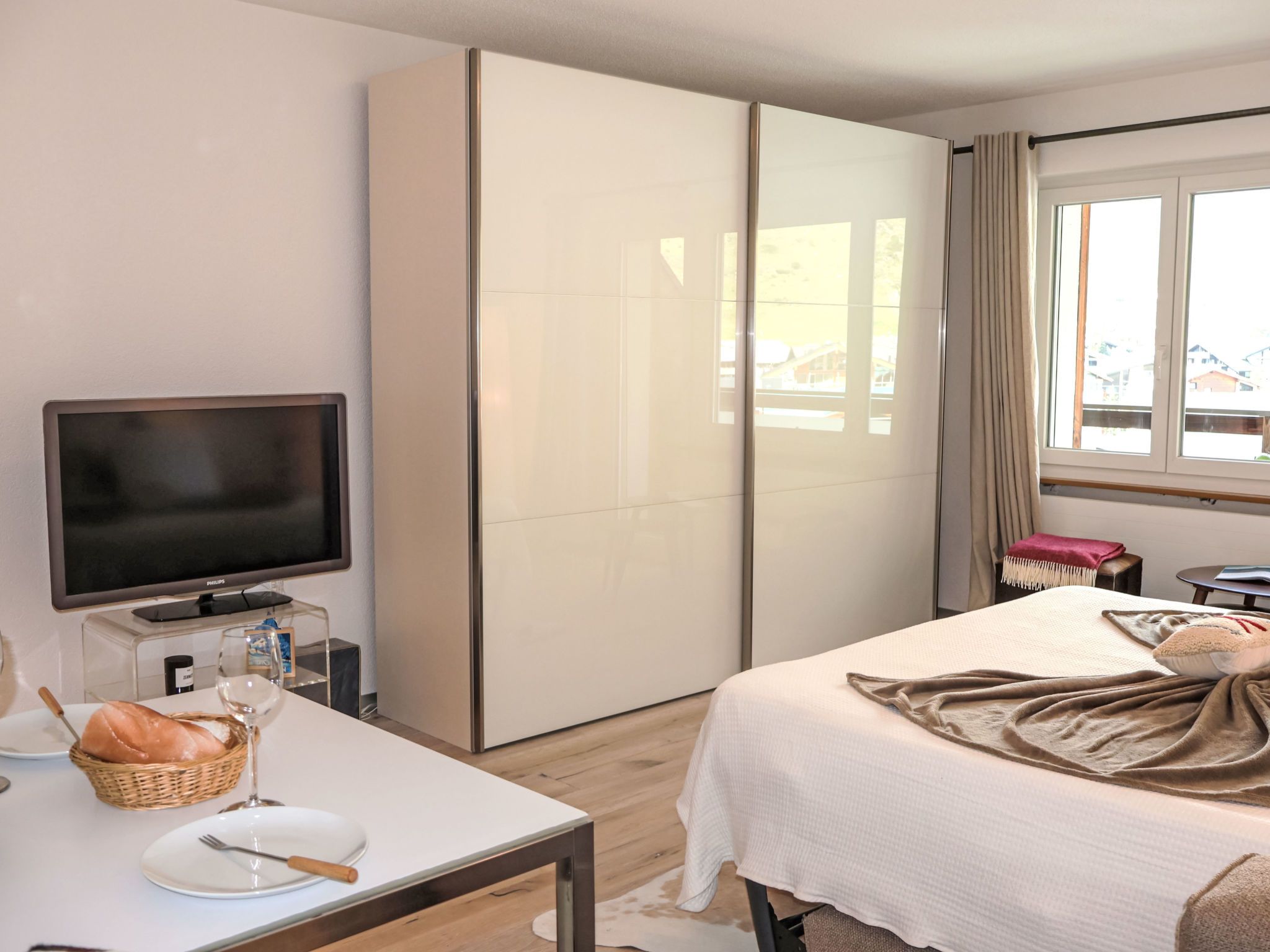 Siesta, 1-Zimmer-Studio 30 m2 im 2. Stock. Hell, renoviert im Jahre 2024, schön und gemütlich eingerichtet: offenes Wohn-/Schlafzimmer mit 1 Doppeldiwanbett (160 cm, Länge 200 cm). Ausgang zum Balkon. Offene Küche (Backofen, 4 Glaskeramikplatten, Toaster, Wasserkocher, Tiefkühler, elektrische Kaffeemaschine) mit Esstisch. Dusche/WC. Parkettboden. Balkon. Balkonmöbel. Sehr schöne Sicht auf die Berge und das Matterhorn. Zur Verfügung: Haartrockner. Internet (WLAN, gratis). Bitte beachten: Nichtraucher-Unterkunft.