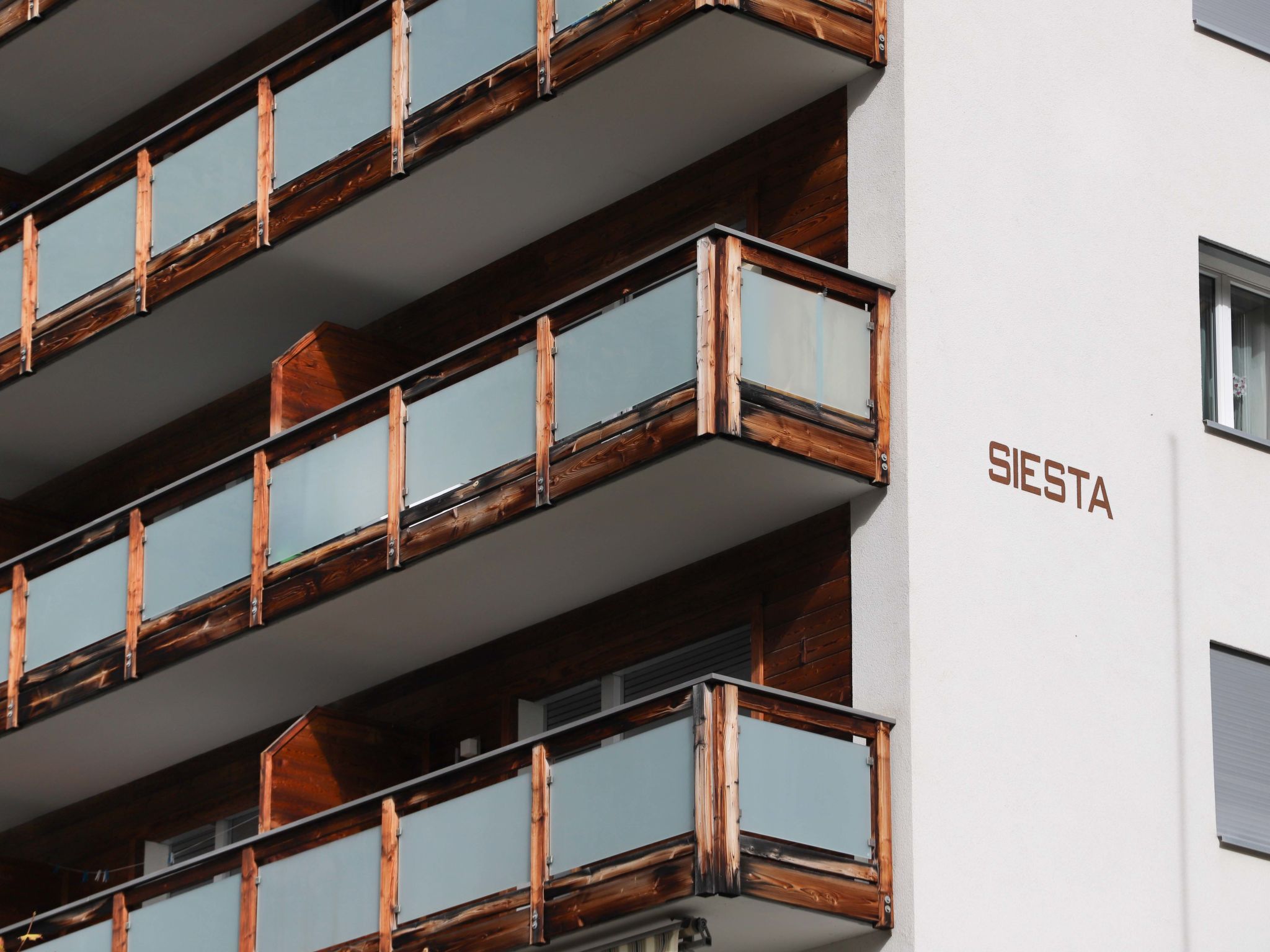 Grosses, schönes Mehrfamilienhaus Siesta, auf 6 Stockwerken, renoviert. 700 m vom Zentrum von Zermatt, ruhige, sonnige Lage. Im Hause: Fahrstuhl, Skiraum, Zentralheizung. Supermarkt 650 m, Restaurant 300 m, Bäckerei 650 m, Fahrradverleih 300 m, Zentrum zu Fuss in 10 Minuten erreichbar, Bushaltestelle Wiestibrücke 300 m, Bahnstation Bahnhof Zermatt 650 m. Bergeisenbahn 550 m, Skiverleih 300 m, Skibushaltestelle 300 m. Die Schlüsselübergabe findet bei der Agentur Interhome in Zermatt statt.