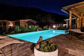 Die heimelige Atmosphäre wird durch den schönen Garten und die  Liegewiese ergänzt, wo Familien und Paare sich entspannen können.