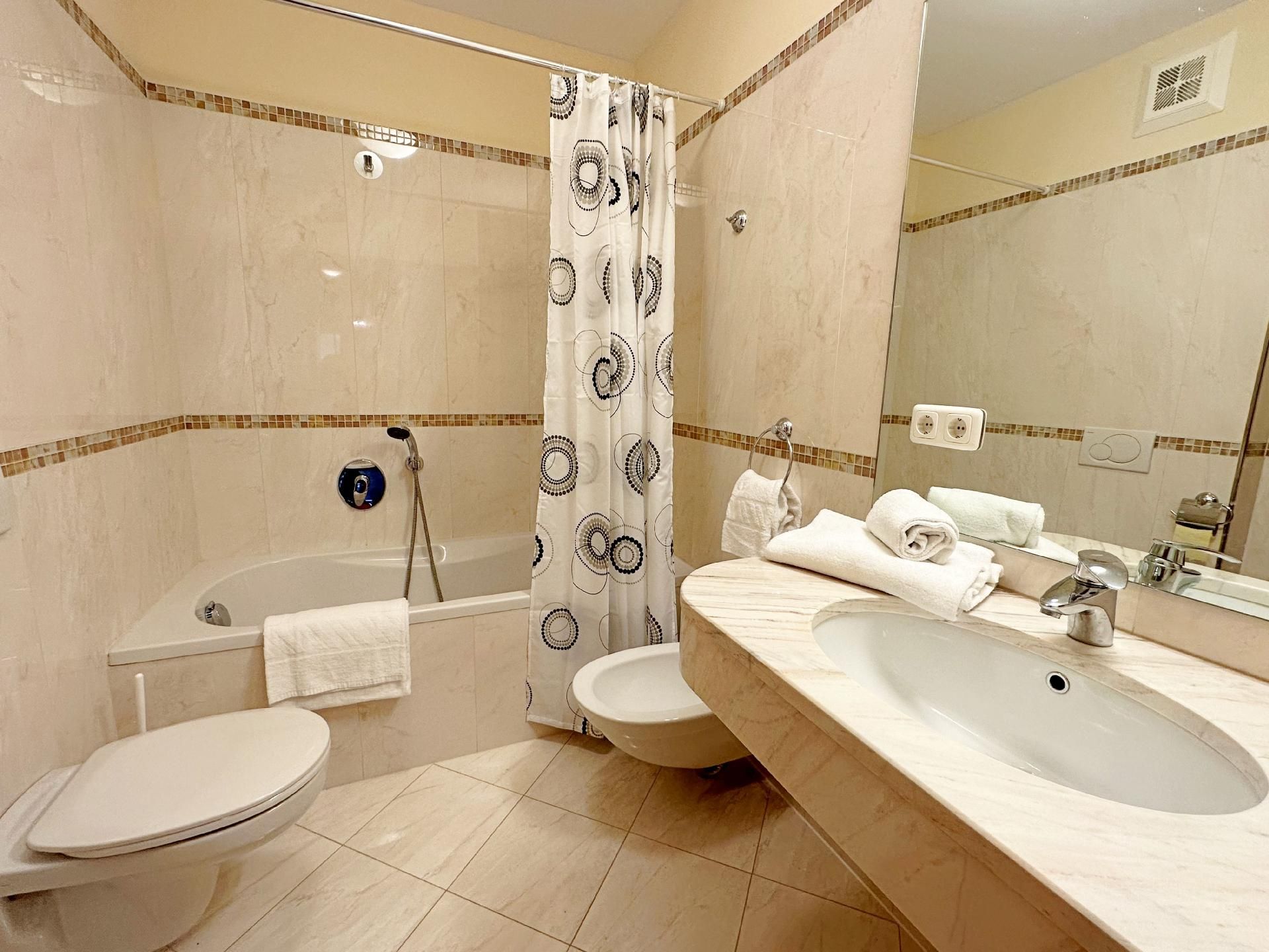 Bad/WC: Badewanne; Dusche; Föhn; Toilette; Toilette; Waschbecken; Waschbecken