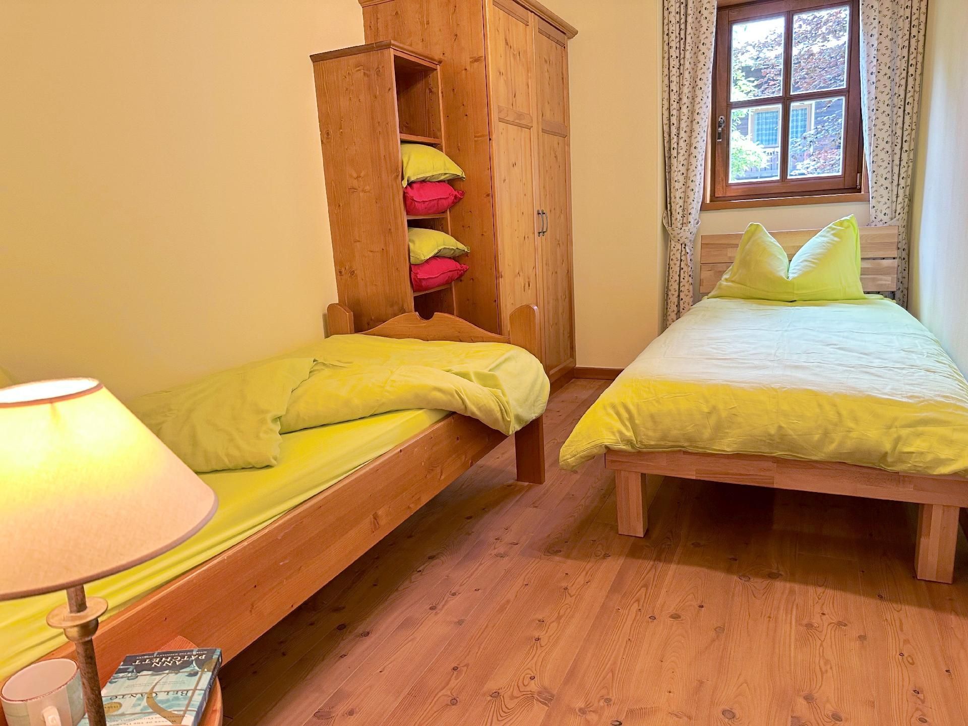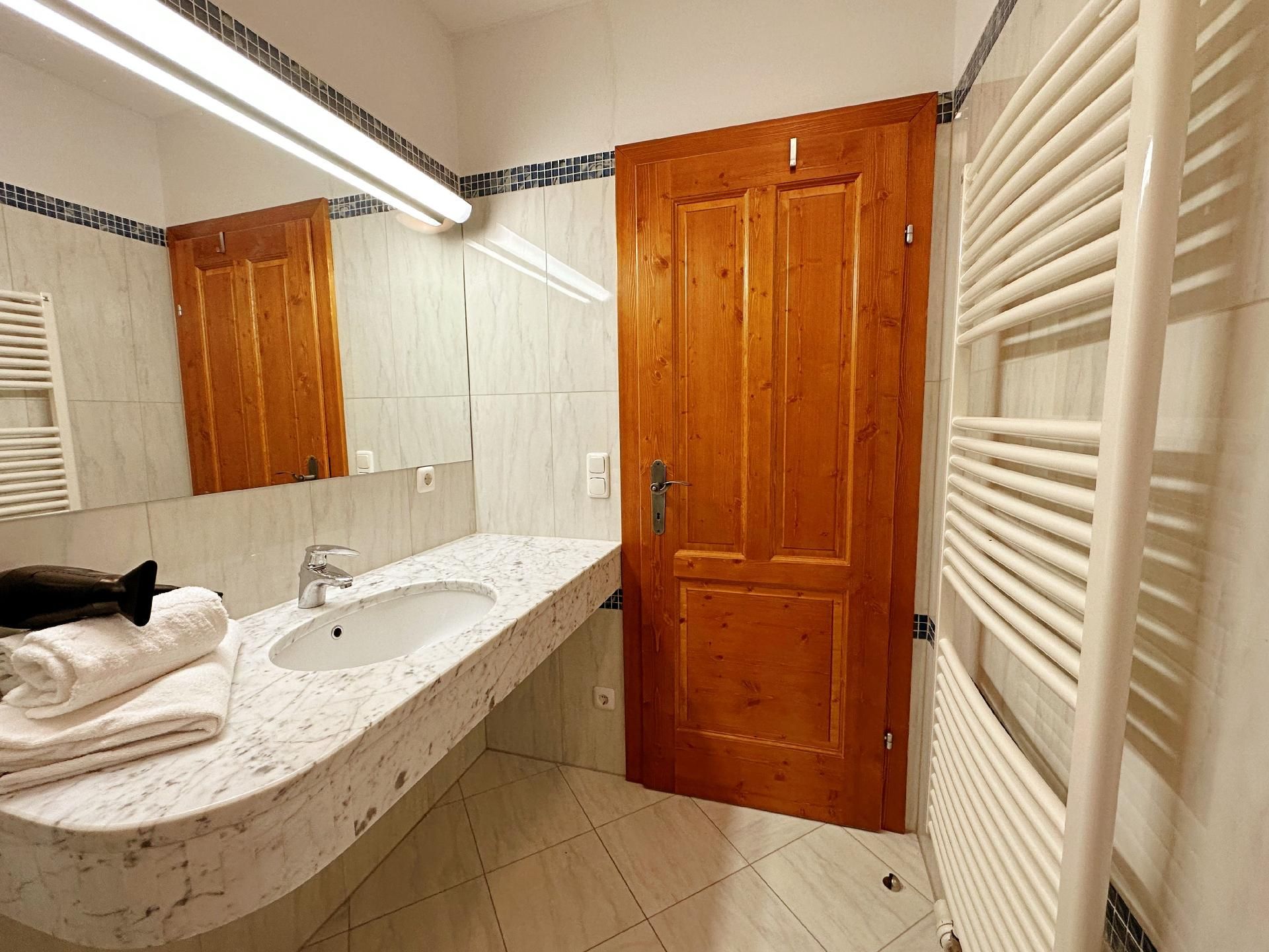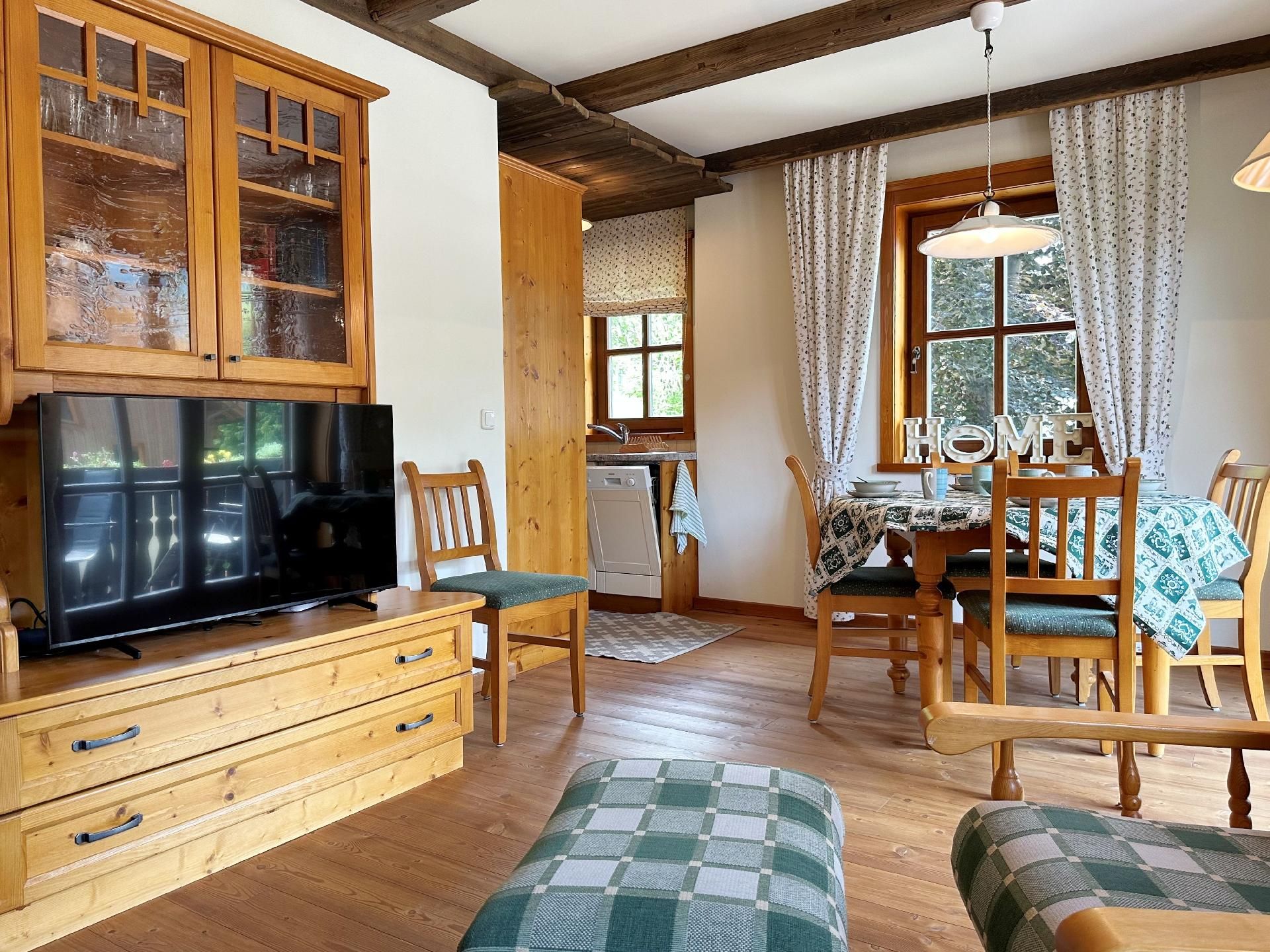 Die Wohnung ist mit zwei Schlafzimmern und zwei Badezimmern ausgestattet, was ausreichend Komfort und Privatsphäre für alle Gäste während ihres Aufenthaltes garantiert. Die Fußbodenheizung in sämtlichen Räumen sorgt zudem für eine angenehme Wärme nach einem erlebnisreichen Tag in der Winterlandschaft.