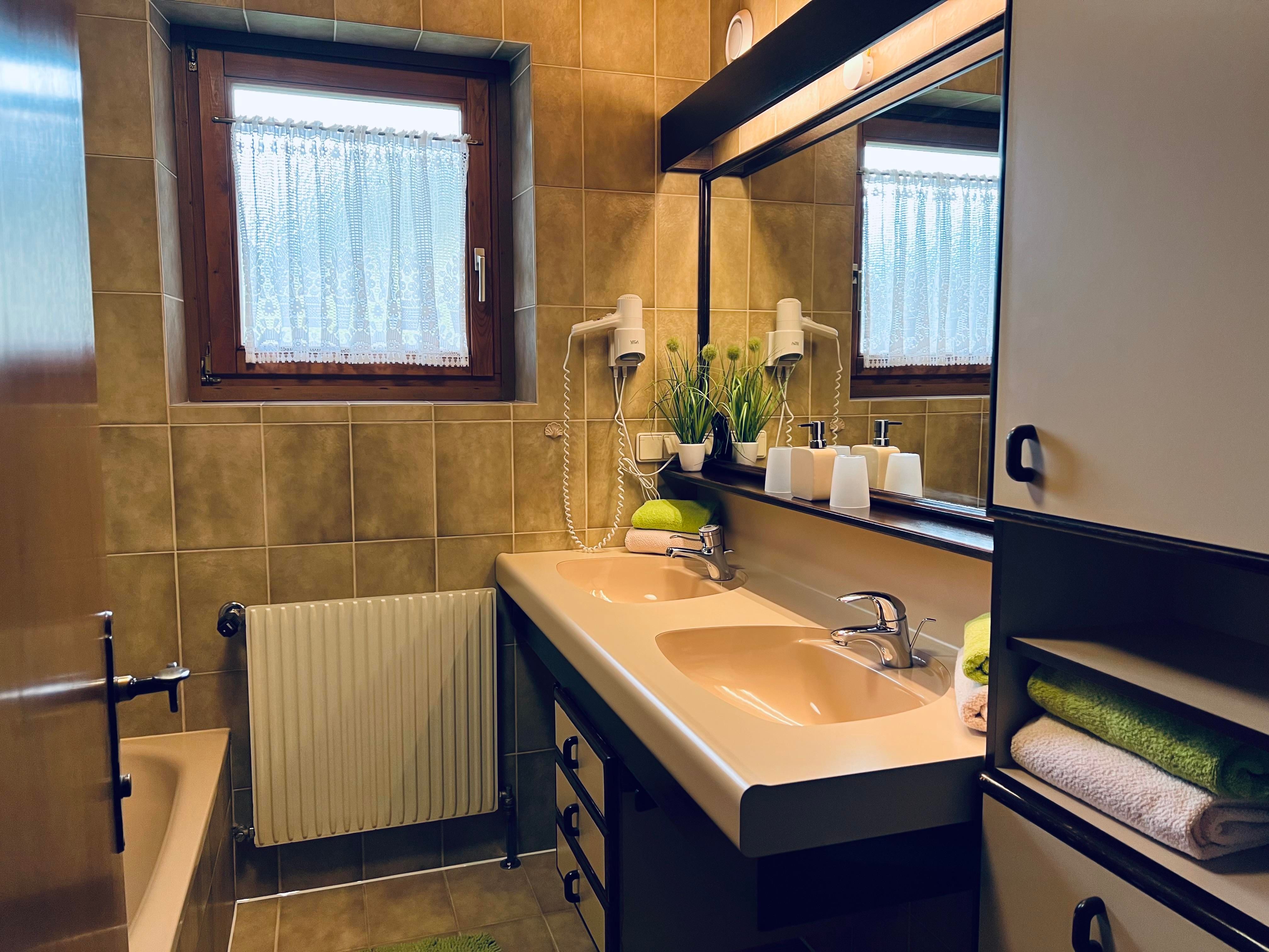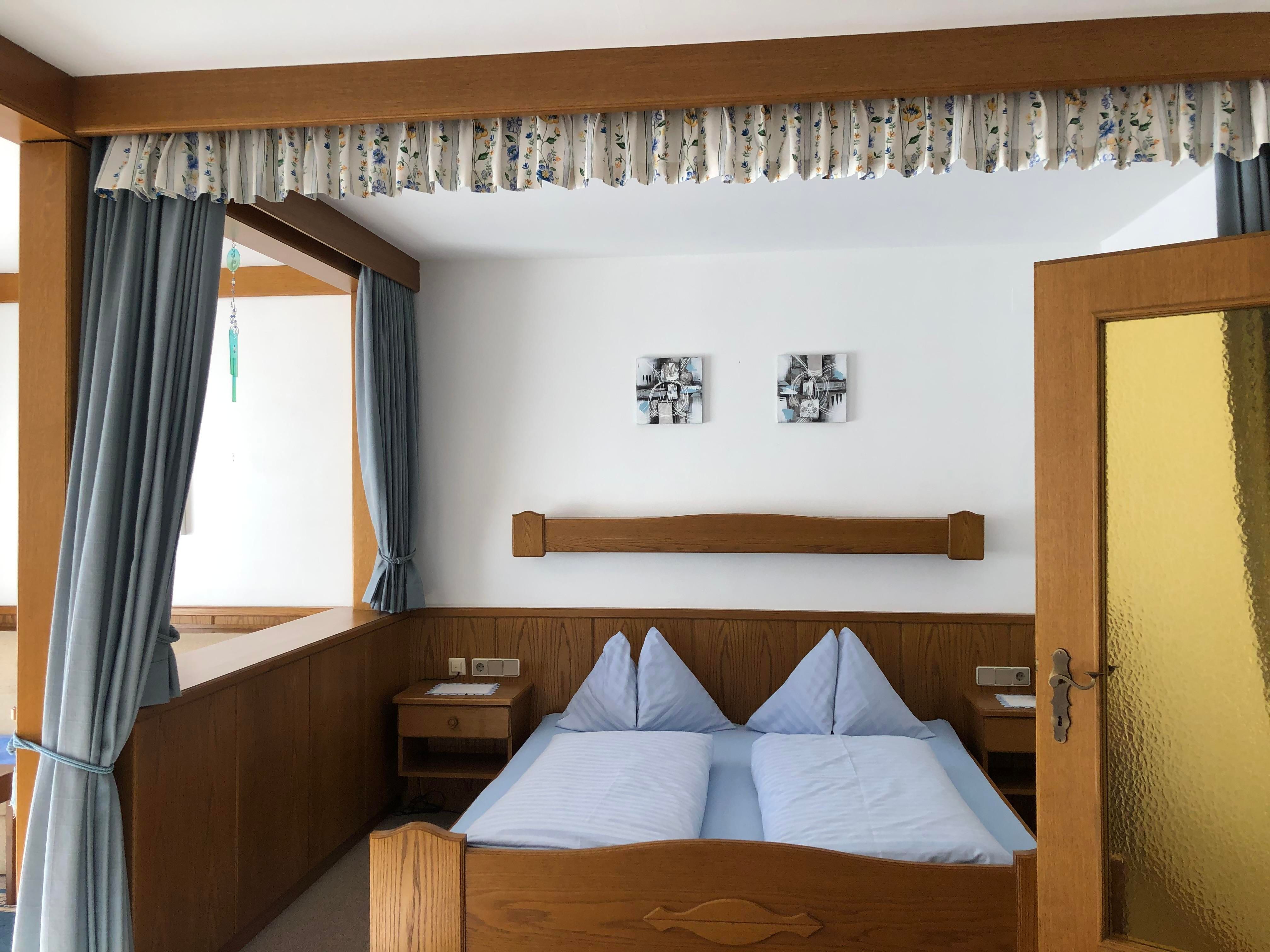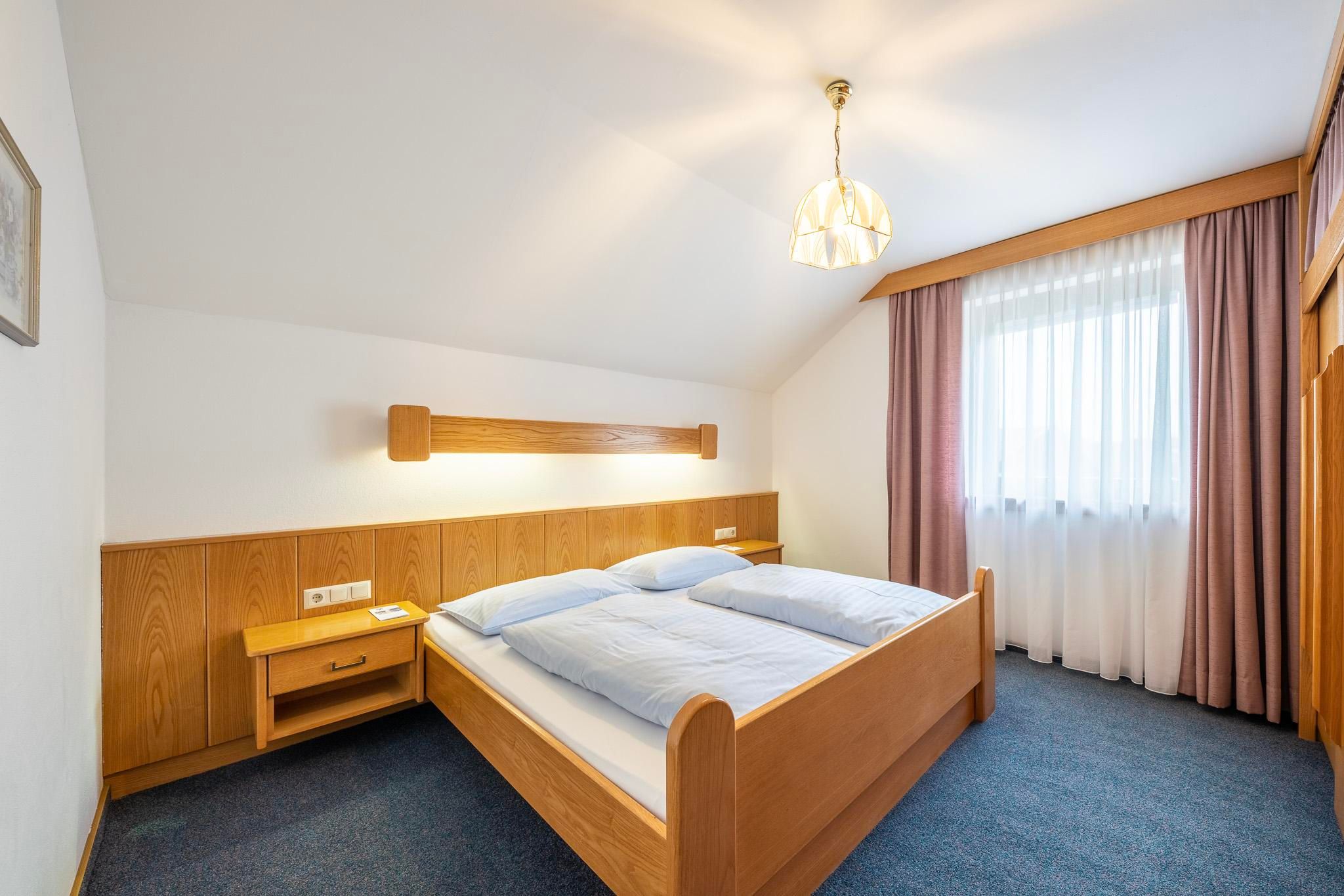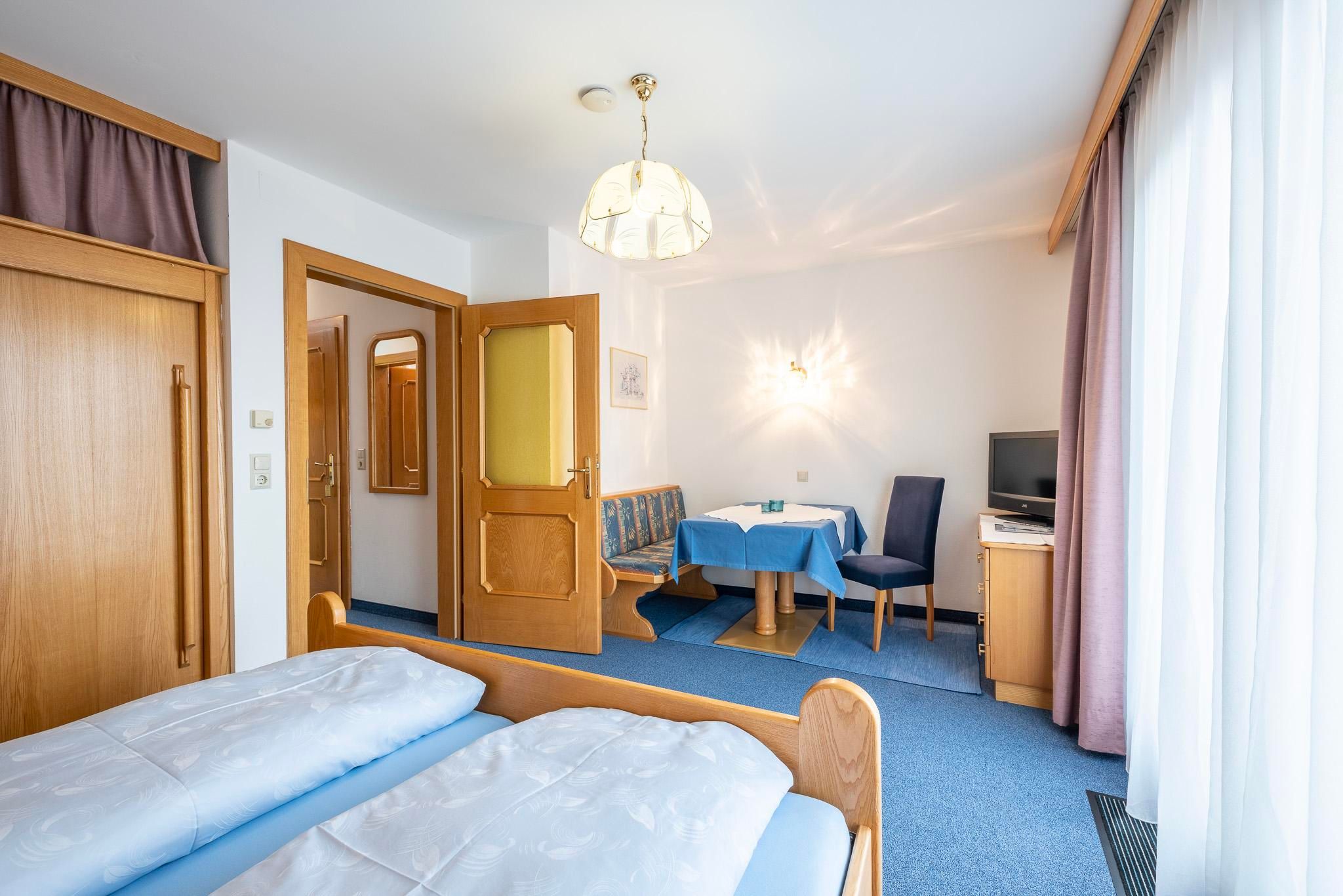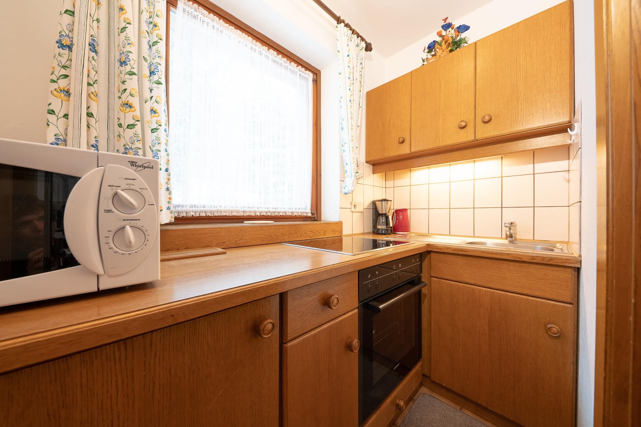 Appartement mit 46 m2, 1 Schlafzimmer, 1 Wohn-Schlafzimmer mit Essecke, kl. Küche mit 2 Plattenherd, Kühlschrank mit Gefrierfach, Töpfen und Essbesteck, SAT-TV, Radio, Telefon, Safe, Bad ( Eckbadewanne ), Doppelwaschtisch, Föhn, seperates WC, Vorraum und überdachter Südbalkon. W-Lan kostenlos.