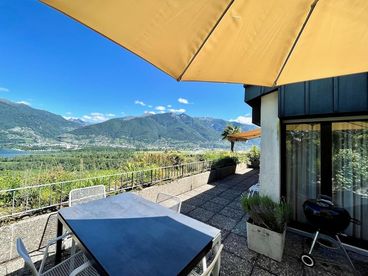 Durch die Hanglage verfügt die Wohnung über eine wunderschöne Panoramaseesicht von der Magadinoebene bis nach Italien. Im Sommer scheint hier die Sonne bis spät am Abend. Wenige Autominuten bis Locarno und Ascona.