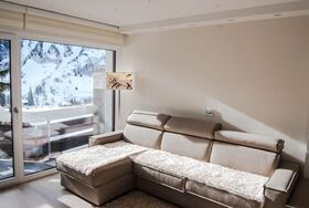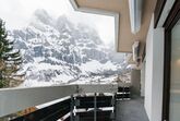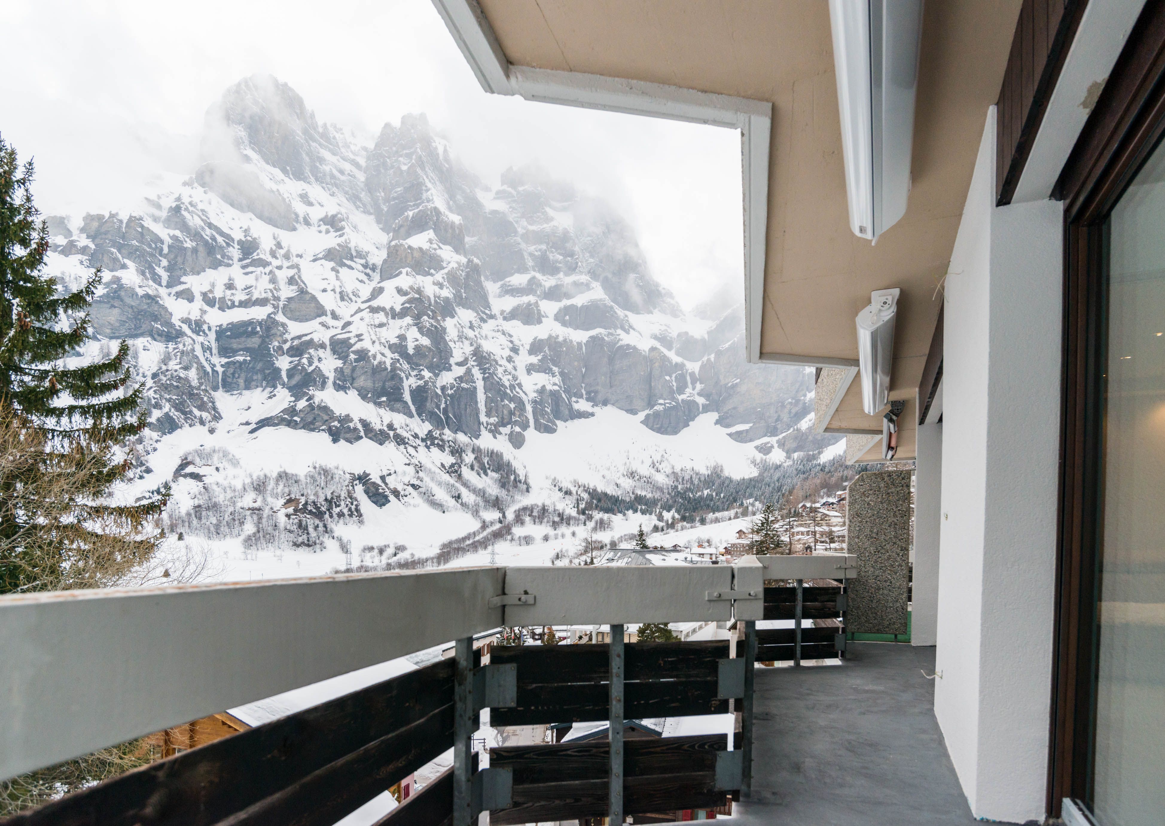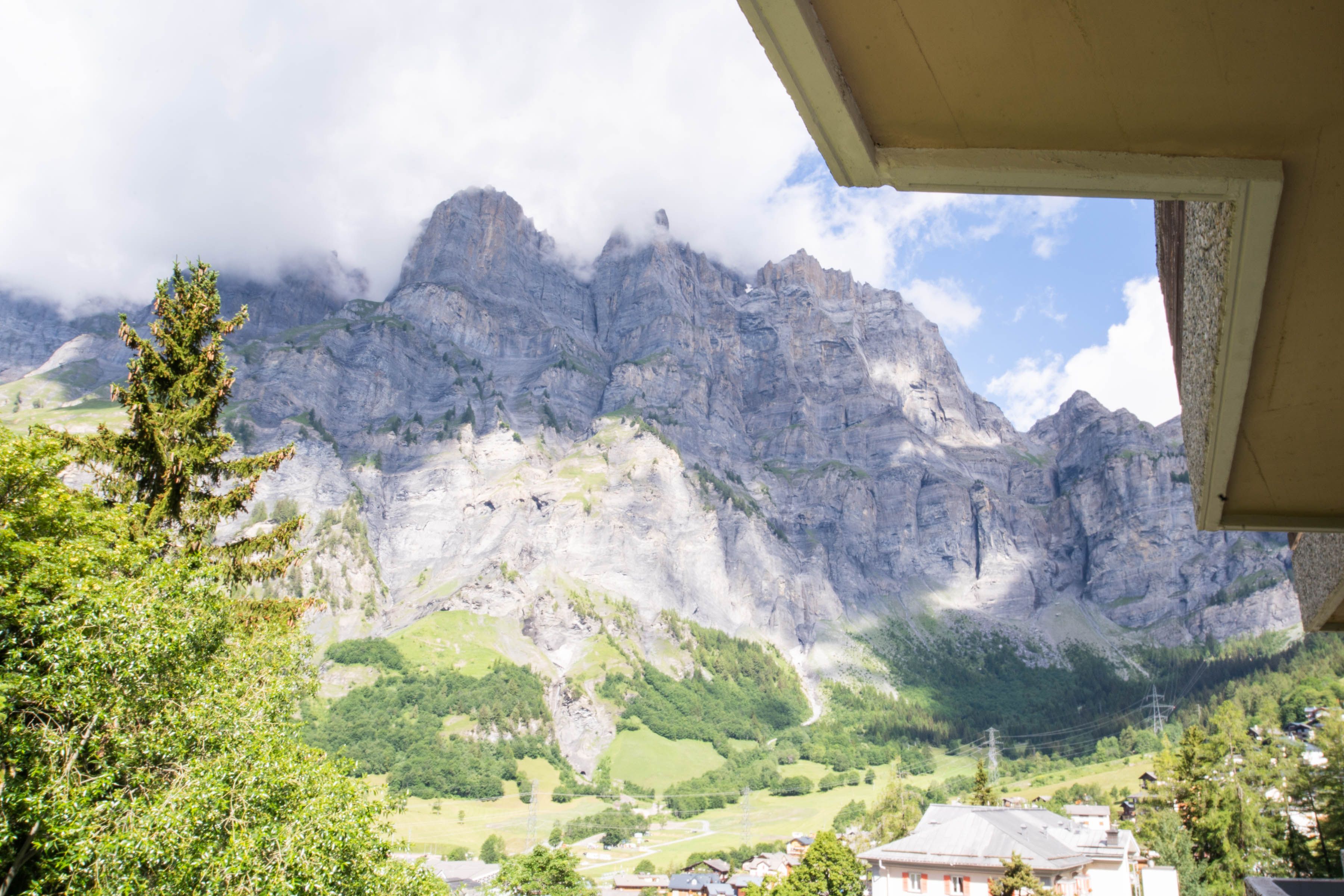 Panoramasicht auf Leukerbad und die umliegende Bergwelt. Alle Wohnungen (ausser: kleines Studio) mit grossem und sonnigem Balkon.