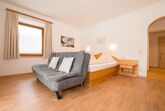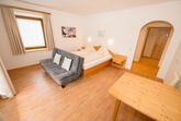 Ferienwohnung für 2 Personen, ca. 35m², Wohn-Schlafraum mit Couch, Küchenzeile - komplett ausgestattet, Dusche mit WC, Südbalkon mit Seeblick.
