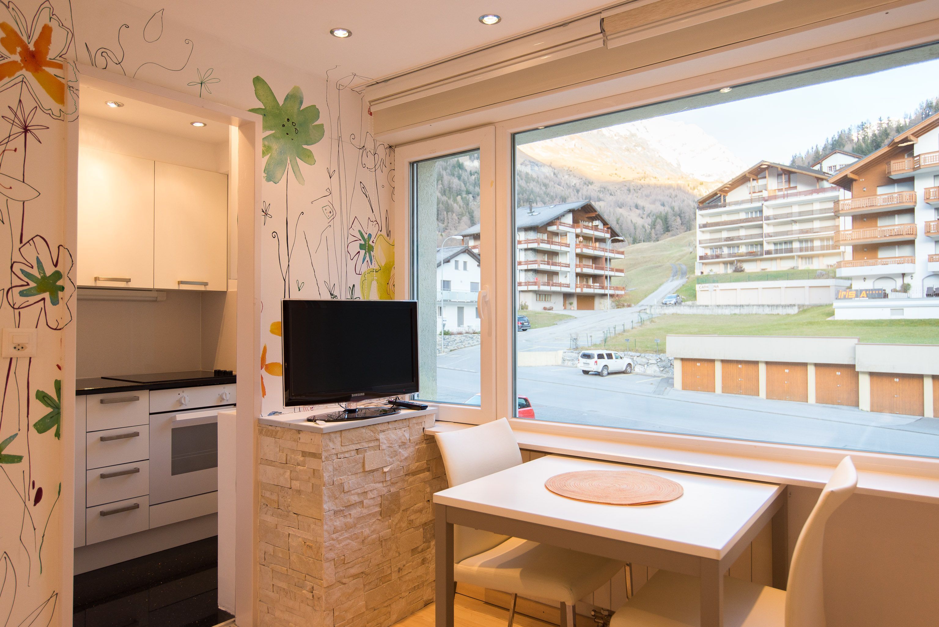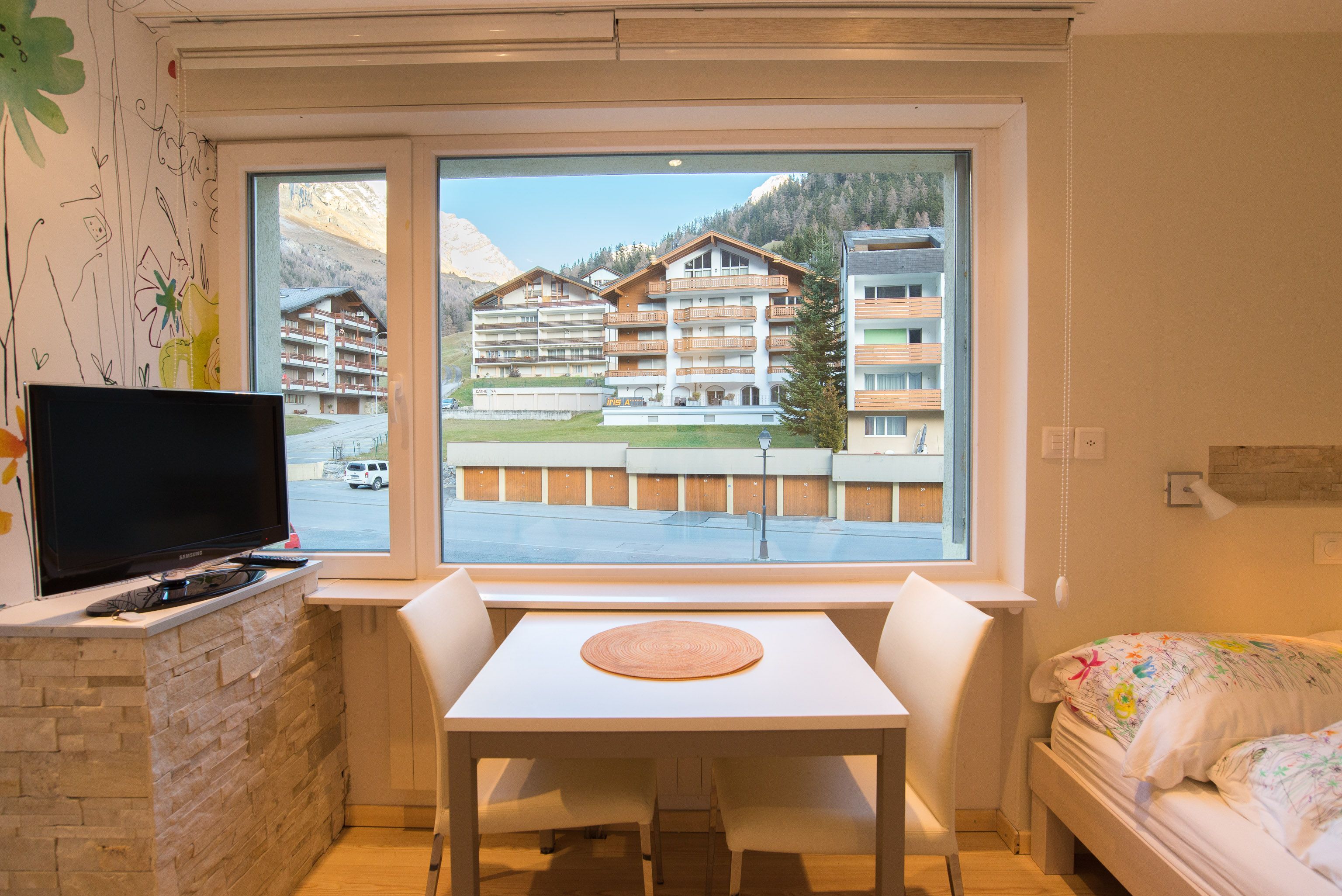 Das Haus Cristal ist ruhig und zentral gelegen. In wenigen Minuten zu Fuss sind Sie im Dorfzentrum mit Geschäften, Restaurants und Thermalbädern.