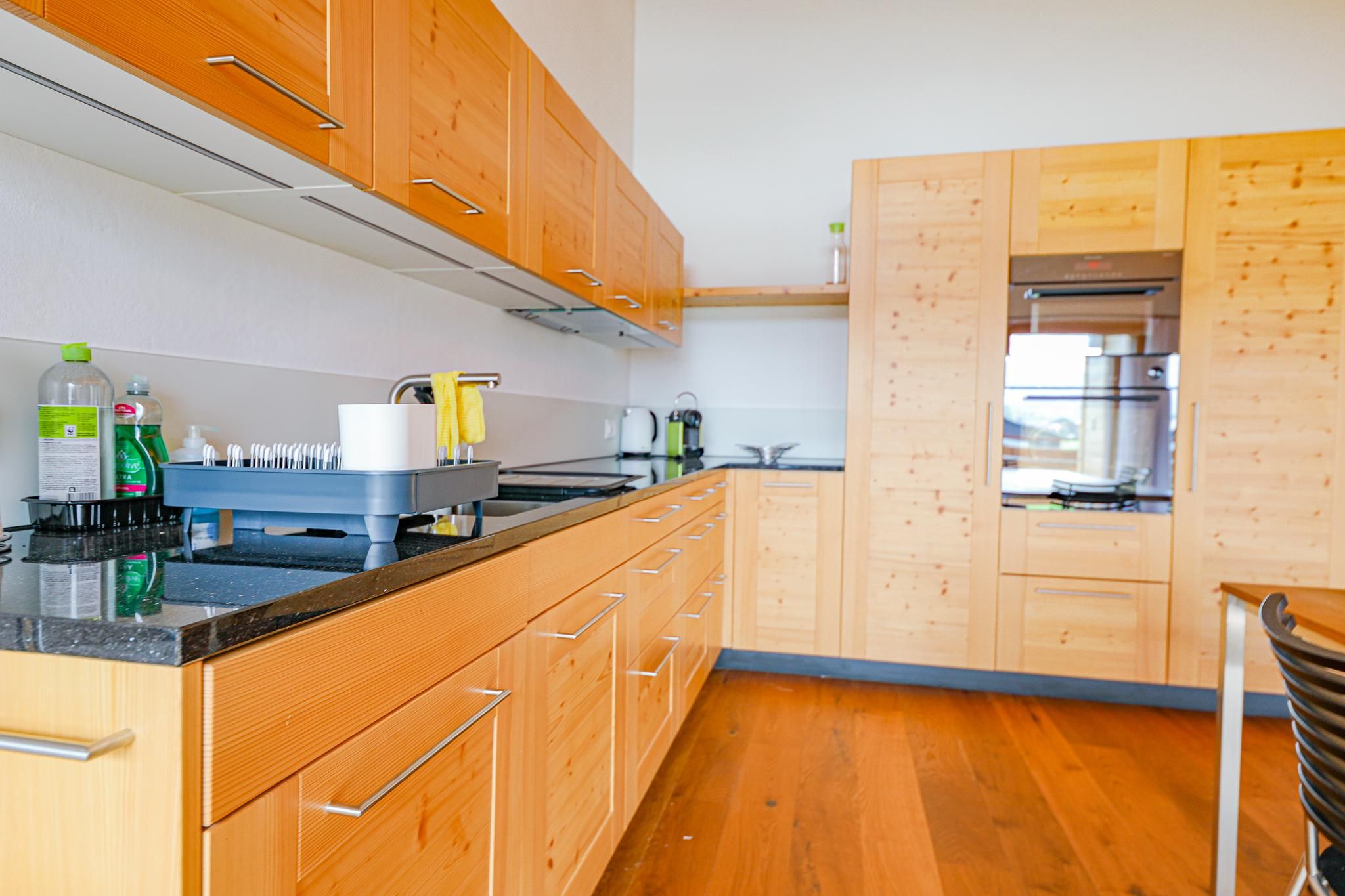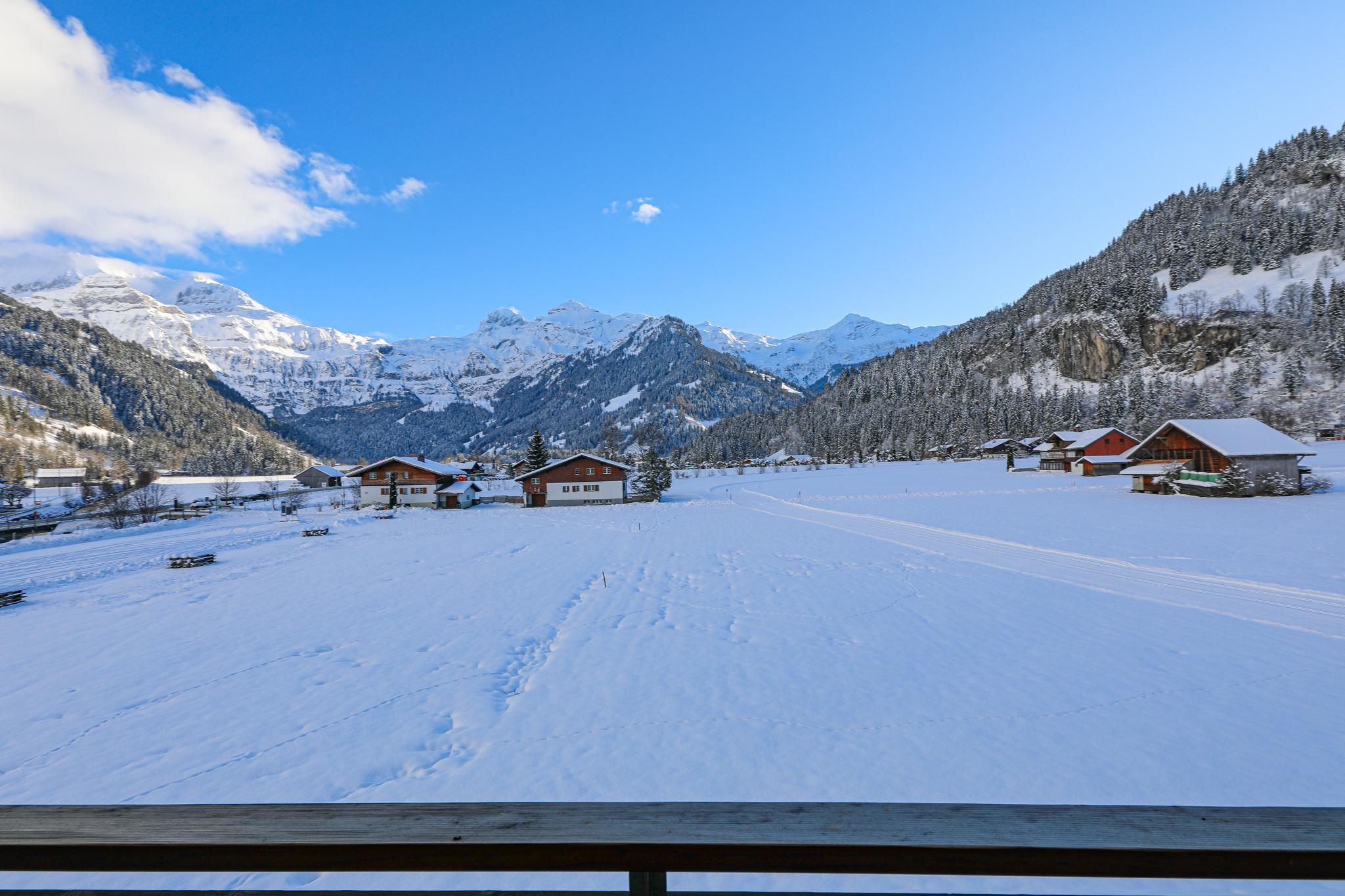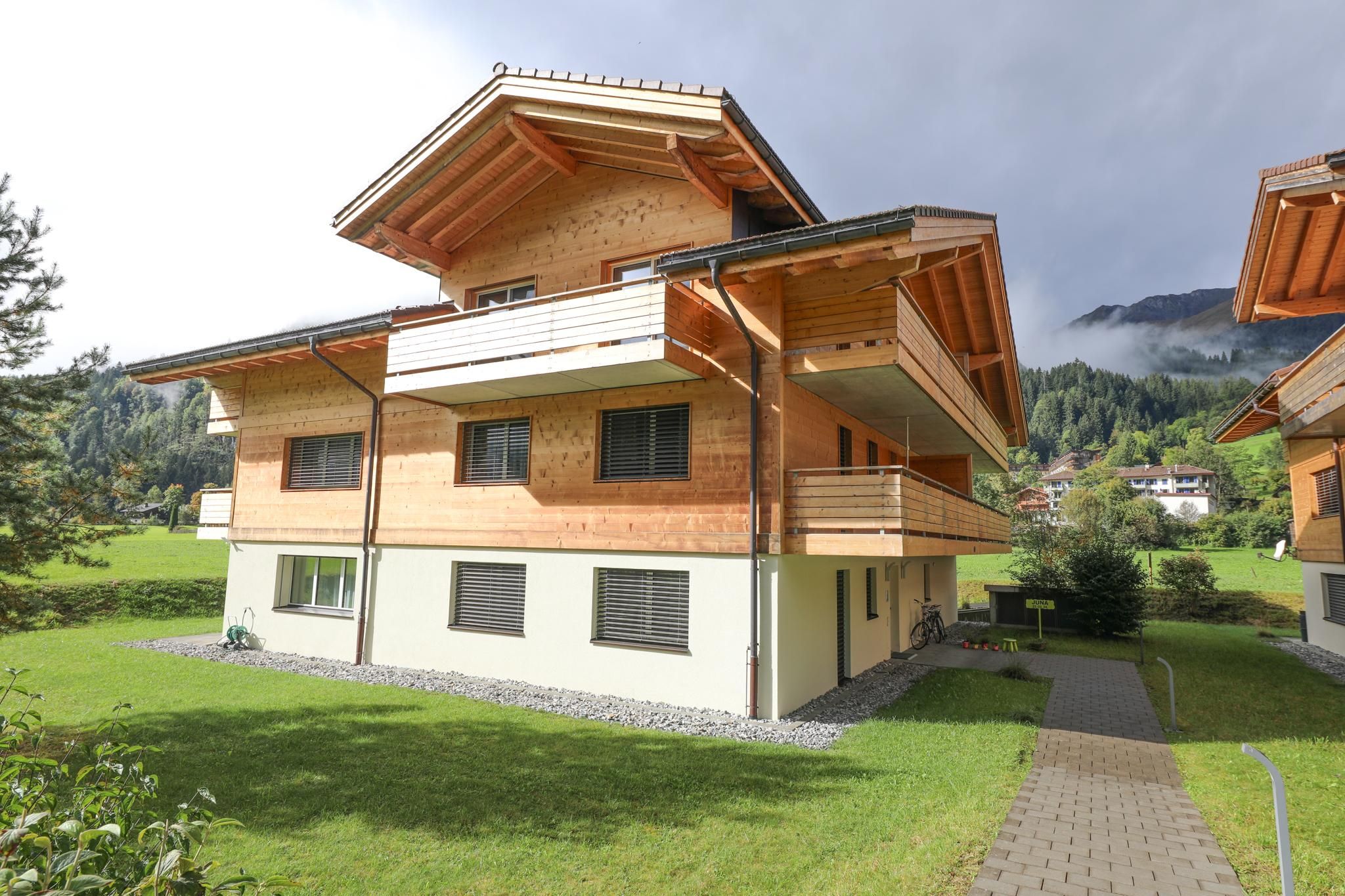 Moderne Ferienwohnung im Zentrum von Lenk mit wunderschöner Aussicht auf den Wildstrubel. Neue Ferienwohnung mit Entrée und Garderobe, offener Küche mit Backofen, Steamer, Geschirrspühlmaschine und Nespresso Kaffeemaschine mit 10 Kaffeekapseln. Essplatz mit 6 Stühlen. Wohnraum mit Sofa und TV. Schlafzimmer mit Doppelbett und angrenzendem Bad mit Badewanne und WC. Schlafzimmer mit 2 Einzelbetten, welche auseinander gezogen werden können. 1 Badezimmer mit Dusche, WC und Waschmaschine. Drei Balkone, einer ist Richtung Norden, einer Richtung Osten und der dritte nach Süden gerichtet