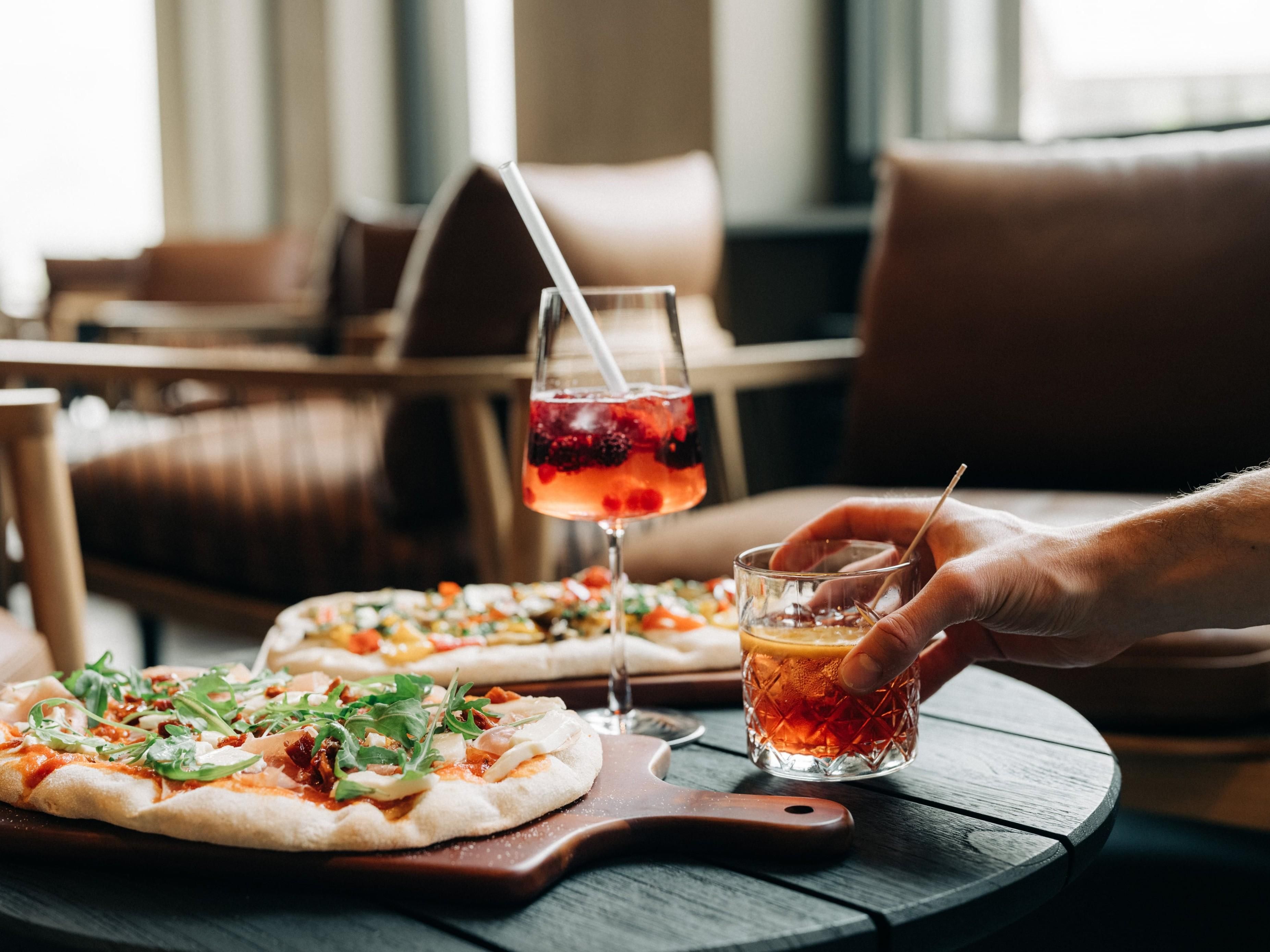 Auswahl an vegetarischen und veganen Speisen und Getränken, Einsatz von Lebensmitteln nach Saison und von lokalen Anbietern